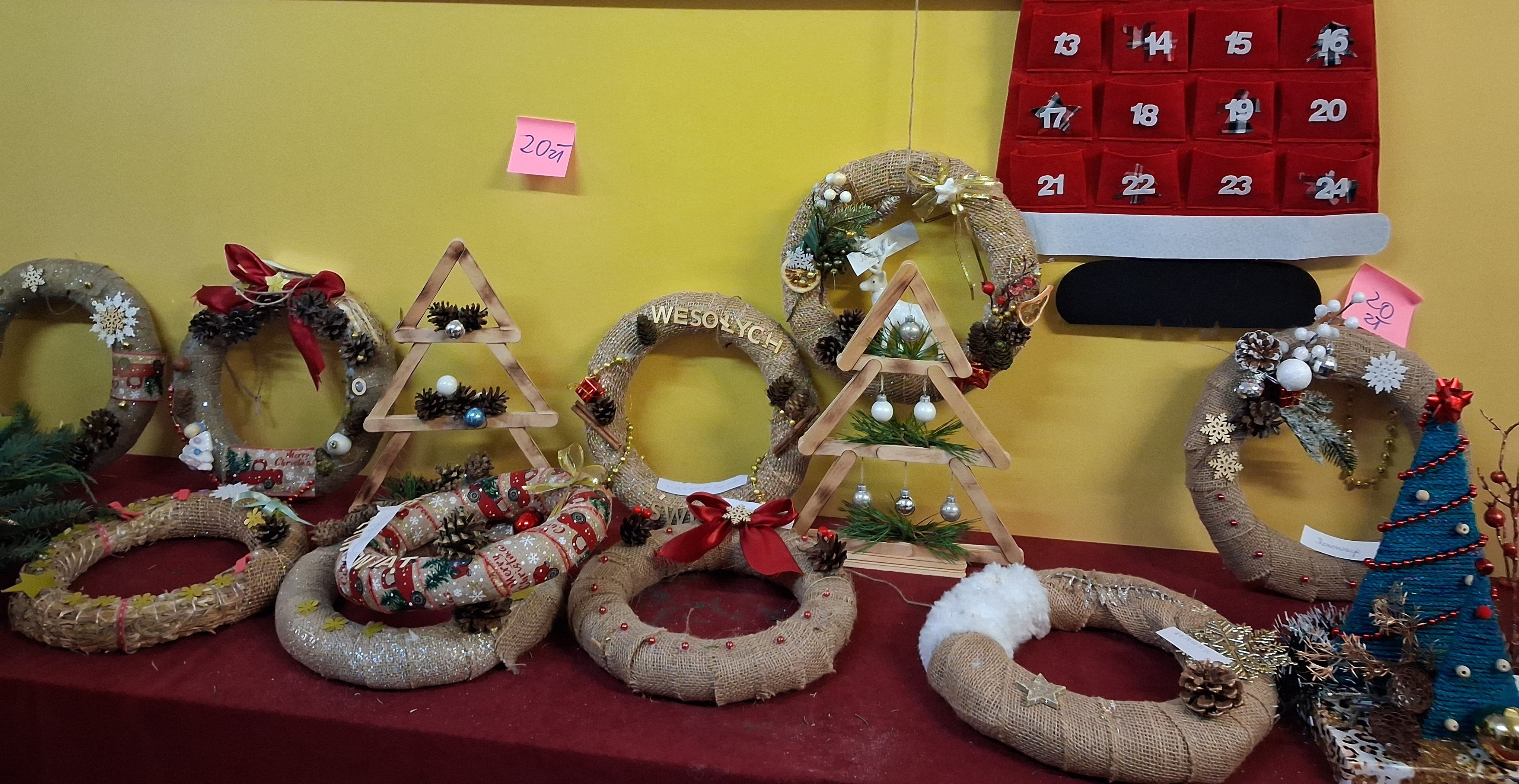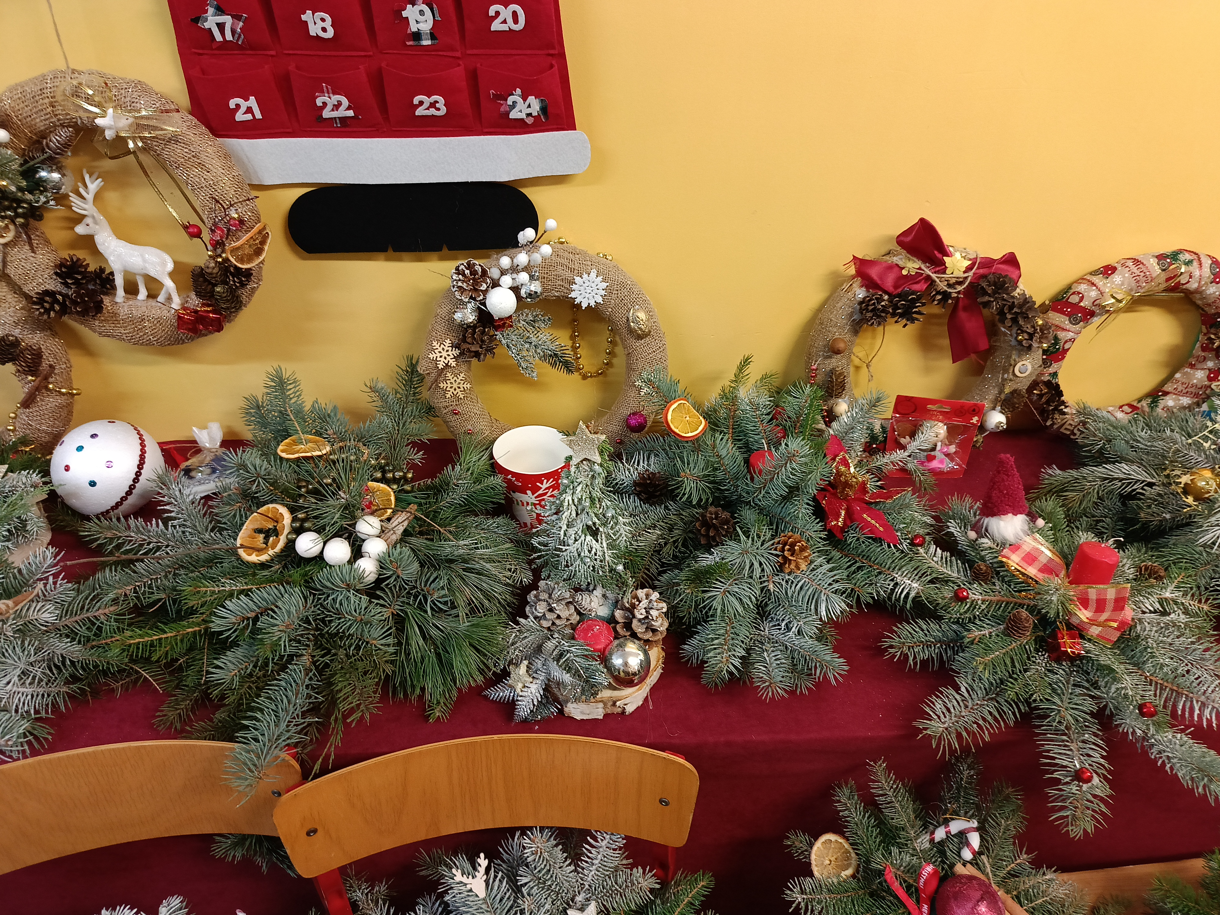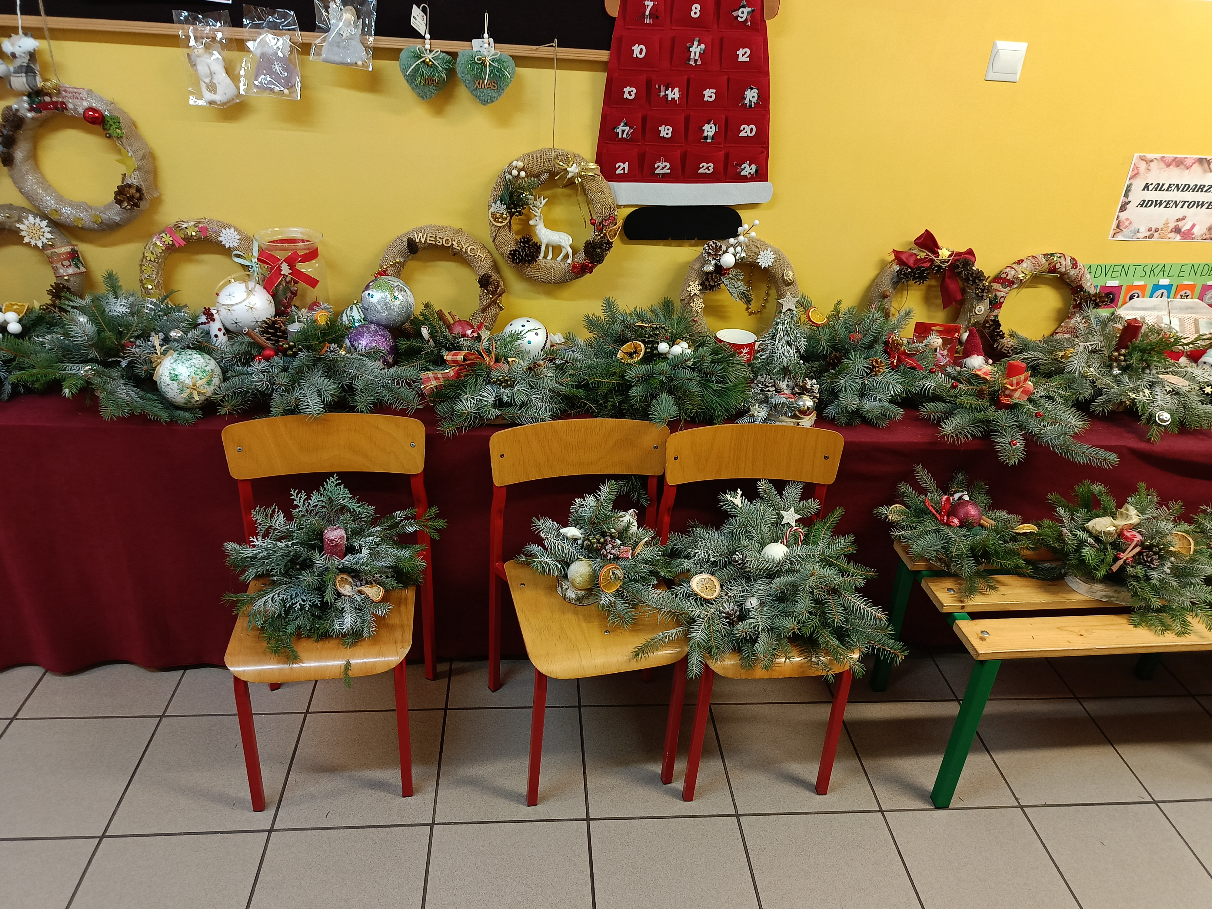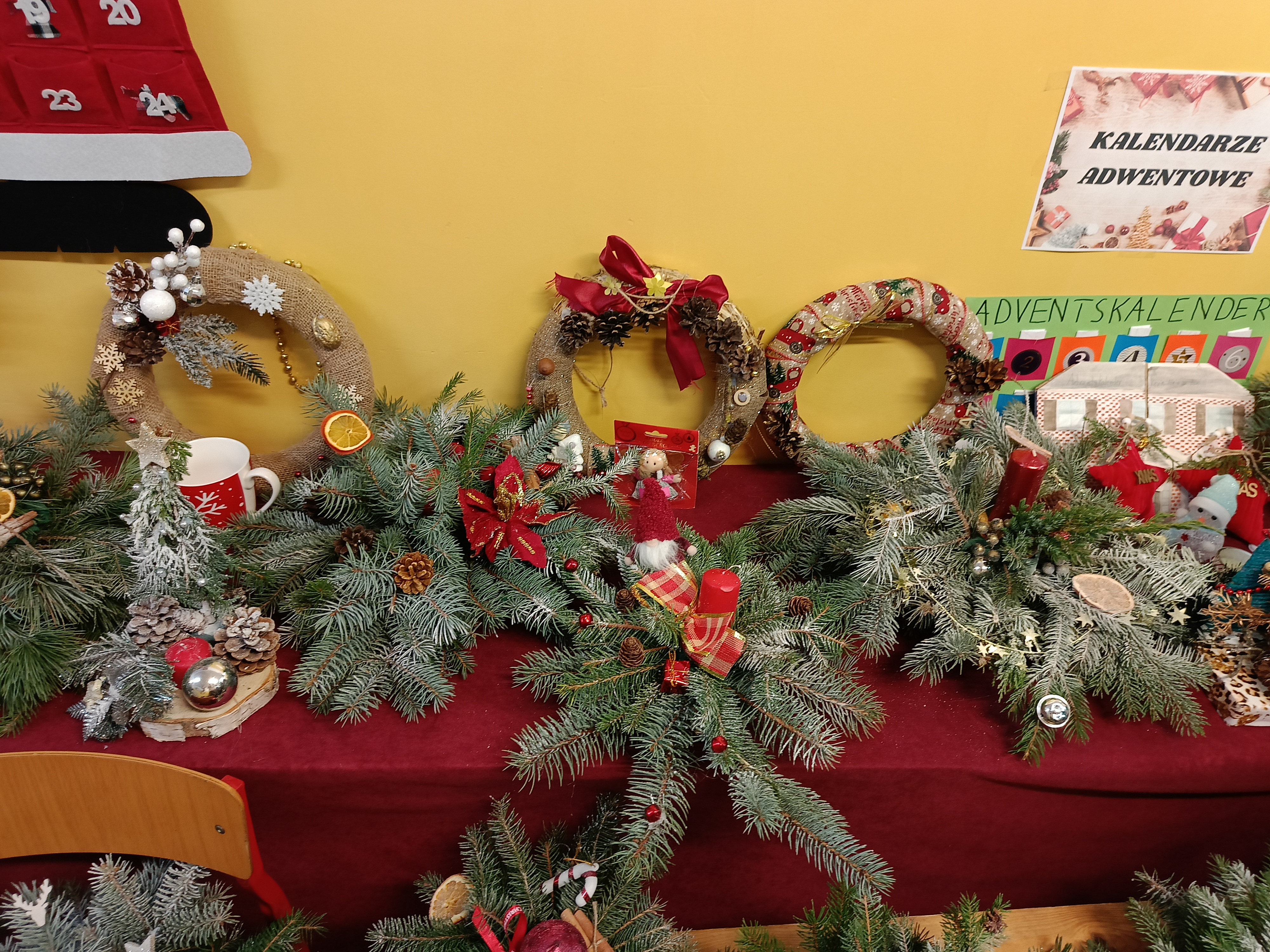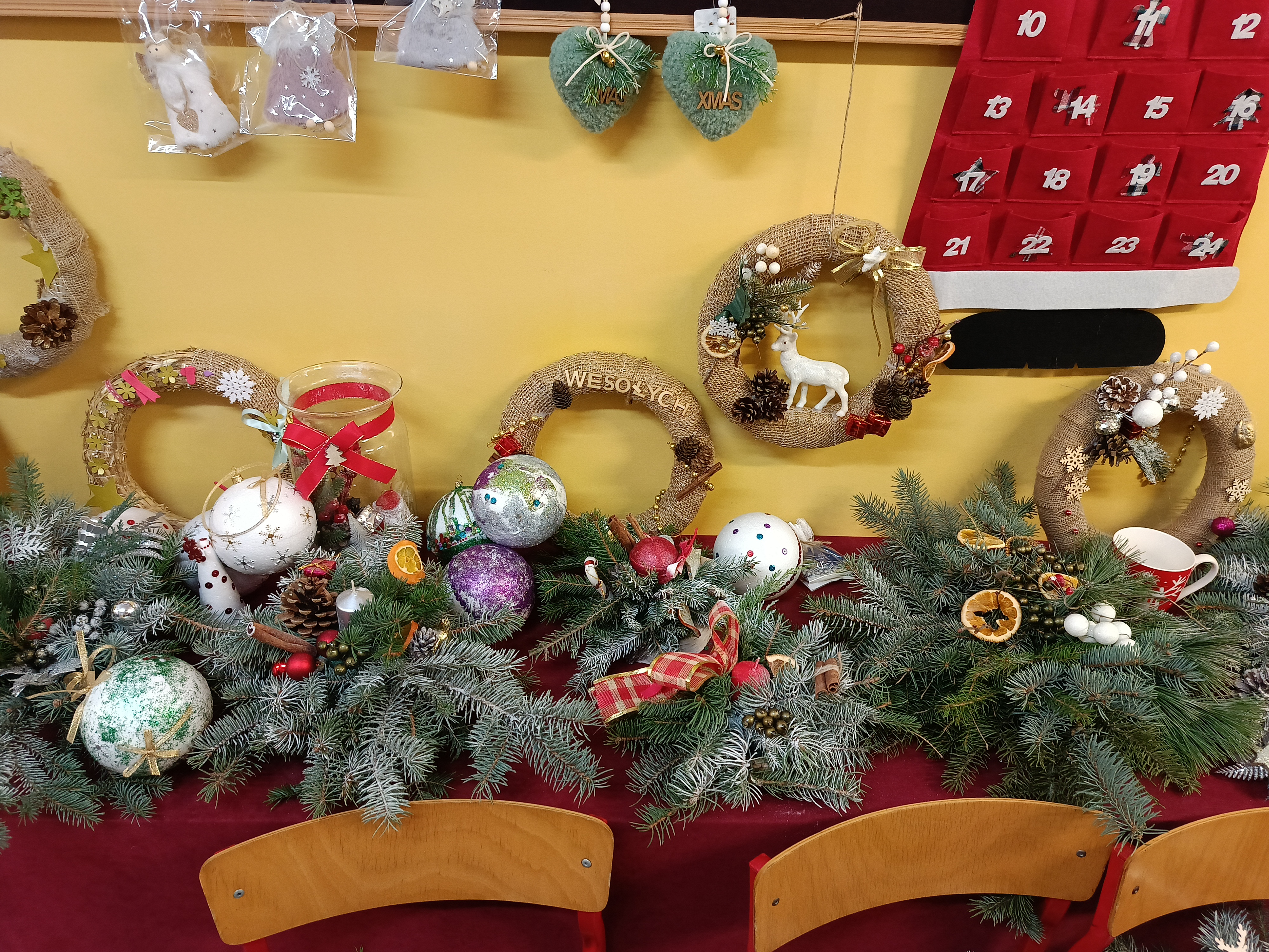 Dnia 12 grudnia – tuż przed świętami Bożego Narodzenia – zgodnie ze szkolną tradycją zorganizowaliśmy kiermasz świąteczny. Dzieci, młodzież, nauczyciele i rodzice wcześniej przygotowywali sprzedażowe atrakcje. Wśród nich były wianki, stroiki, bombki, ozdoby choinkowe, świece dekoracyjne, kartki okolicznościowe, gwiazdkowe upominki i inne gadżety.