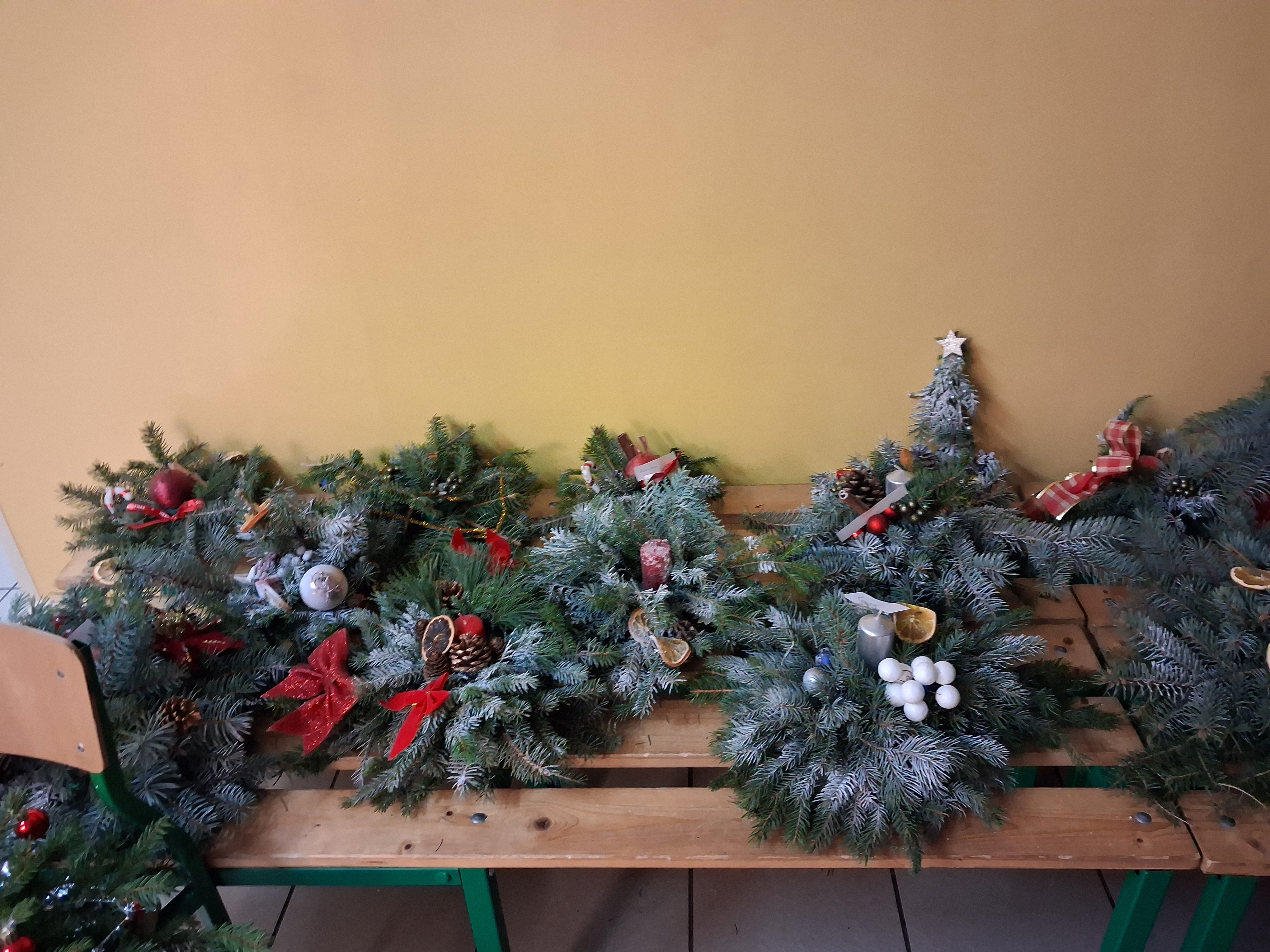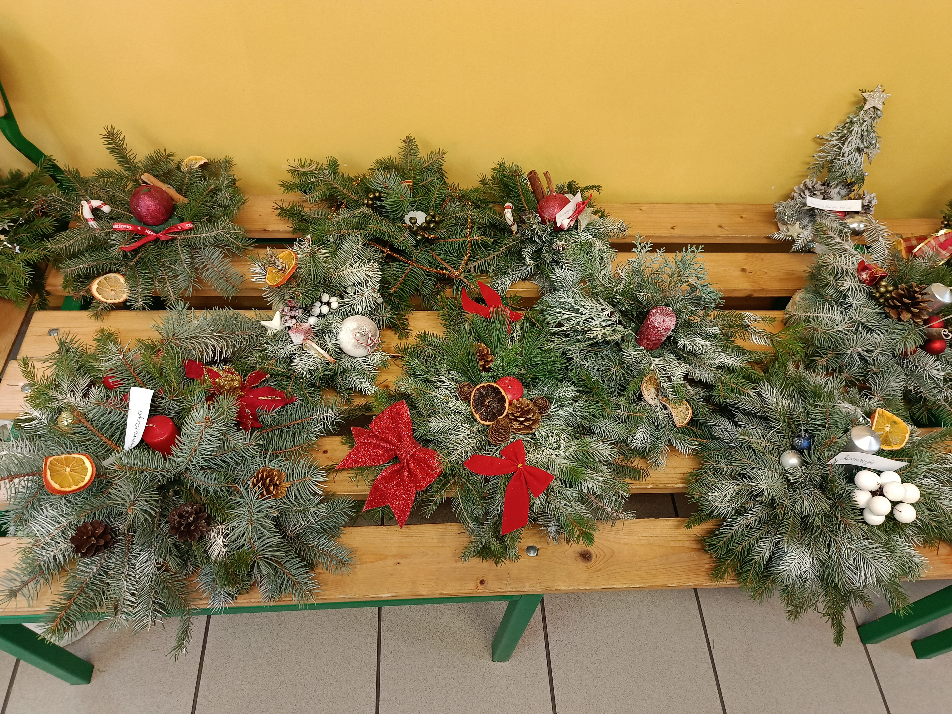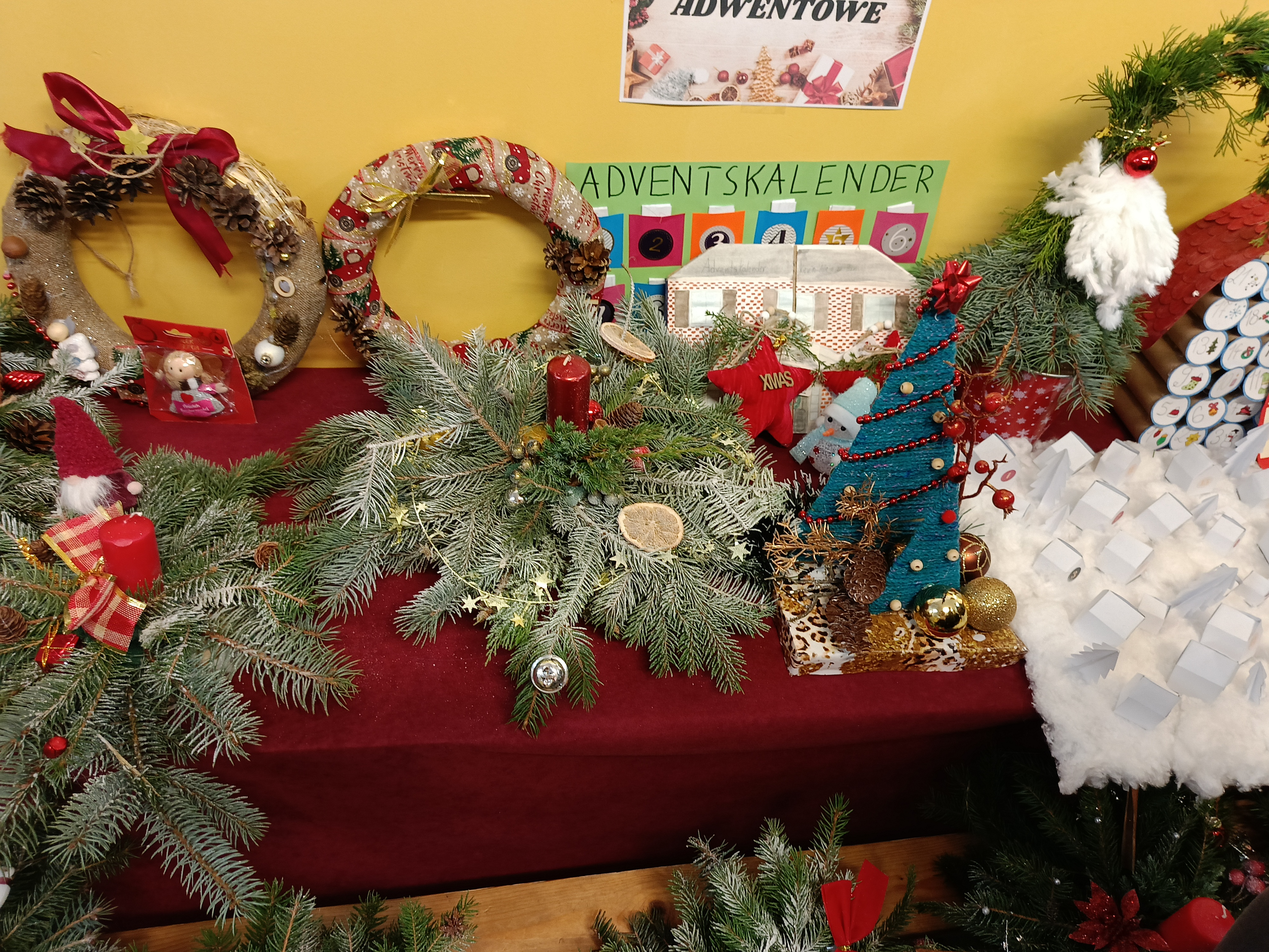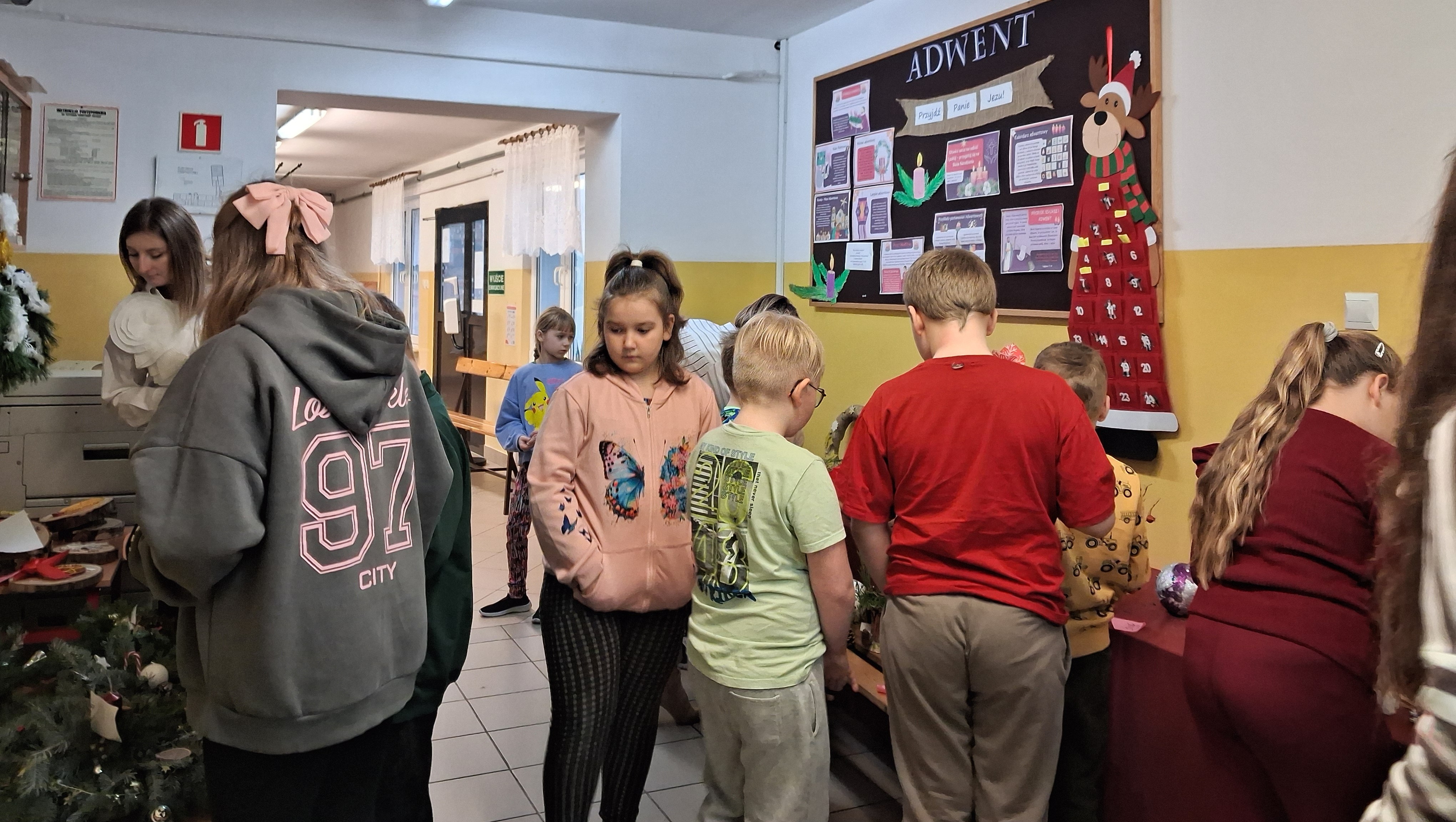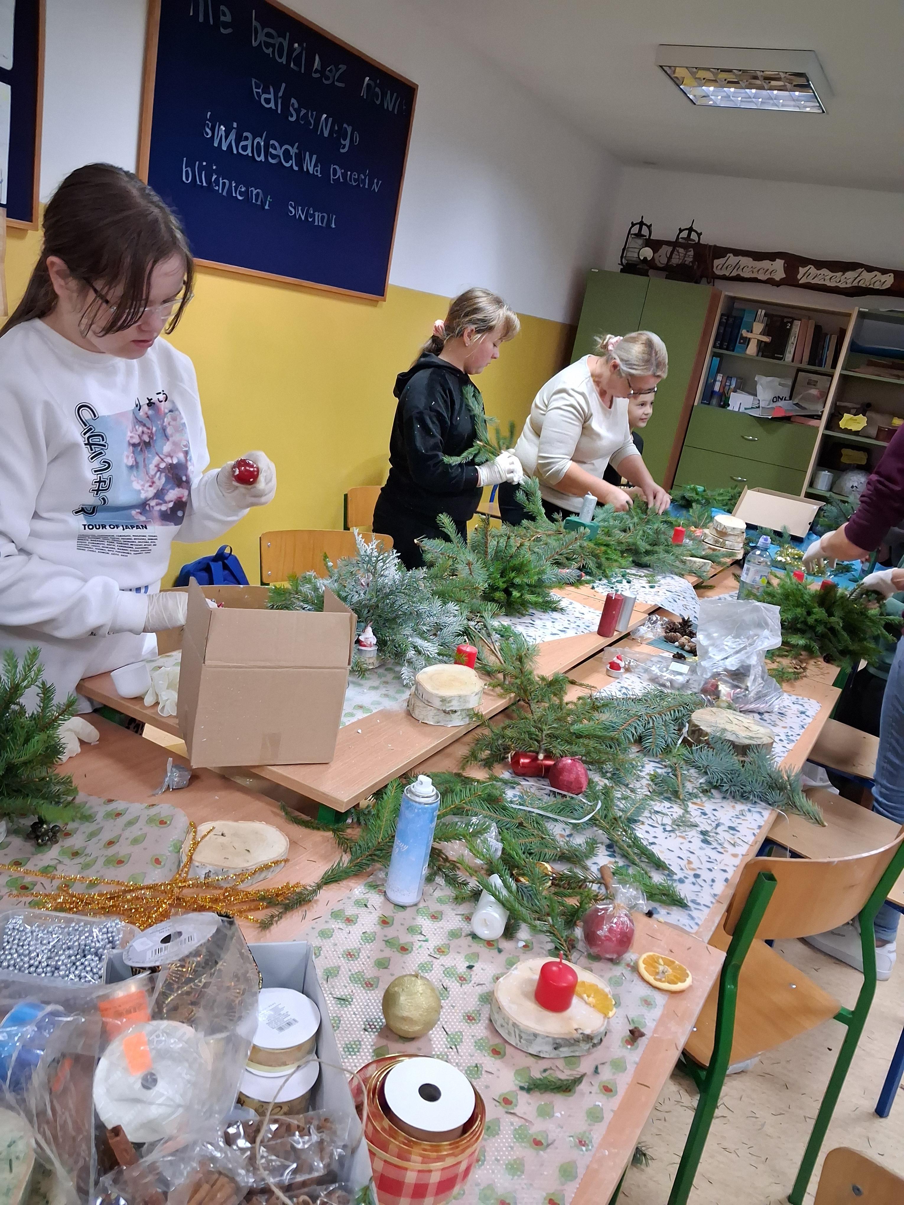 Dnia 12 grudnia – tuż przed świętami Bożego Narodzenia – zgodnie ze szkolną tradycją zorganizowaliśmy kiermasz świąteczny. Dzieci, młodzież, nauczyciele i rodzice wcześniej przygotowywali sprzedażowe atrakcje. Wśród nich były wianki, stroiki, bombki, ozdoby choinkowe, świece dekoracyjne, kartki okolicznościowe, gwiazdkowe upominki i inne gadżety.