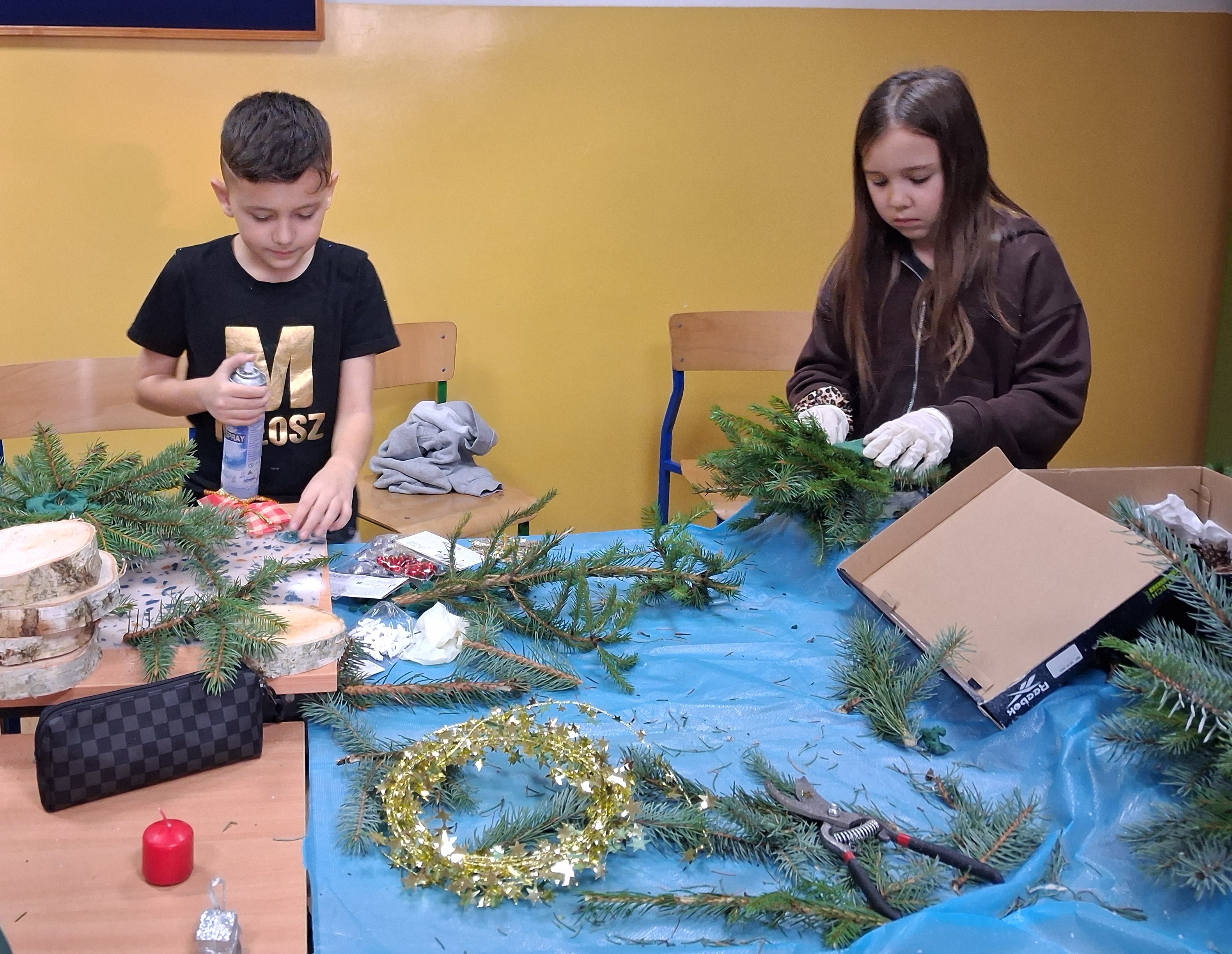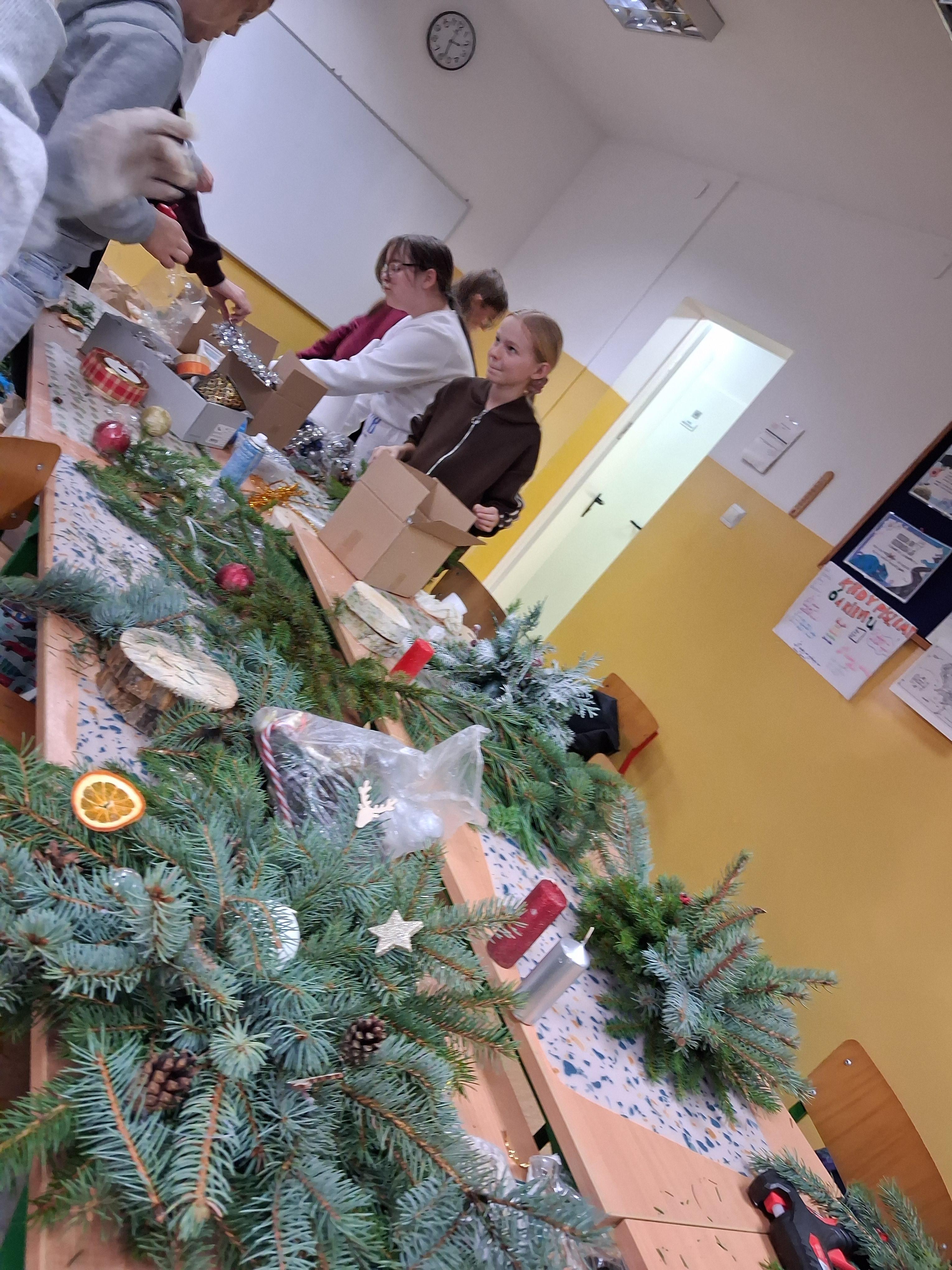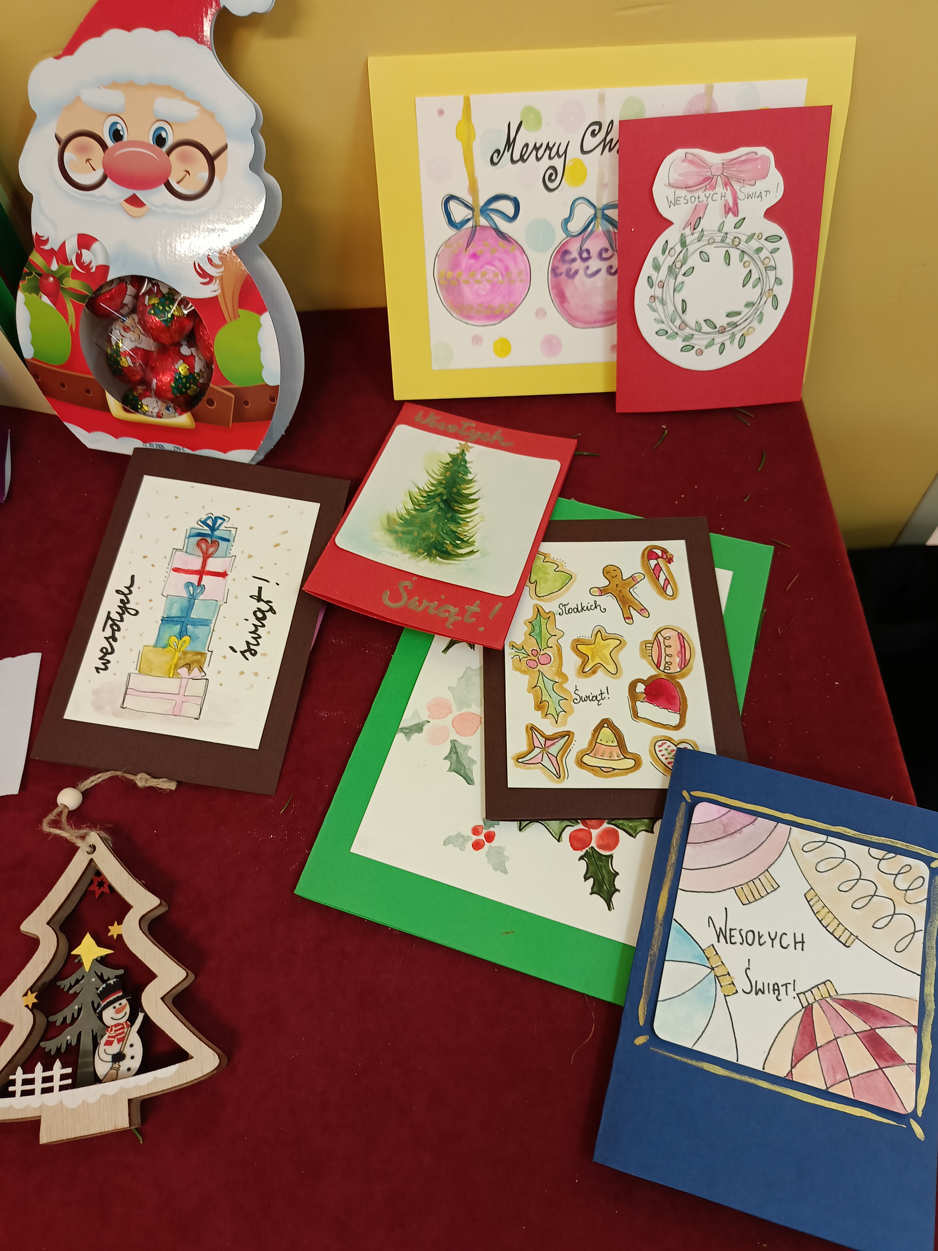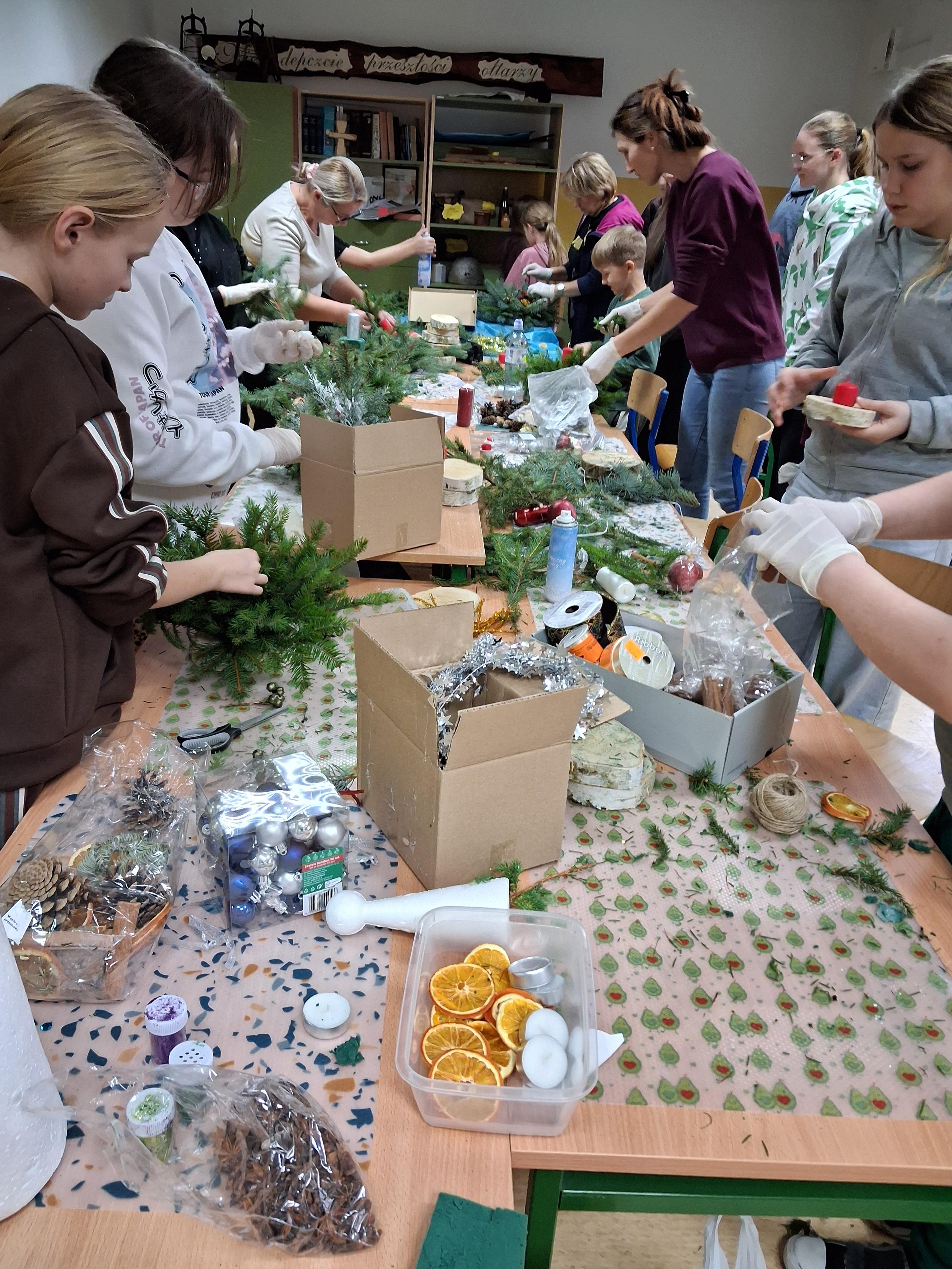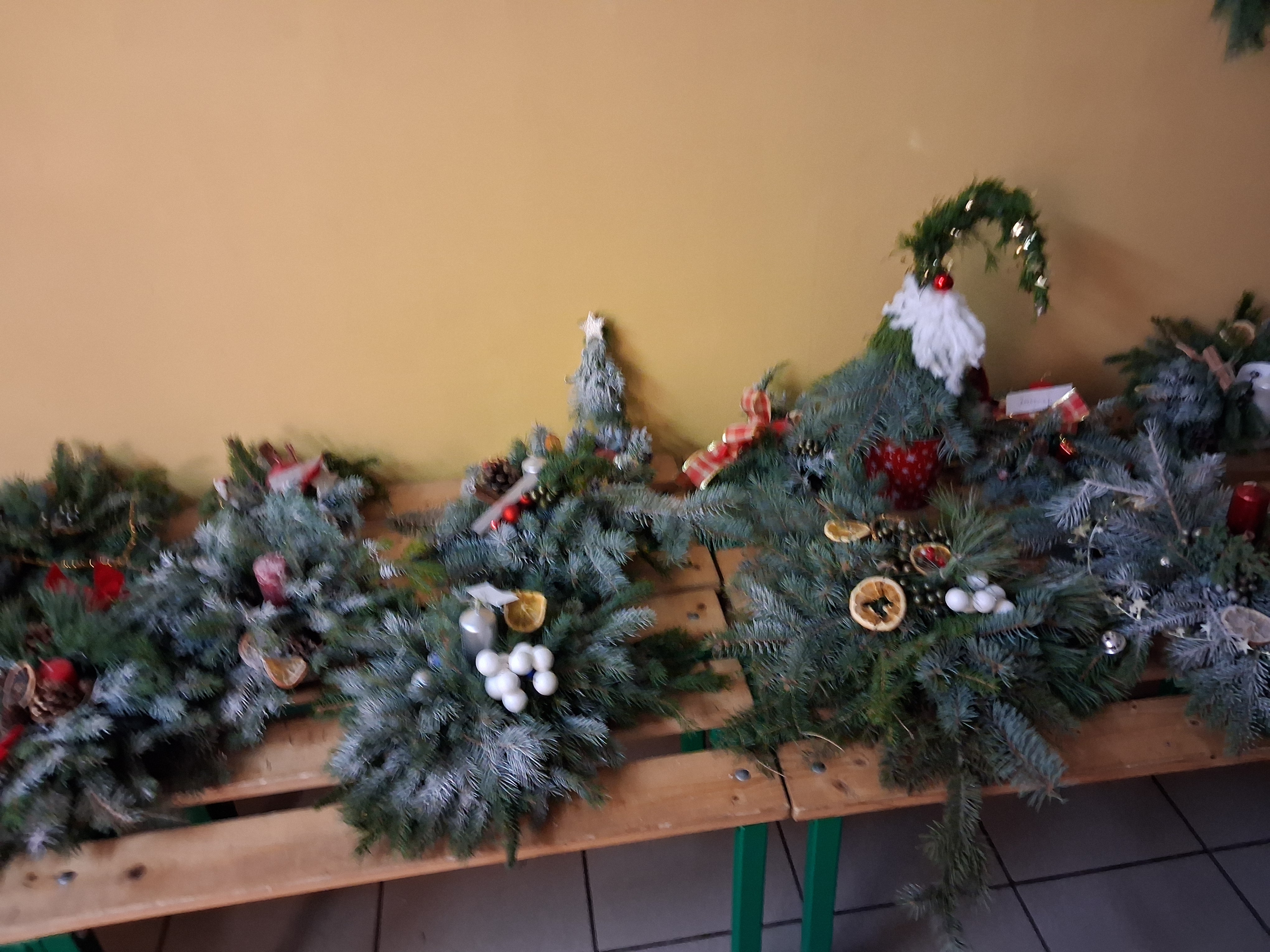 Dnia 12 grudnia – tuż przed świętami Bożego Narodzenia – zgodnie ze szkolną tradycją zorganizowaliśmy kiermasz świąteczny. Dzieci, młodzież, nauczyciele i rodzice wcześniej przygotowywali sprzedażowe atrakcje. Wśród nich były wianki, stroiki, bombki, ozdoby choinkowe, świece dekoracyjne, kartki okolicznościowe, gwiazdkowe upominki i inne gadżety.