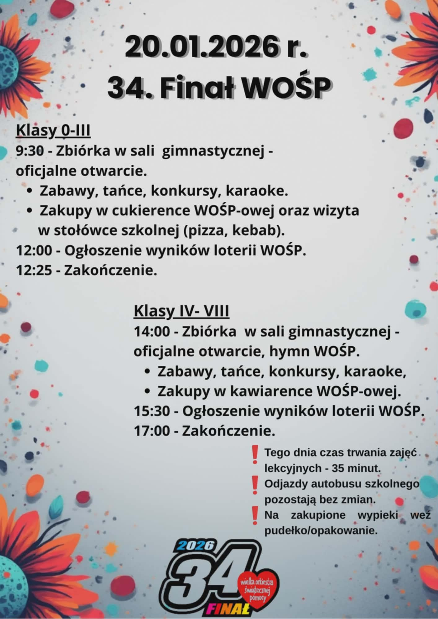 Harmonogram 34 finału WOŚP - Szkoła Podstawowa w Dębicy