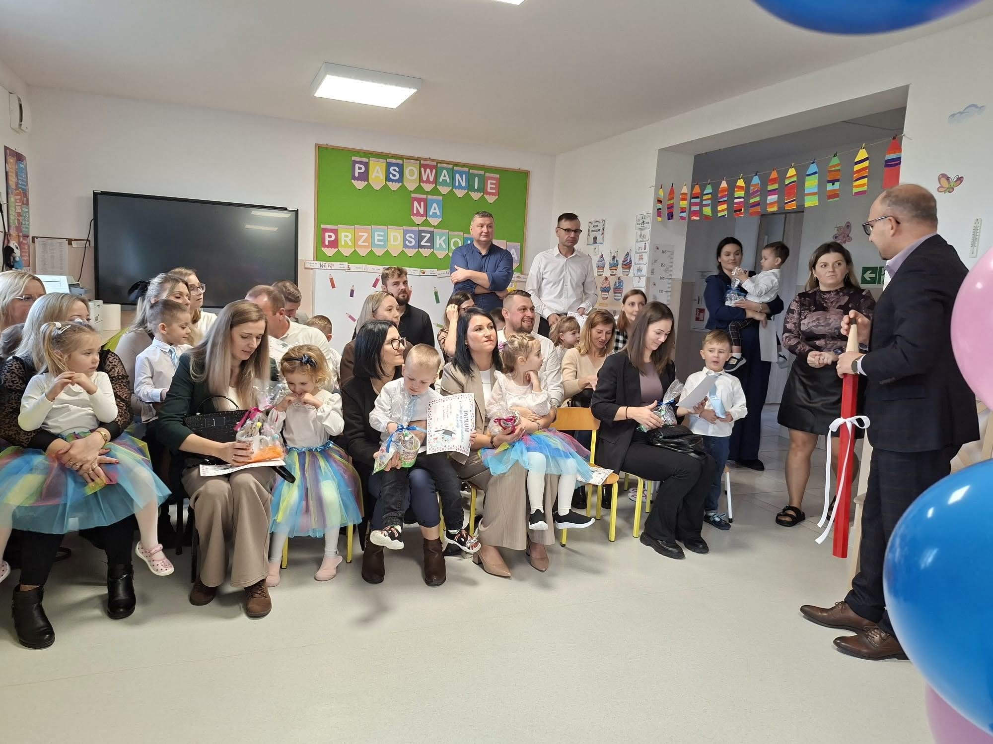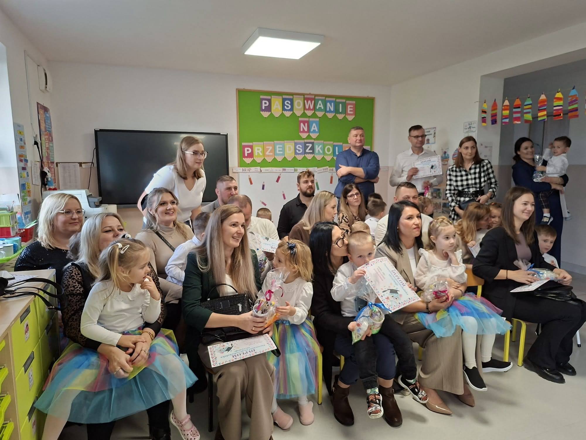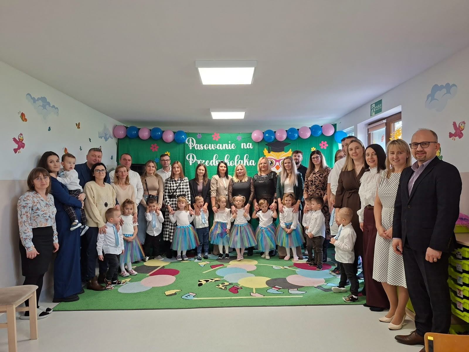Dnia 19 listopada 2025 roku, w naszej grupie, odbyła się uroczystość pasowania na przedszkolaka. Wydarzenie to było ważnym i radosnym momentem zarówno dla dzieci, jak i ich bliskich. Na uroczystość przybyła liczna grupa rodziców oraz zaproszeni goście: Pani Dyrektor Anna Dziubak oraz Sekretarz Gminy Ostrówek Robert Targoński.