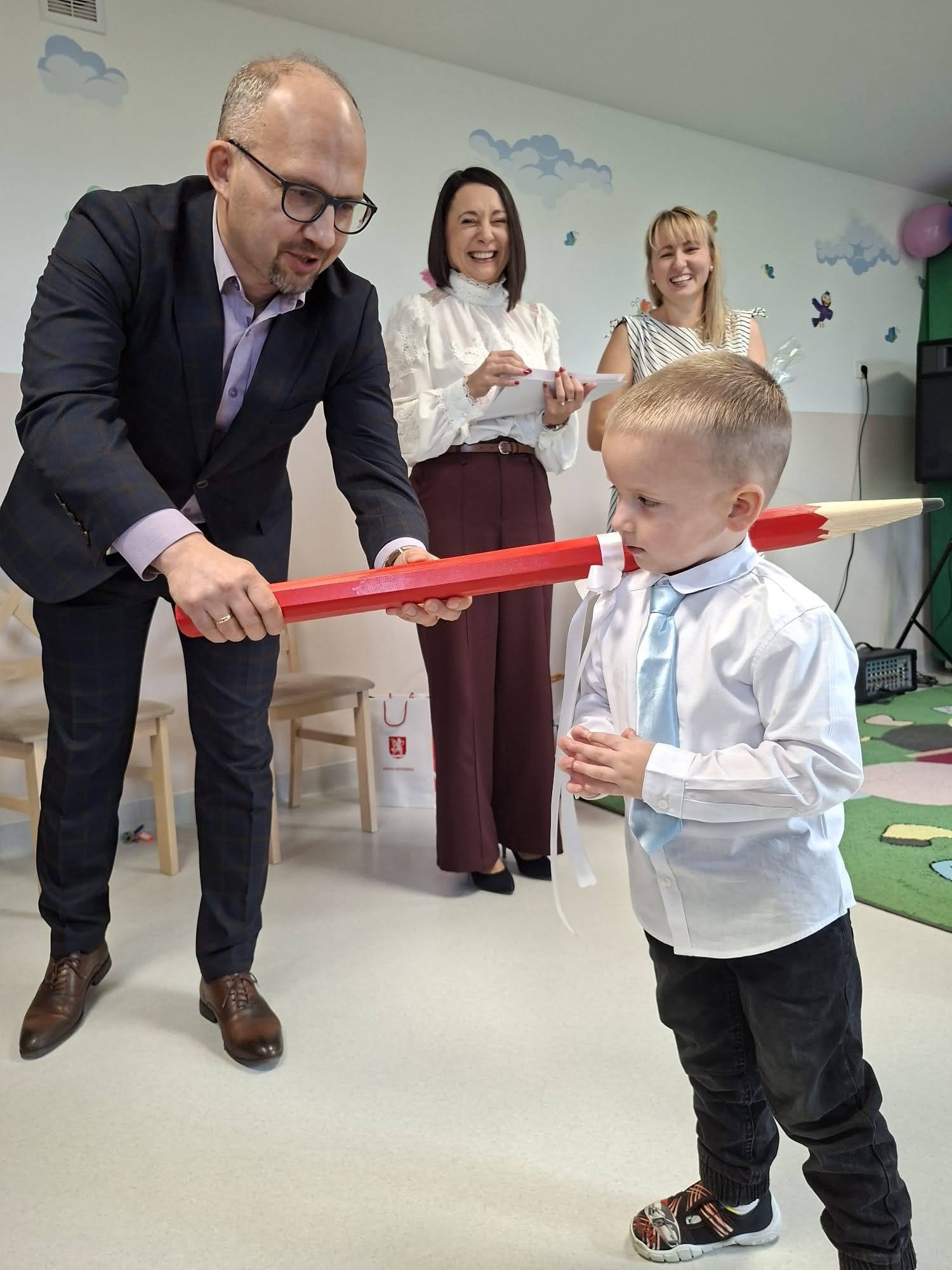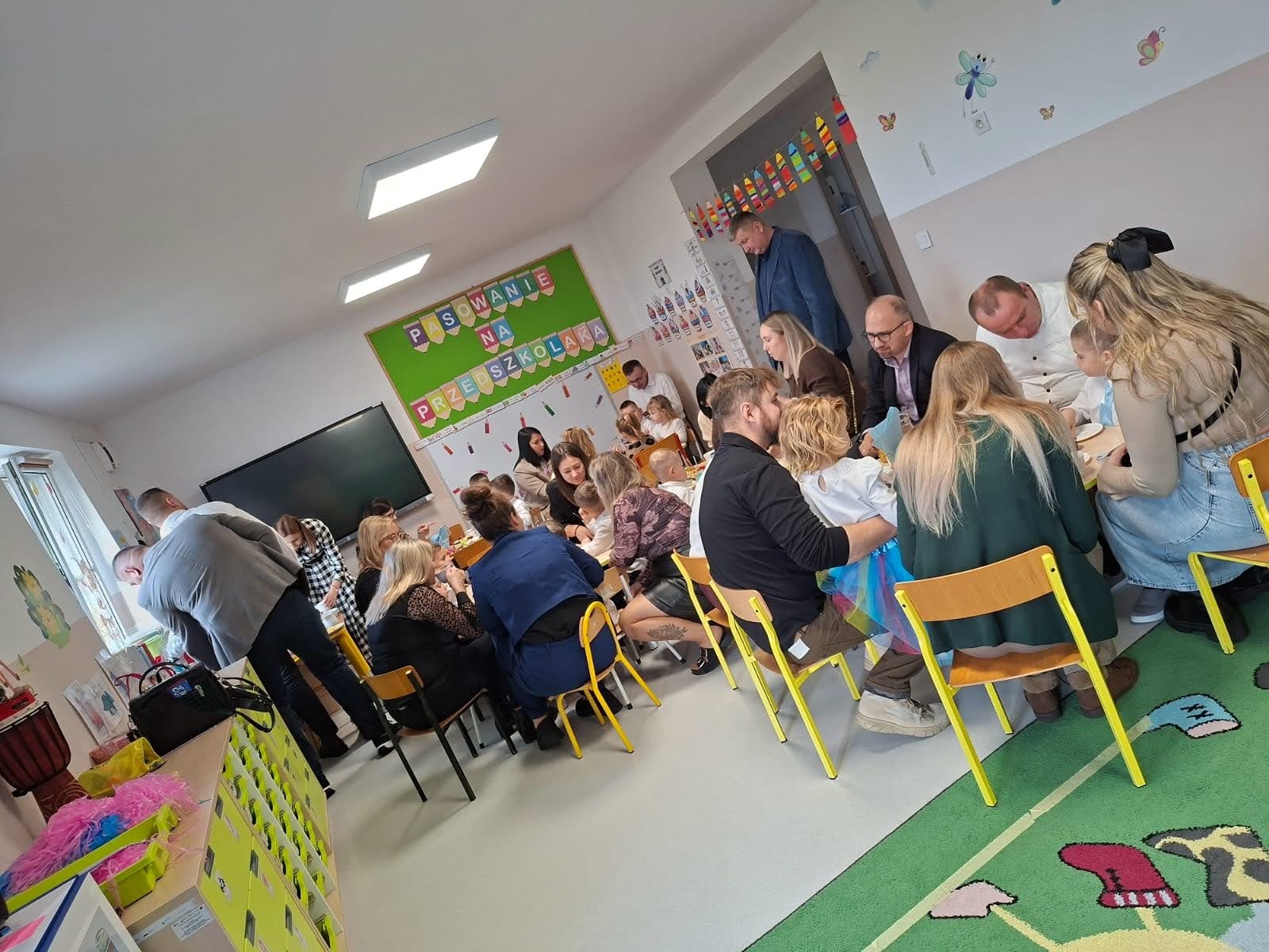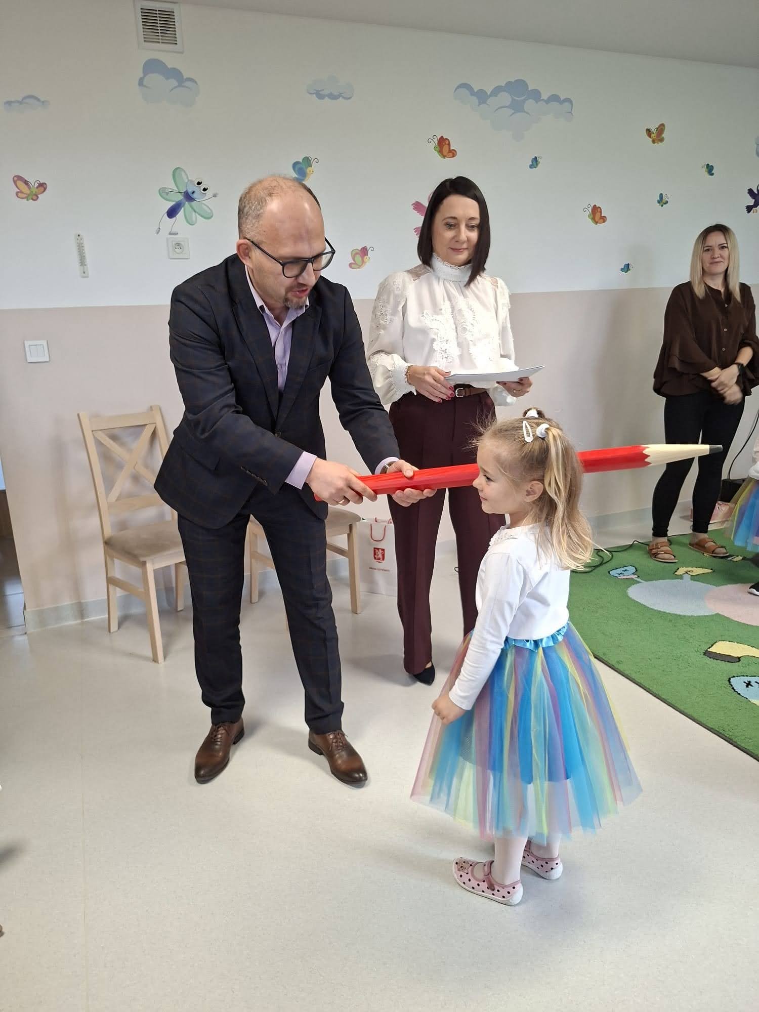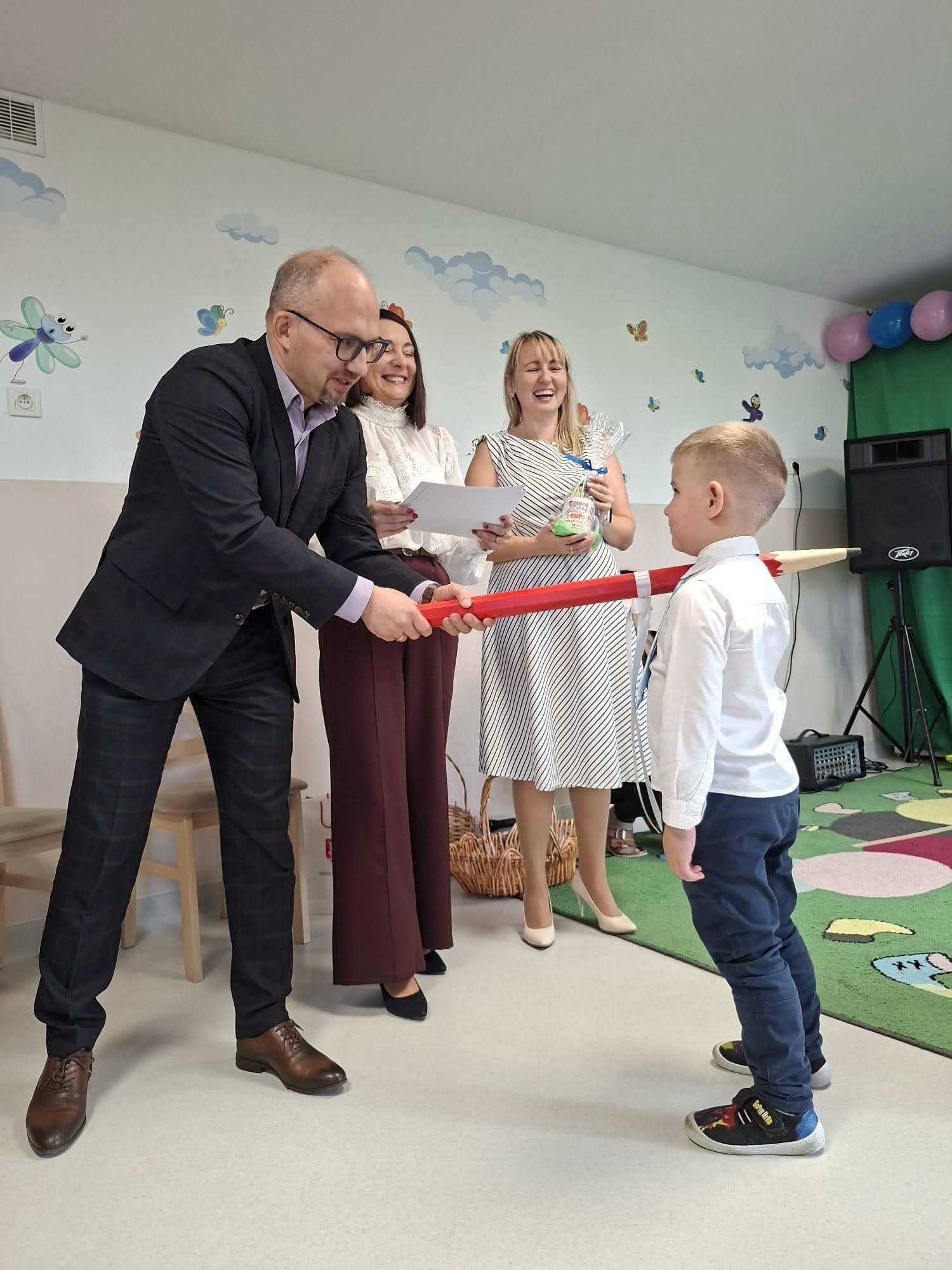 Dnia 19 listopada 2025 roku, w naszej grupie, odbyła się uroczystość pasowania na przedszkolaka. Wydarzenie to było ważnym i radosnym momentem zarówno dla dzieci, jak i ich bliskich. Na uroczystość przybyła liczna grupa rodziców oraz zaproszeni goście: Pani Dyrektor Anna Dziubak oraz Sekretarz Gminy Ostrówek Robert Targoński.