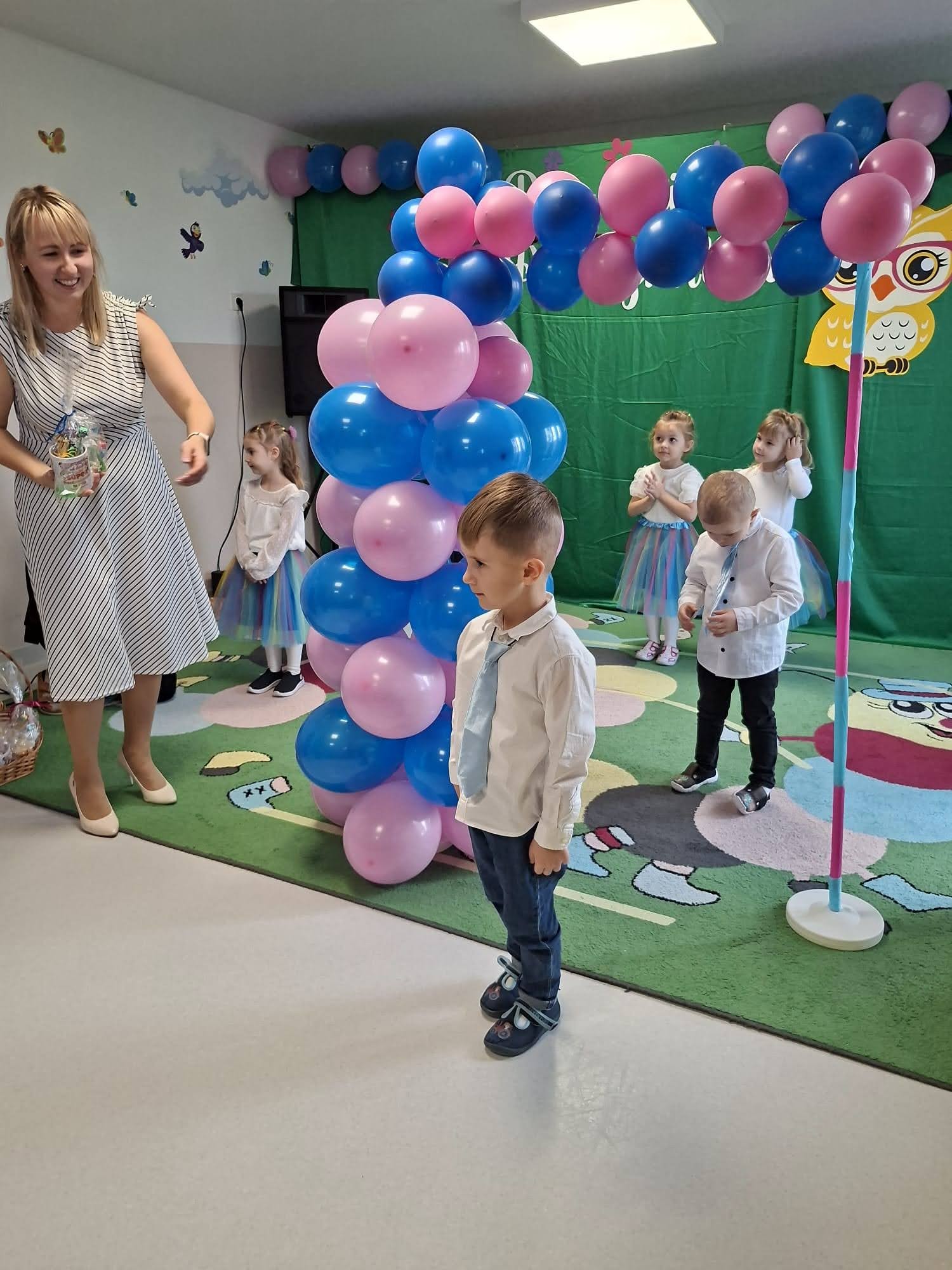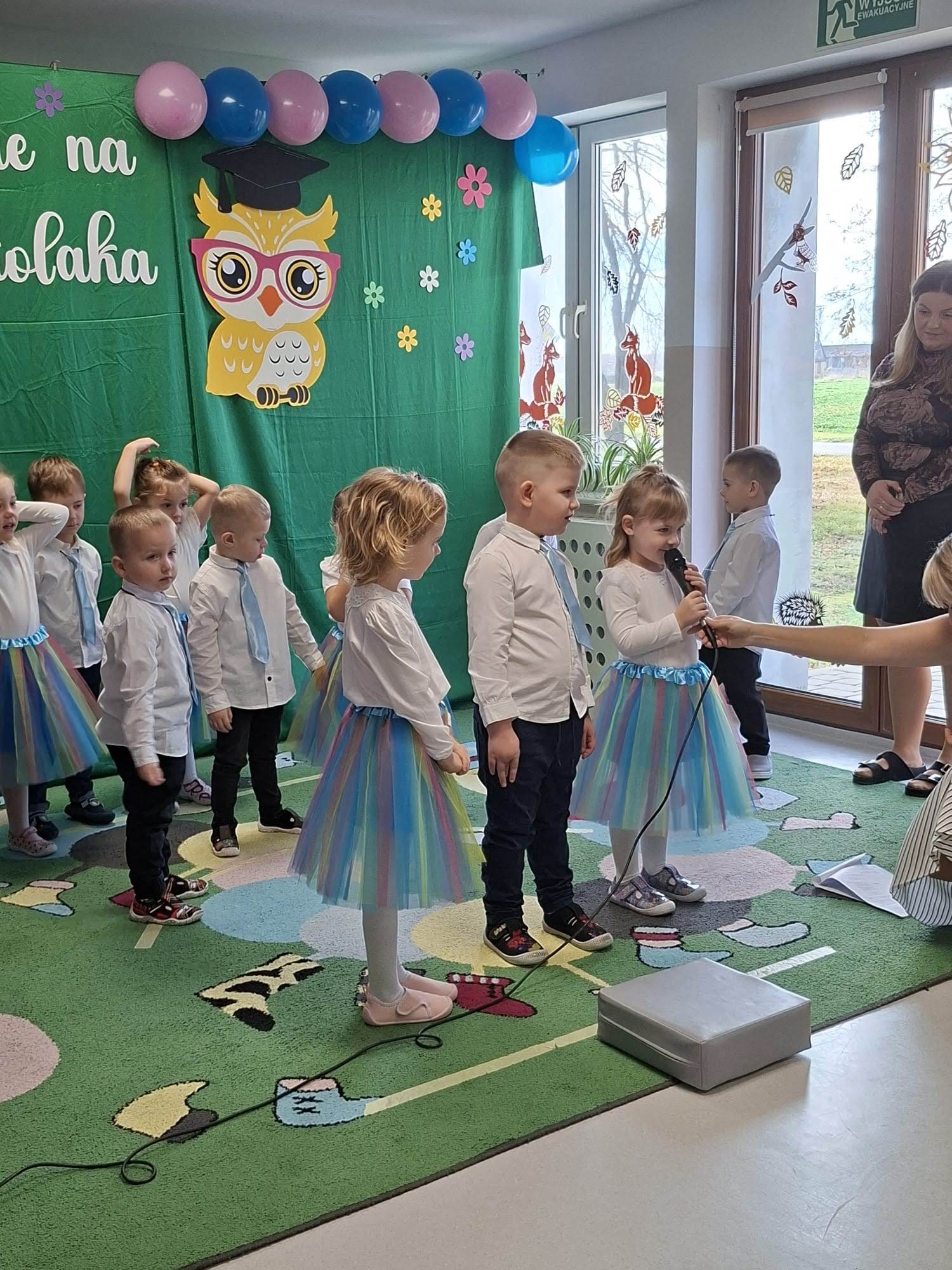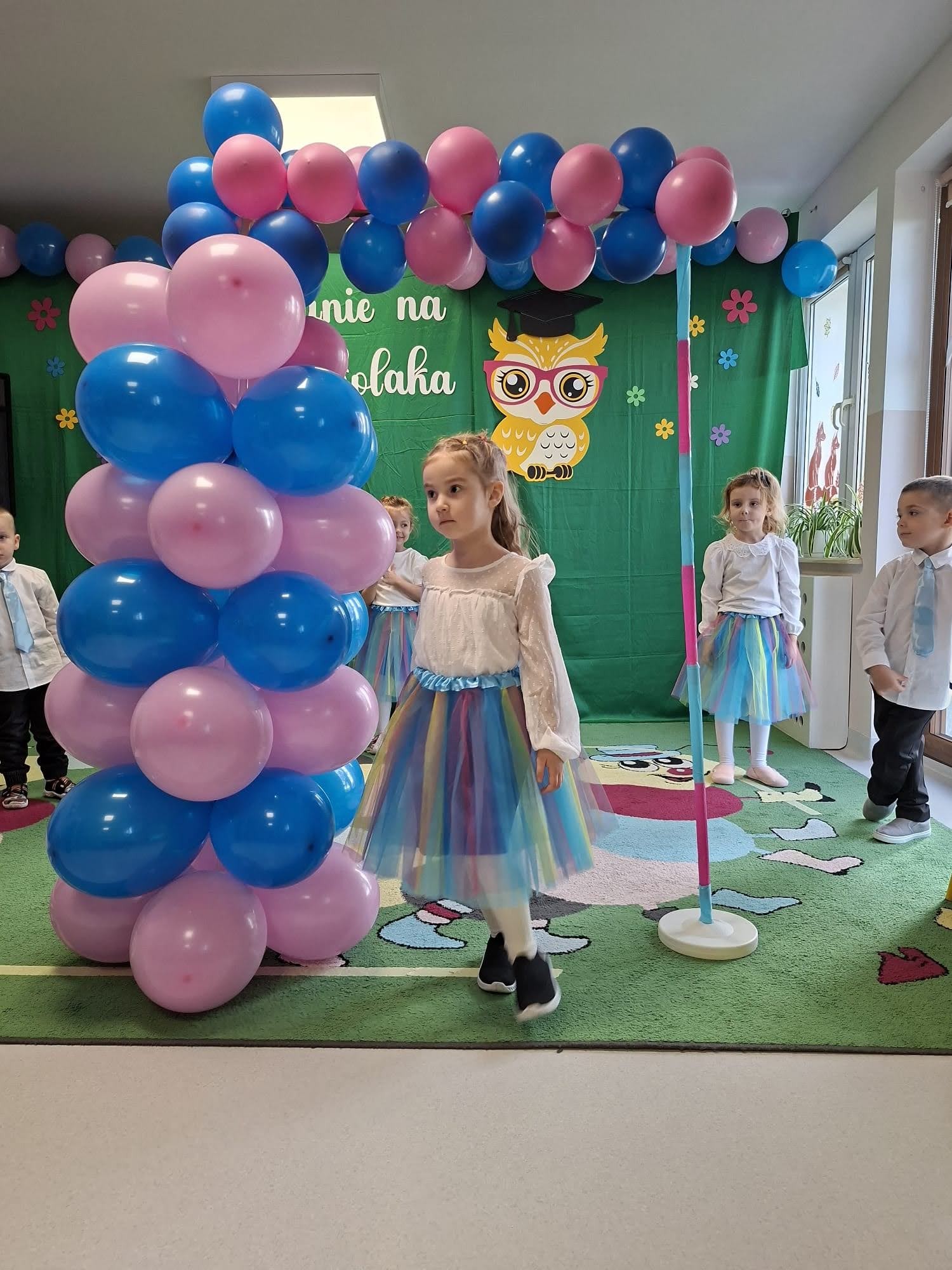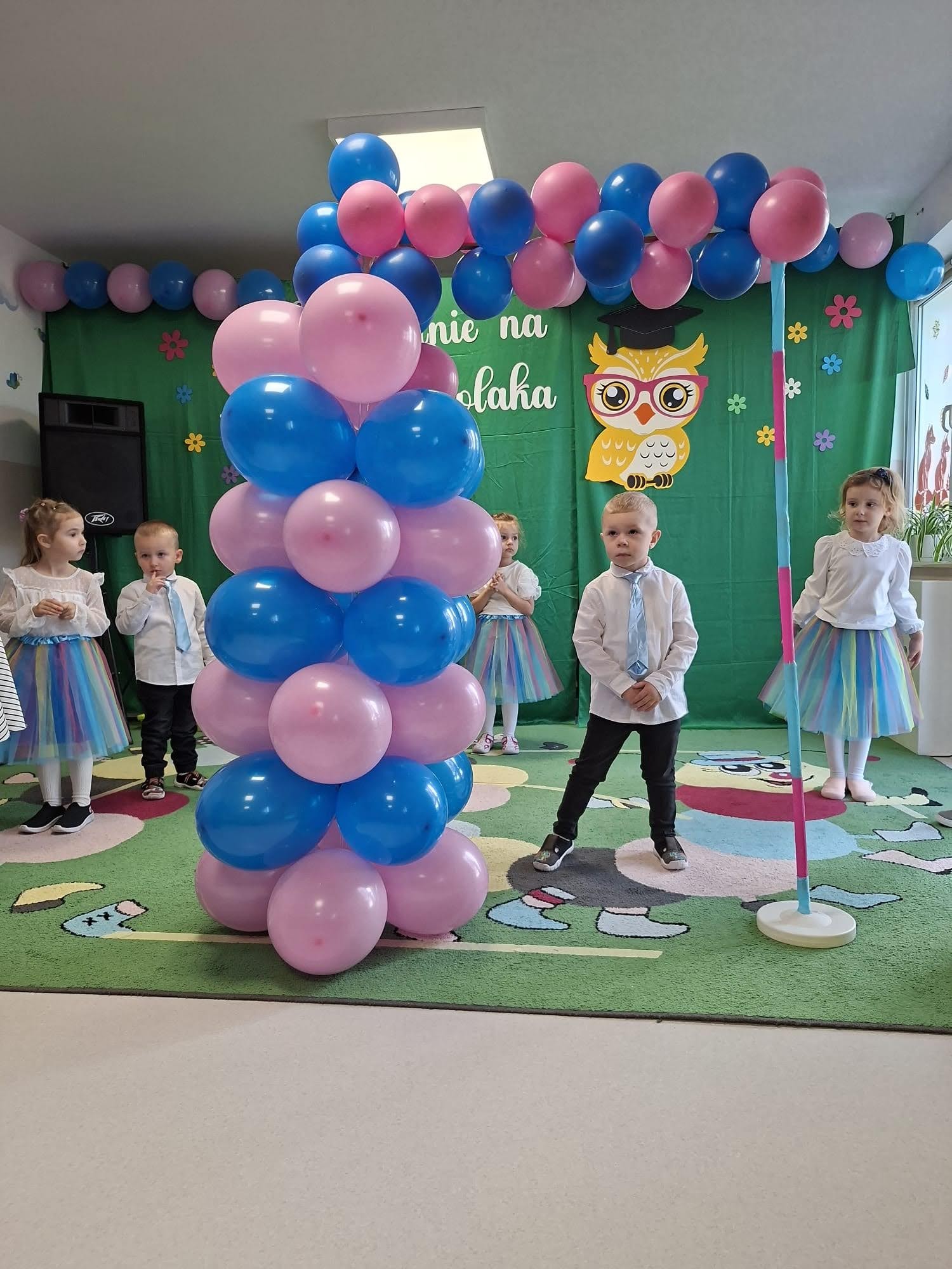 Podczas występu dzieci zaprezentowały różnorodne umiejętności. Recytowały poznane wierszyki, śpiewały piosenki oraz grały na instrumentach muzycznych. W programie artystycznym znalazły się również układy taneczne – dzieci tańczyły z kolorowymi pomponami oraz przy użyciu gumy sensorycznej, co wywołało uśmiechy na twarzach rodziców. Po części artystycznej Pani Dyrektor dokonała symbolicznego aktu pasowania każdego dziecka na przedszkolaka. Przedszkolaki otrzymały pamiątkowe dyplomy, prezenciki oraz gratulacje. Rodzice przygotowali słodki poczęstunek, który był miłym zakończeniem uroczystości i stworzył okazję do wspólnego świętowania.Wydarzenie przebiegło w ciepłej i uroczystej atmosferze, a dla dzieci było pierwszym ważnym przeżyciem w społeczności przedszkolnej.