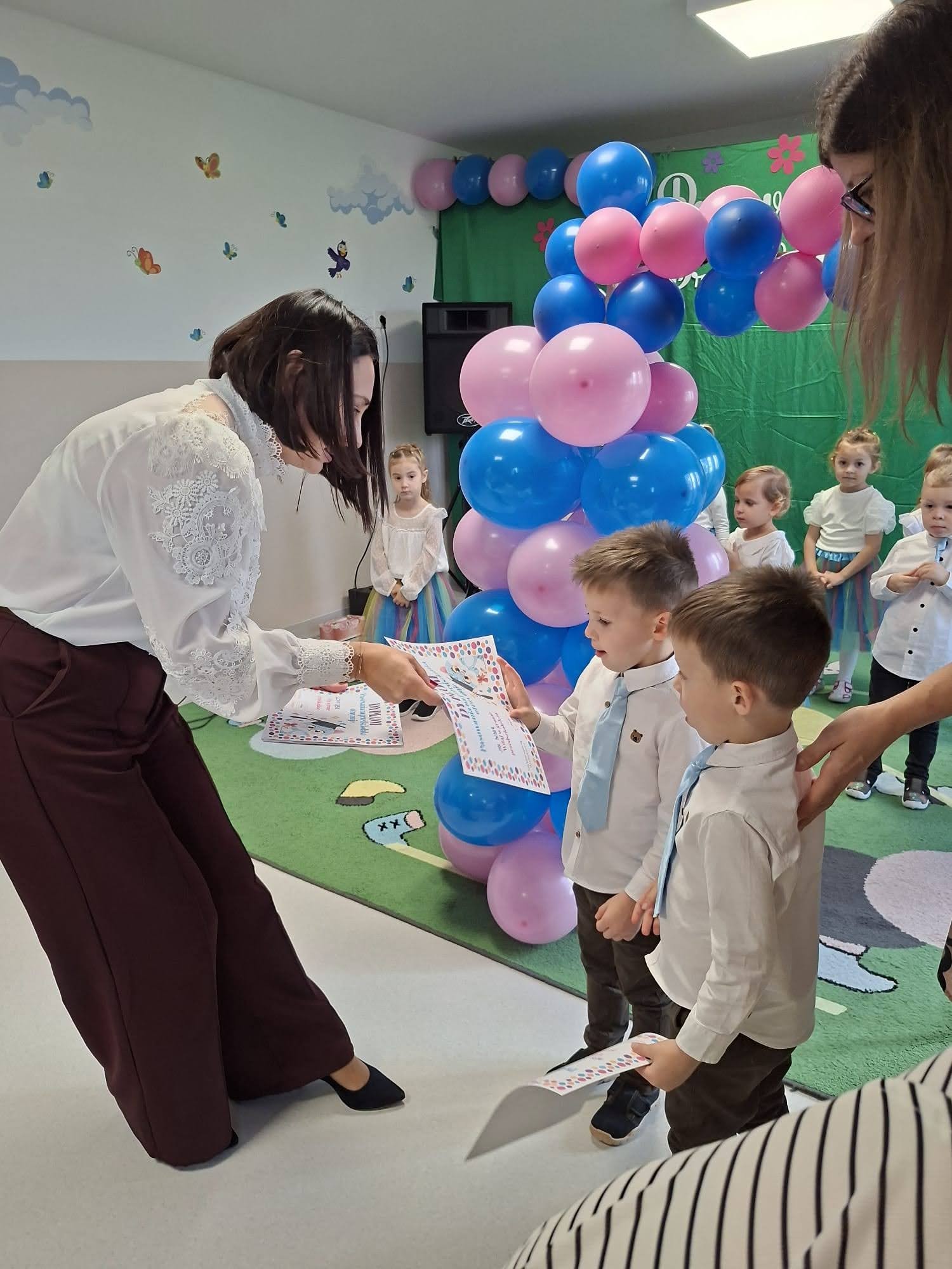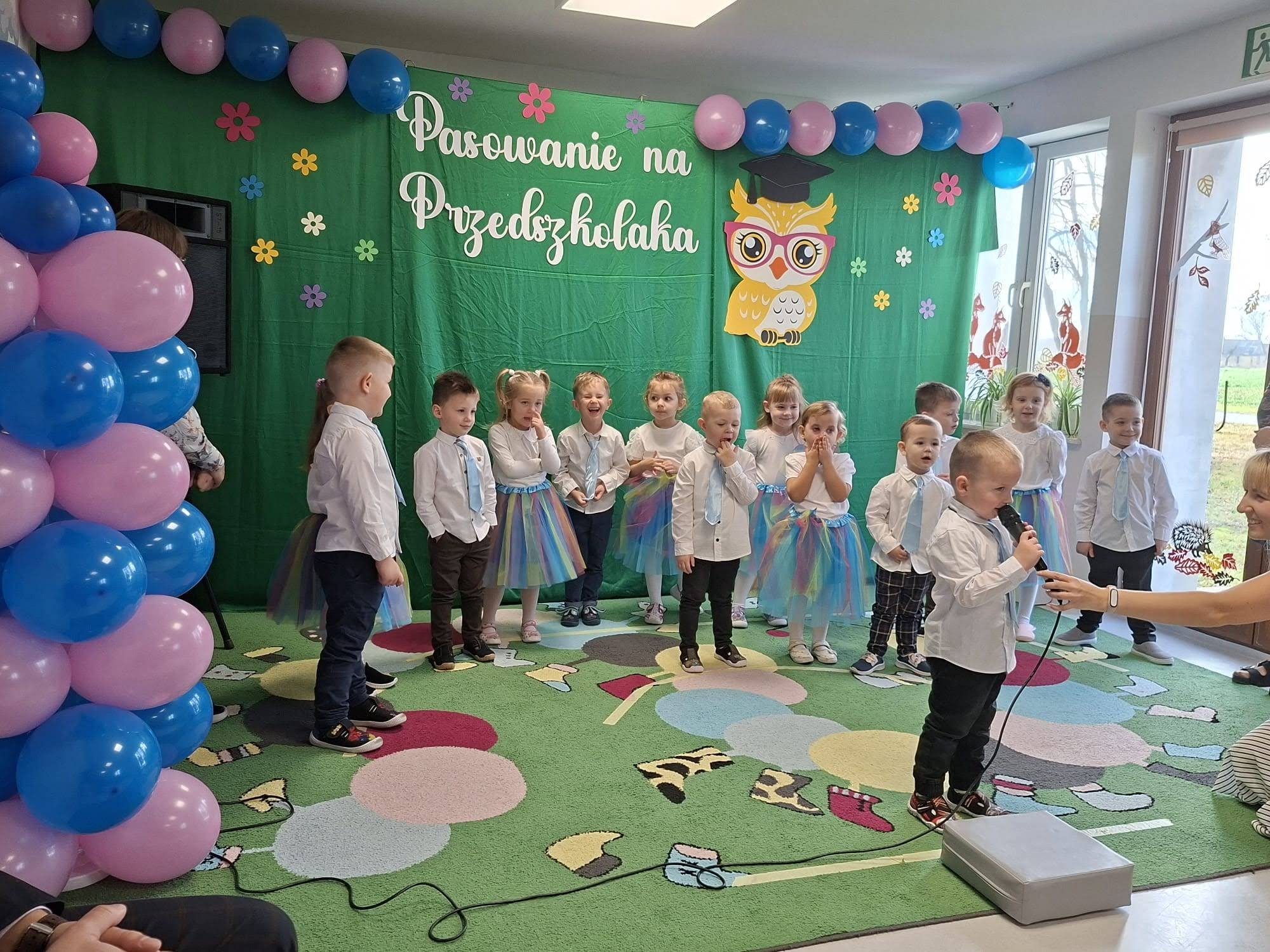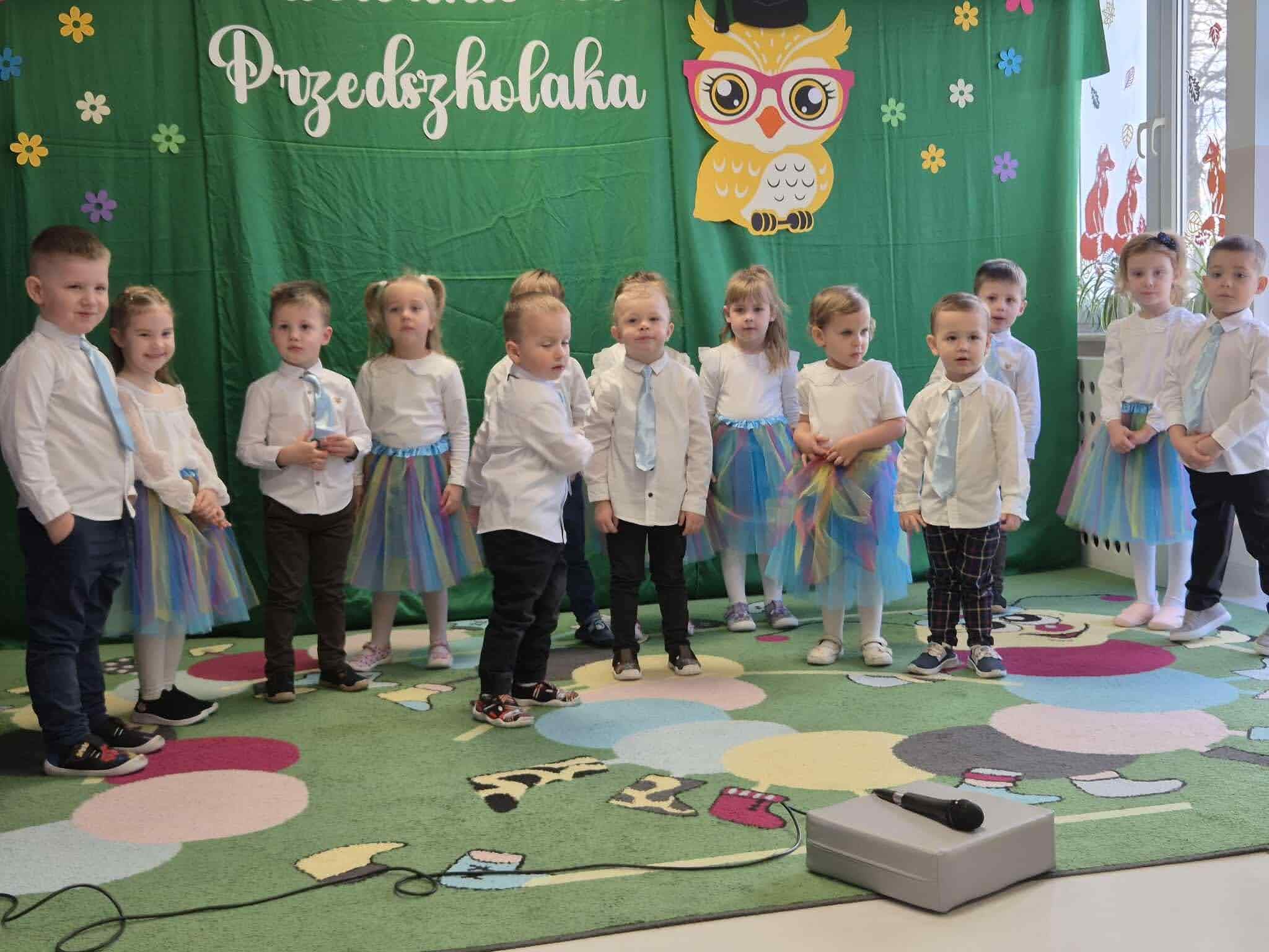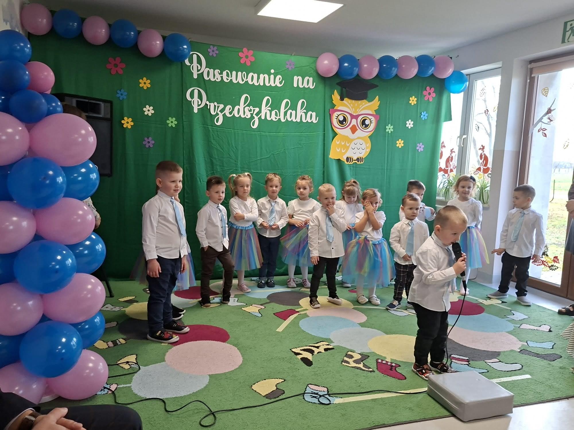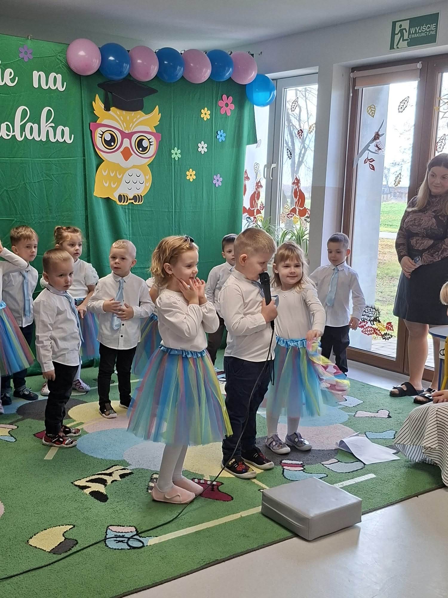 Podczas występu dzieci zaprezentowały różnorodne umiejętności. Recytowały poznane wierszyki, śpiewały piosenki oraz grały na instrumentach muzycznych. W programie artystycznym znalazły się również układy taneczne – dzieci tańczyły z kolorowymi pomponami oraz przy użyciu gumy sensorycznej, co wywołało uśmiechy na twarzach rodziców. Po części artystycznej Pani Dyrektor dokonała symbolicznego aktu pasowania każdego dziecka na przedszkolaka. Przedszkolaki otrzymały pamiątkowe dyplomy, prezenciki oraz gratulacje. Rodzice przygotowali słodki poczęstunek, który był miłym zakończeniem uroczystości i stworzył okazję do wspólnego świętowania.Wydarzenie przebiegło w ciepłej i uroczystej atmosferze, a dla dzieci było pierwszym ważnym przeżyciem w społeczności przedszkolnej.