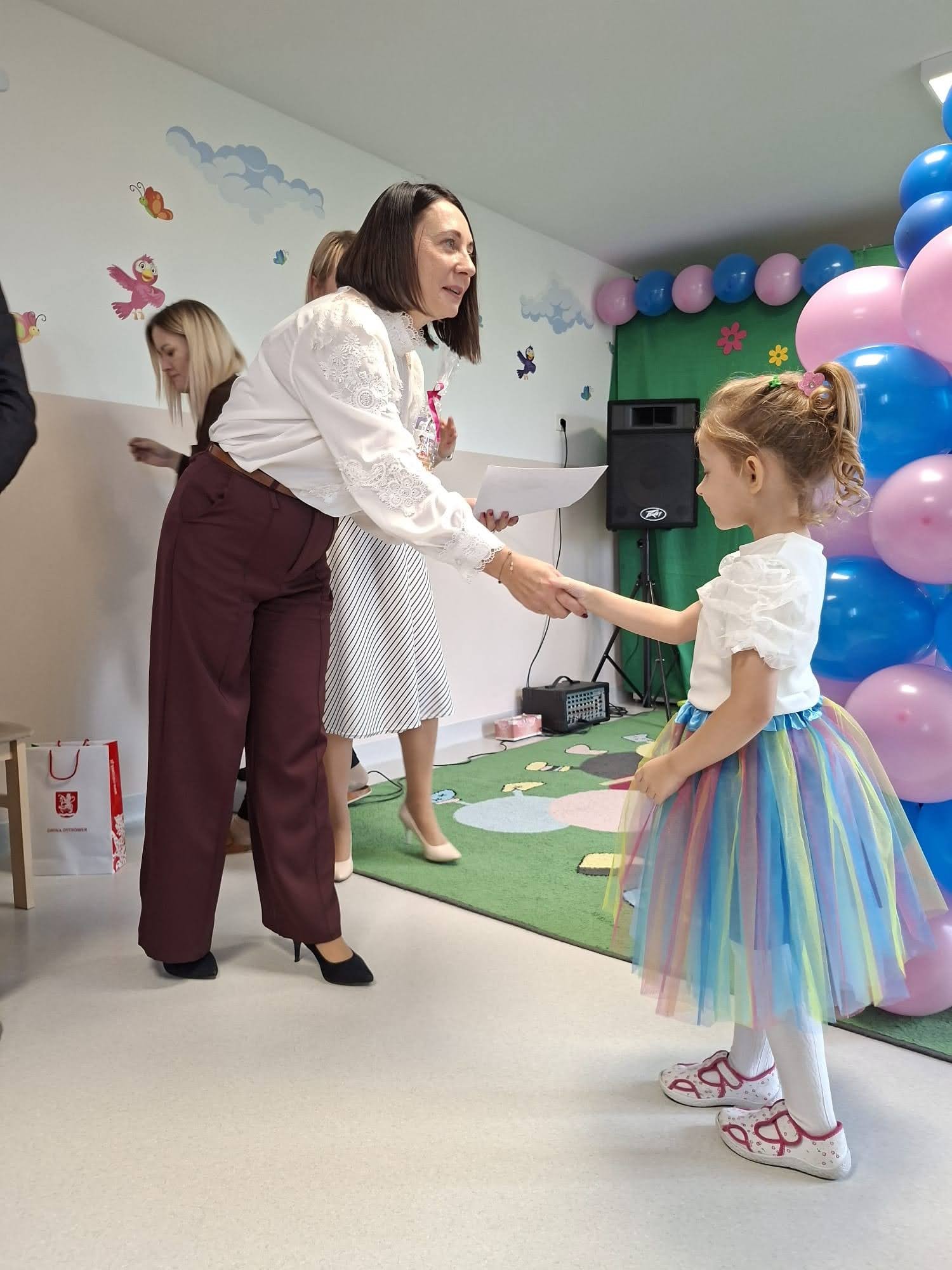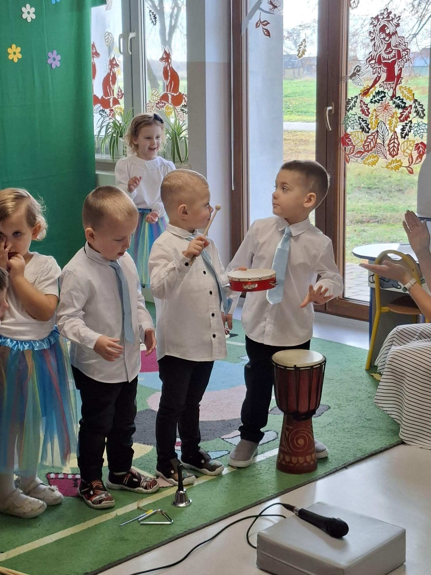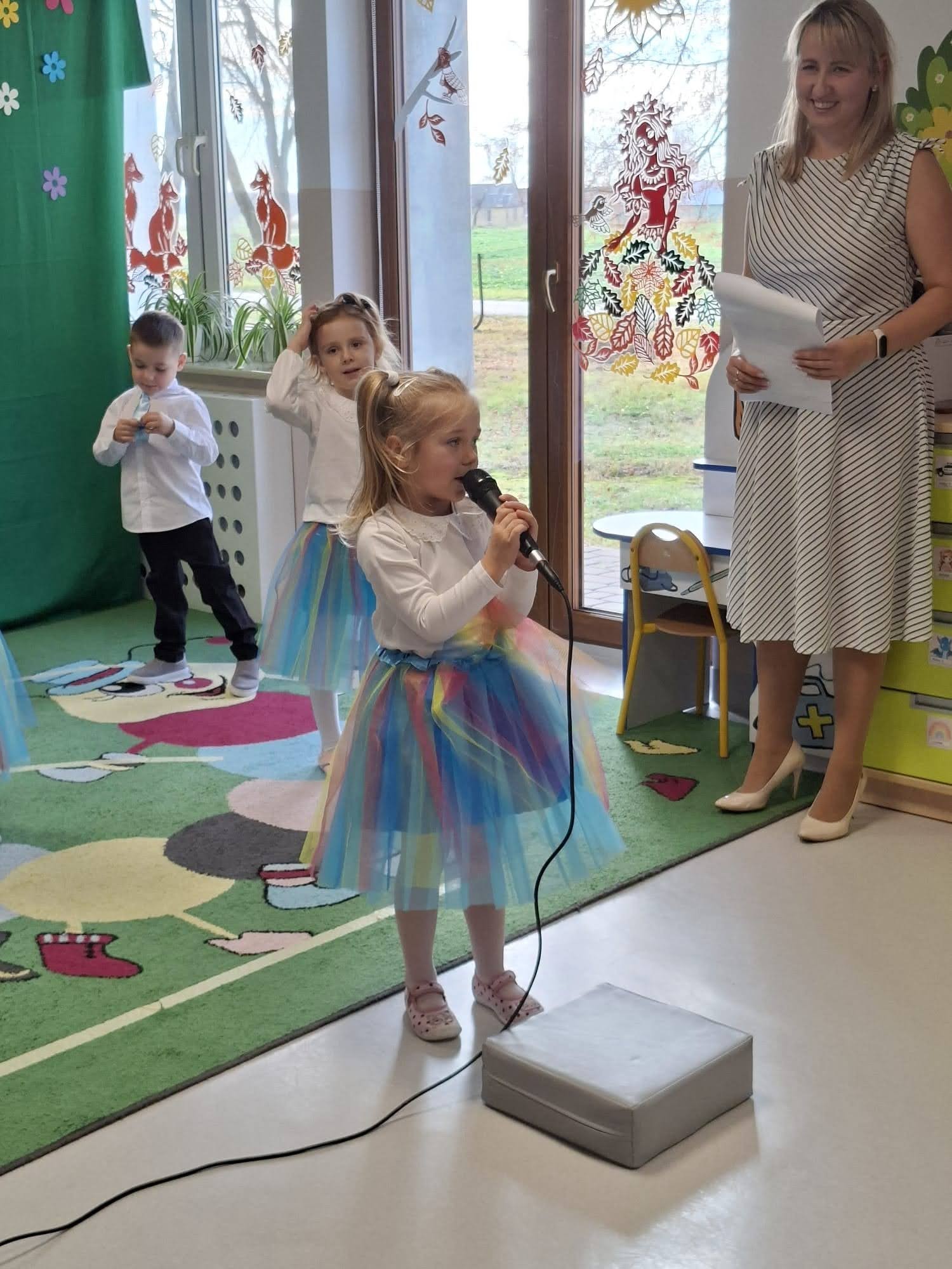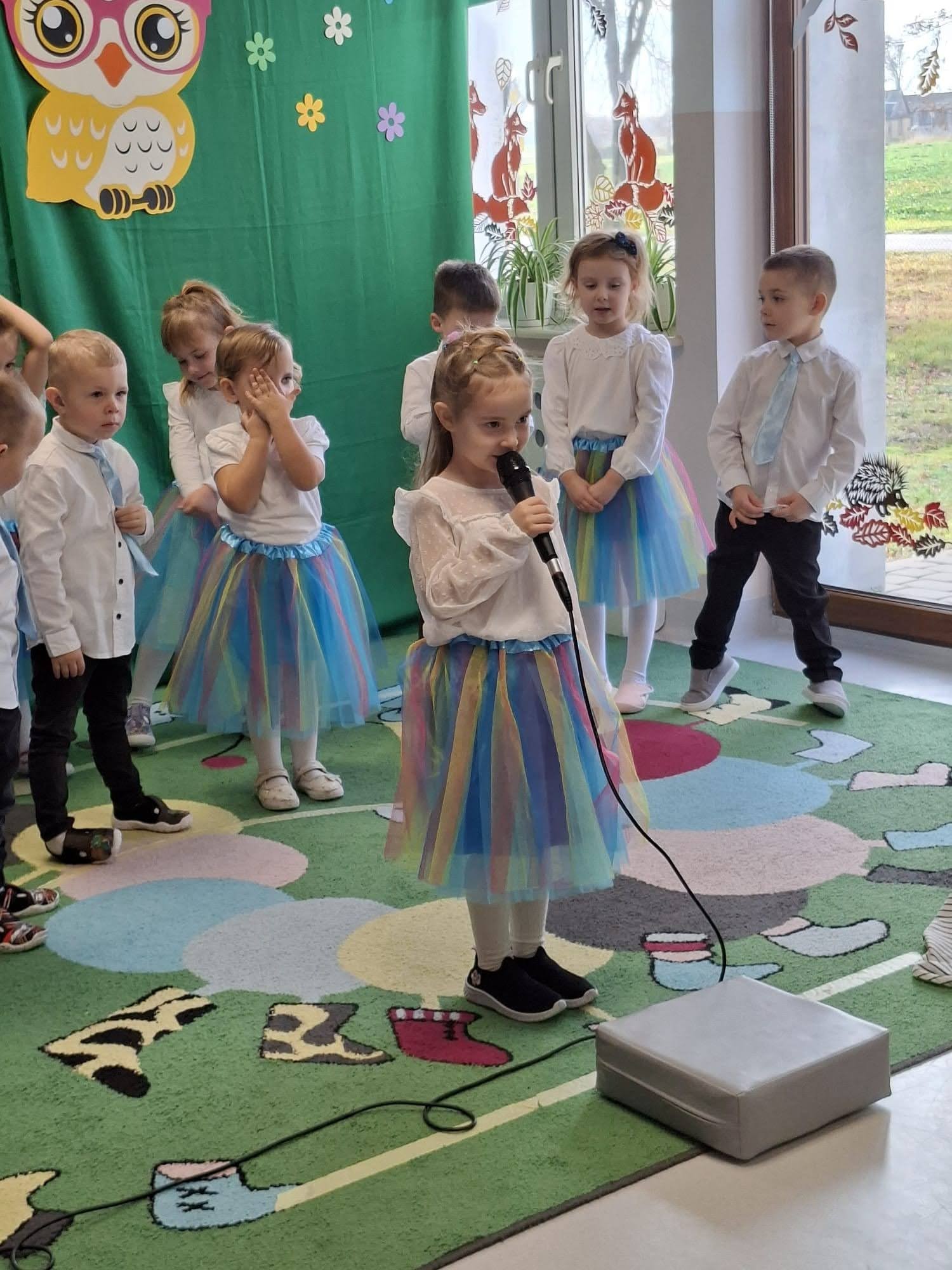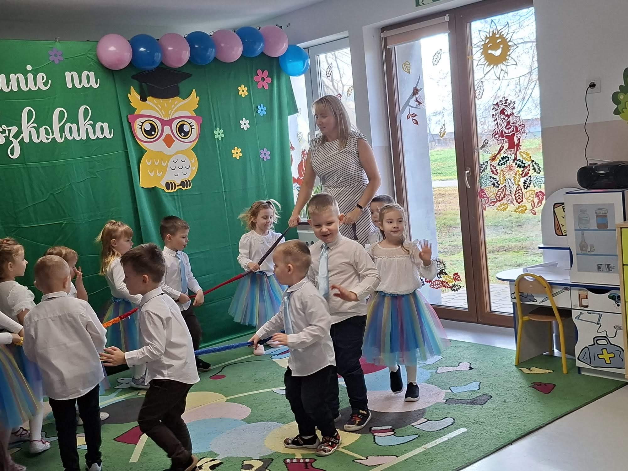Podczas występu dzieci zaprezentowały różnorodne umiejętności. Recytowały poznane wierszyki, śpiewały piosenki oraz grały na instrumentach muzycznych. W programie artystycznym znalazły się również układy taneczne – dzieci tańczyły z kolorowymi pomponami oraz przy użyciu gumy sensorycznej, co wywołało uśmiechy na twarzach rodziców. Po części artystycznej Pani Dyrektor dokonała symbolicznego aktu pasowania każdego dziecka na przedszkolaka. Przedszkolaki otrzymały pamiątkowe dyplomy, prezenciki oraz gratulacje. Rodzice przygotowali słodki poczęstunek, który był miłym zakończeniem uroczystości i stworzył okazję do wspólnego świętowania.Wydarzenie przebiegło w ciepłej i uroczystej atmosferze, a dla dzieci było pierwszym ważnym przeżyciem w społeczności przedszkolnej.