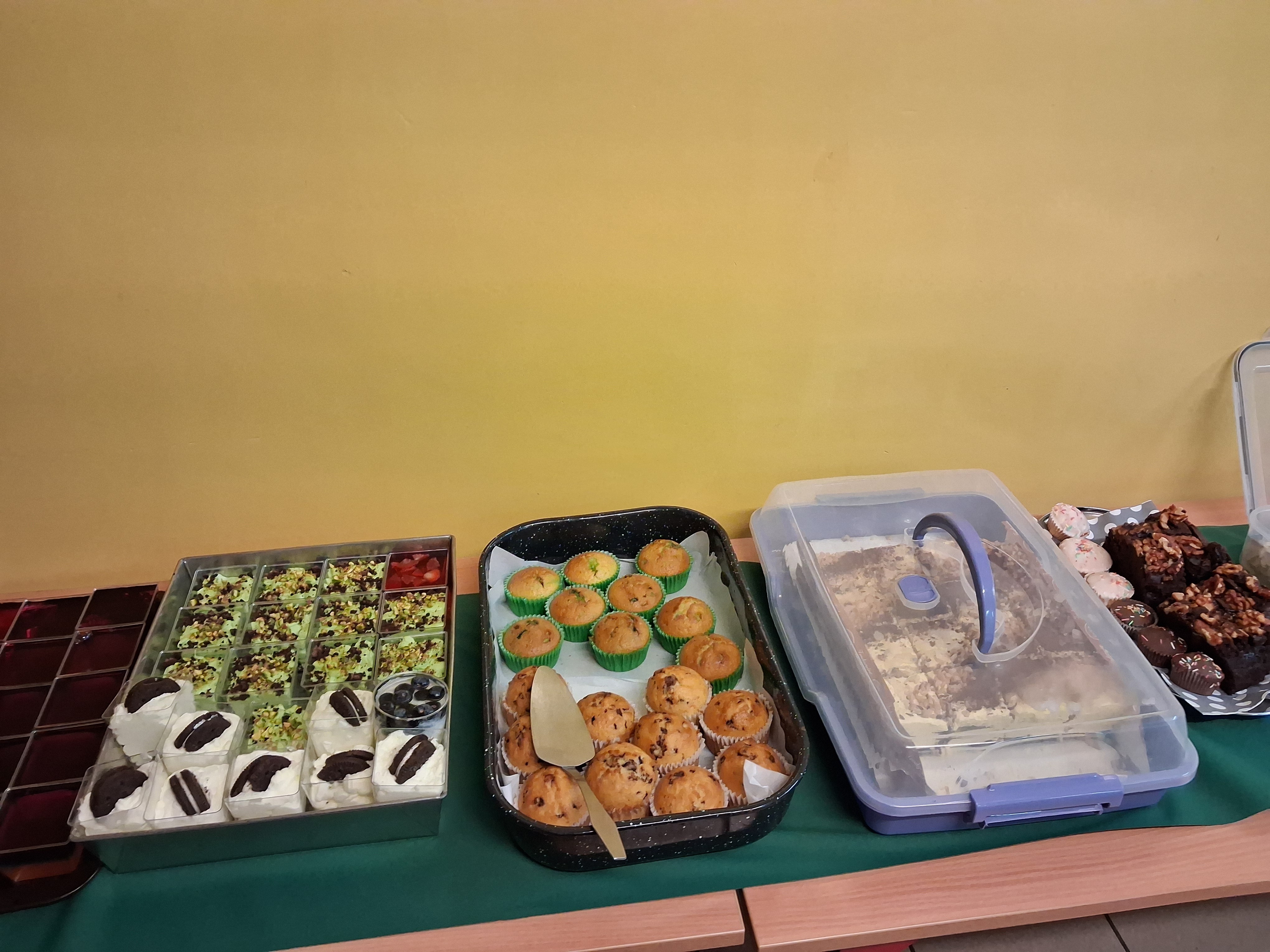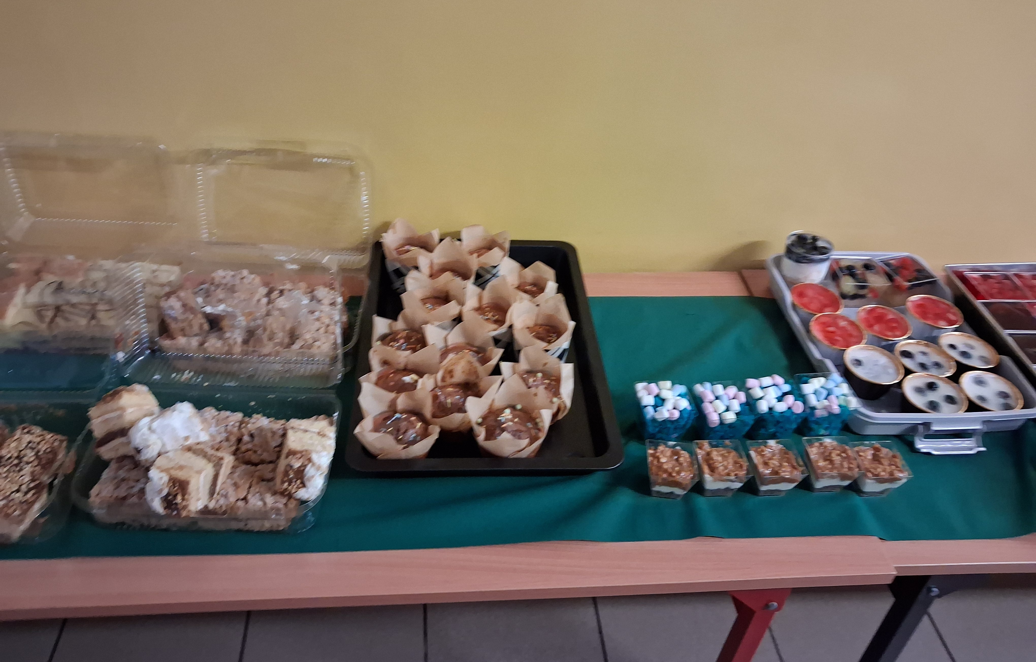 Uczniowie, nauczyciele i pracownicy szkoły przynieśli ogromne ilości ciasta, desery i inne pyszności. Wymienione słodkości zamieniliśmy w pieniądze, które przeznaczymy na szczytne cele. Dzielimy się informacją o rekordowej sumie zbiórki – 1200 zł.