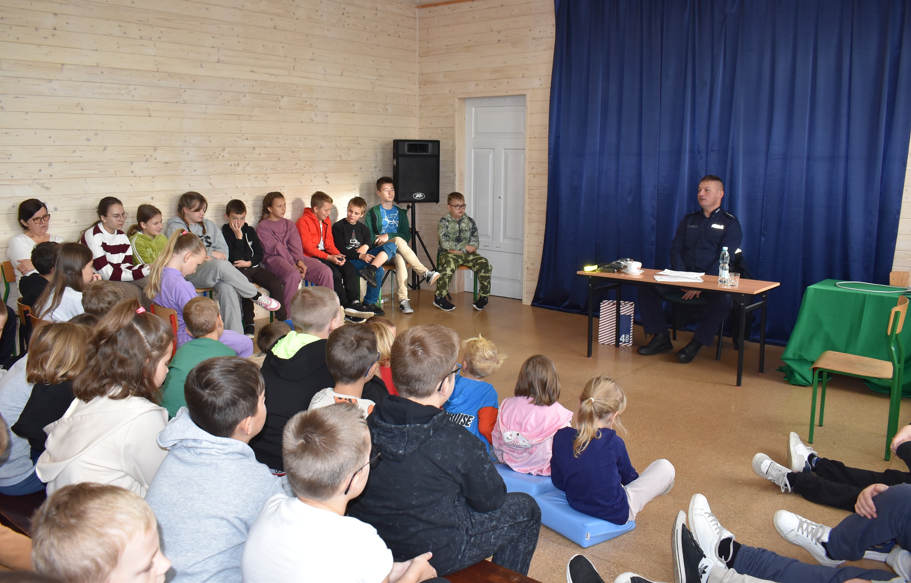 16 października 2025 roku w naszej szkole odbyło się spotkanie uczniów z funkcjonariuszem Policji Panem Andrzejem Trykaczem. Tematem spotkania były zasady bezpieczeństwa w drodze do szkoły, w Internecie oraz w życiu codziennym. Policjant przypomniał uczniom, jak ważne jest przestrzeganie przepisów ruchu drogowego, zachowanie ostrożności podczas przechodzenia przez jezdnię oraz właściwe reagowanie w sytuacjach zagrożenia.