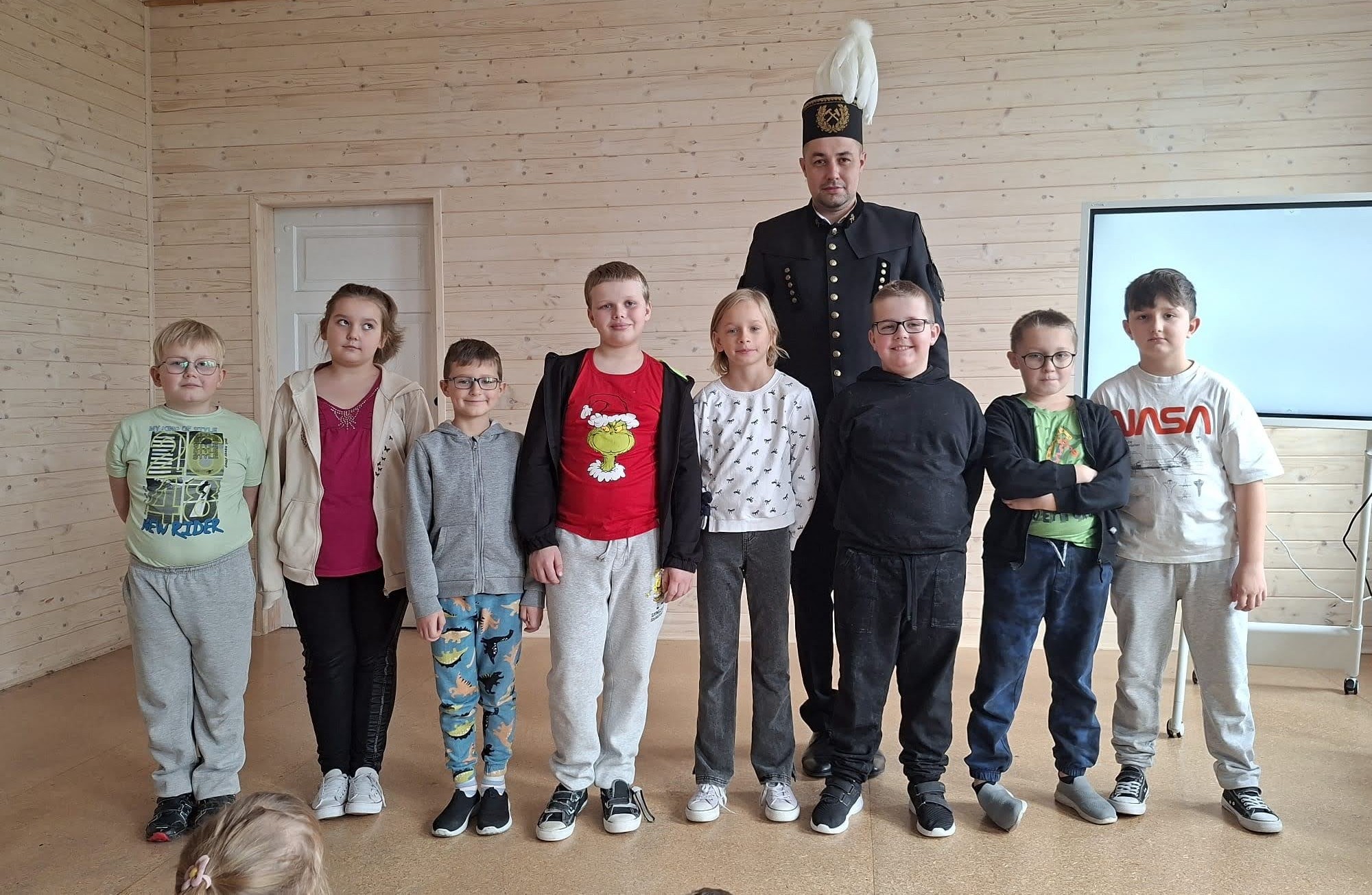 W dniu 4 grudnia 2025 roku odbyło się wyjątkowe spotkanie dzieci z oddziałów przedszkolnych oraz klas I–III z górnikiem Jakubem Michalukiem. Nasz gość opowiadał o swojej ciężkiej i odpowiedzialnej pracy w kopalni, tłumacząc, jak wygląda codzienny dzień górnika oraz z jakimi trudnościami i wyzwaniami wiąże się ten zawód.