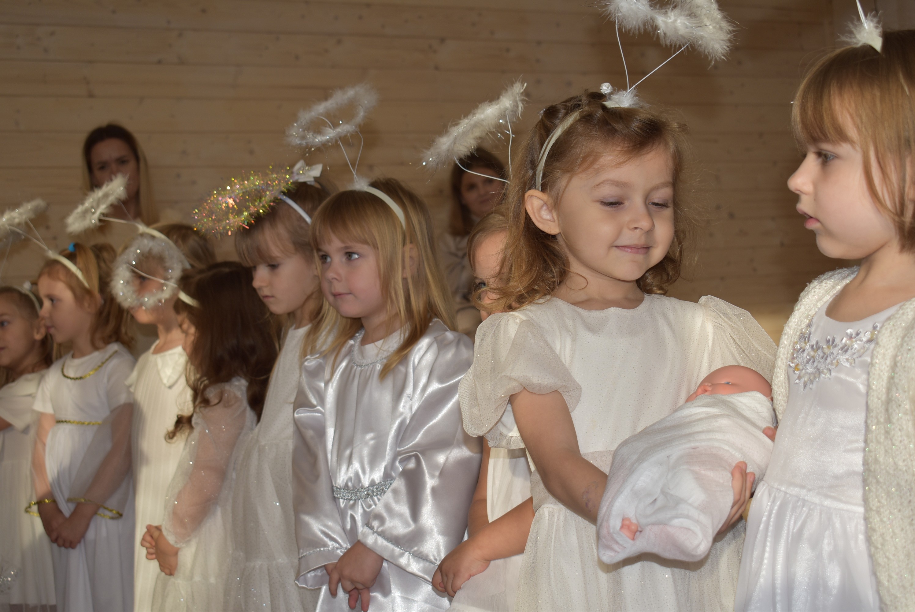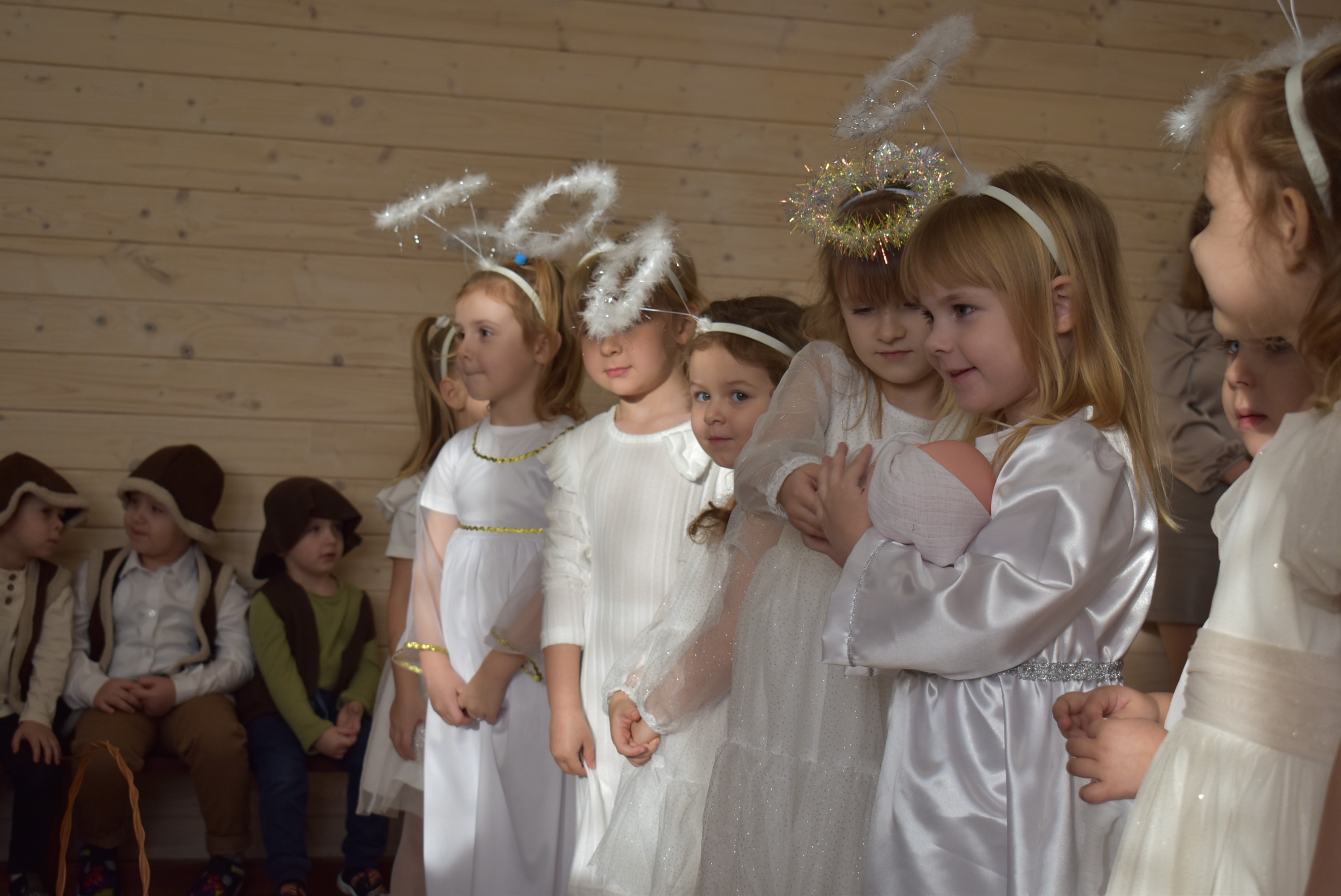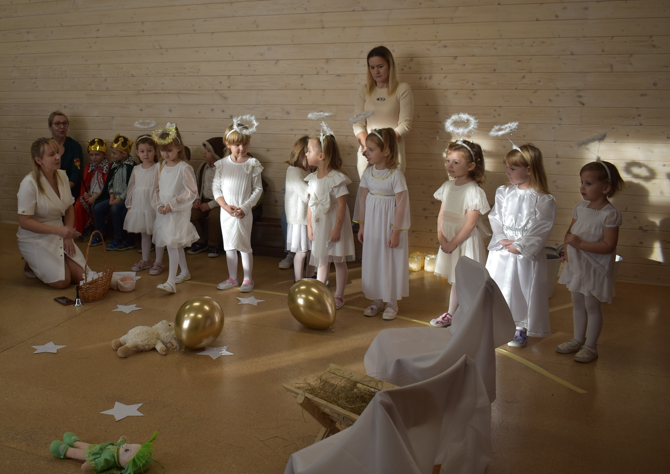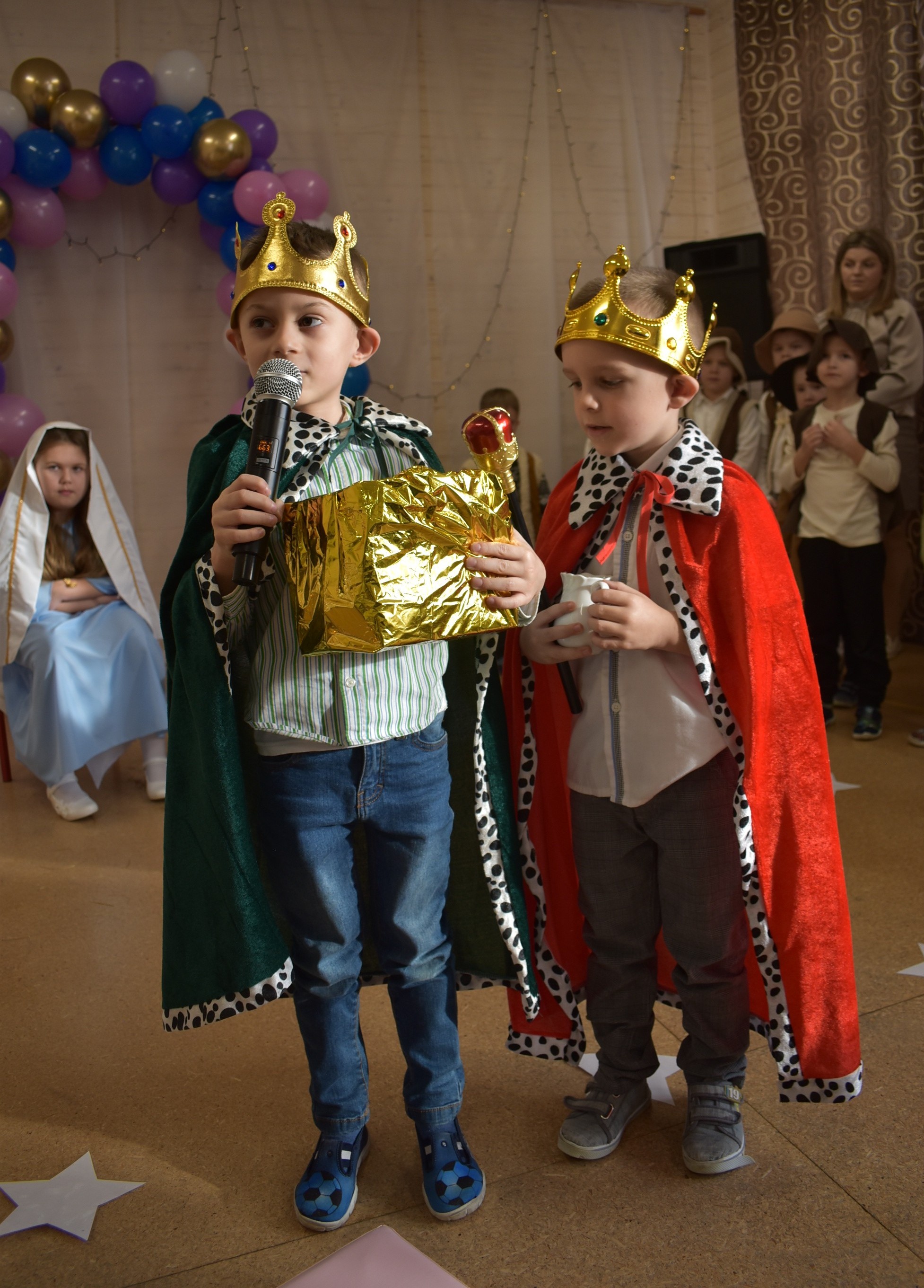 Dzieci zaprezentowały piękny program artystyczny o tematyce bożonarodzeniowej. Wystąpiły przebrane za aniołki, pasterzy, Maryję, Józefa oraz Trzech Króli. Mali artyści z dużym zaangażowaniem recytowali wierszyki, śpiewali kolędy i pastorałki. Szczególne wzruszenie wzbudził taniec aniołków do piosenki „Światełko”, podczas którego dzieci prezentowały świecące gwiazdeczki trzymane na dłoniach, a także taniec z lampionami do piosenki "Noel", wprowadzając zgromadzonych w radosny, świąteczny nastrój.