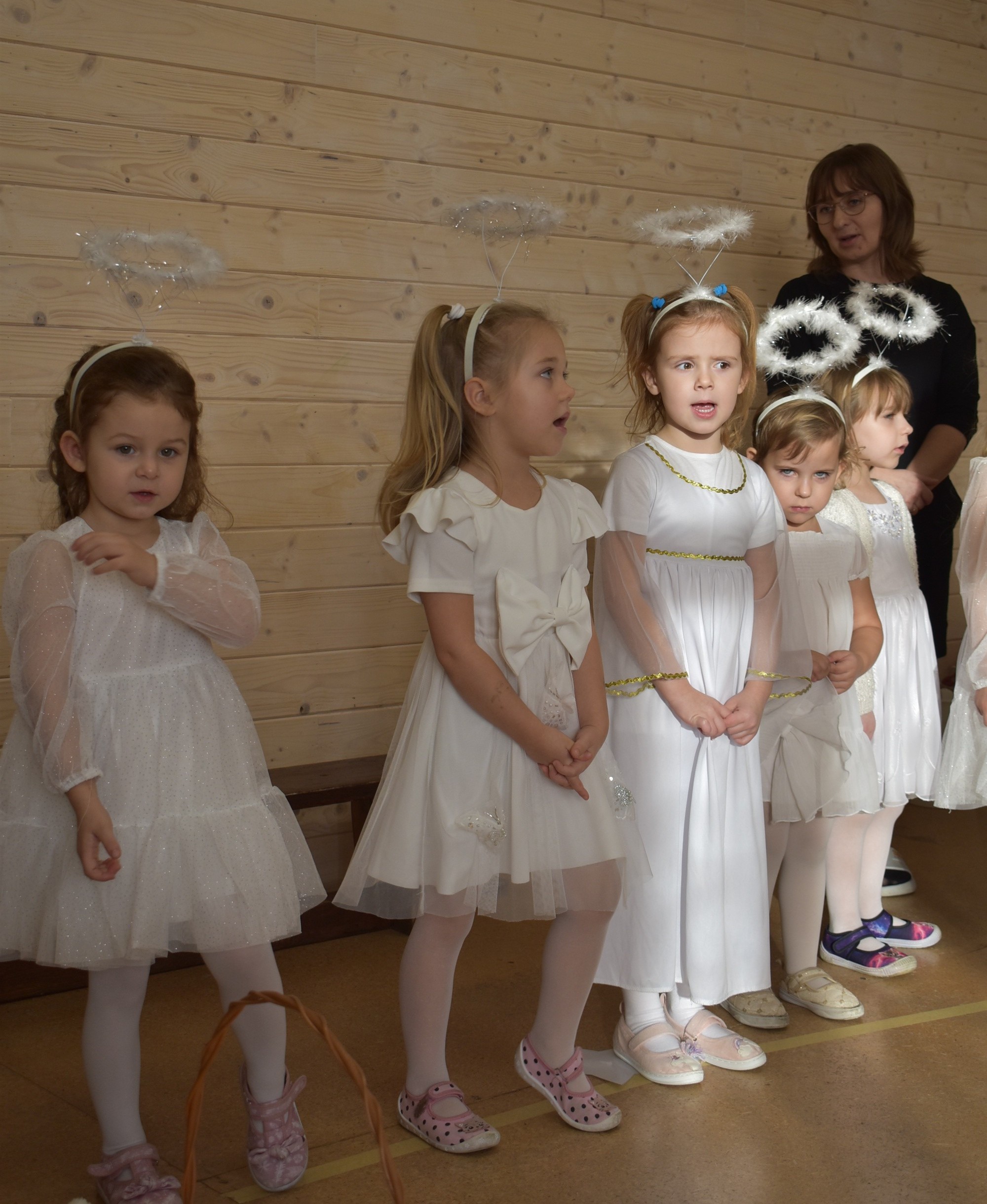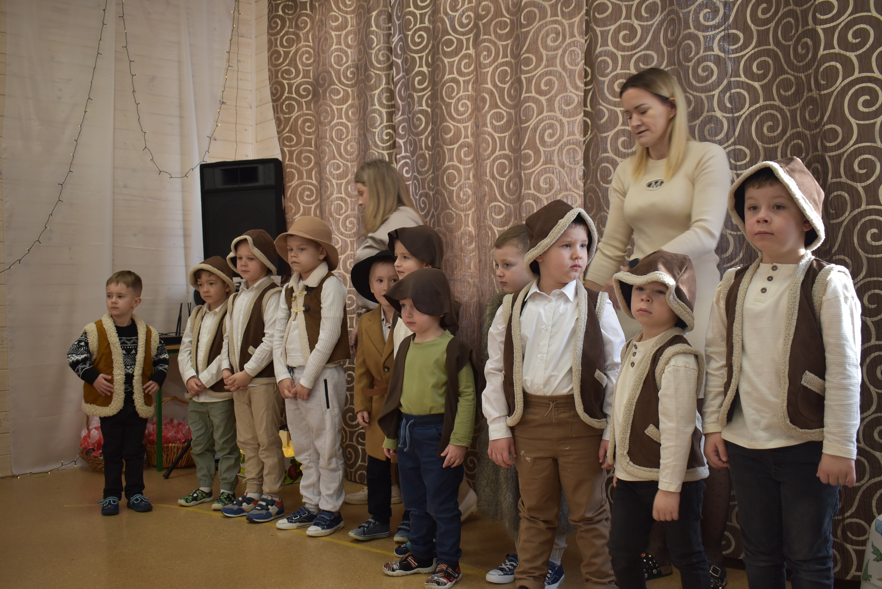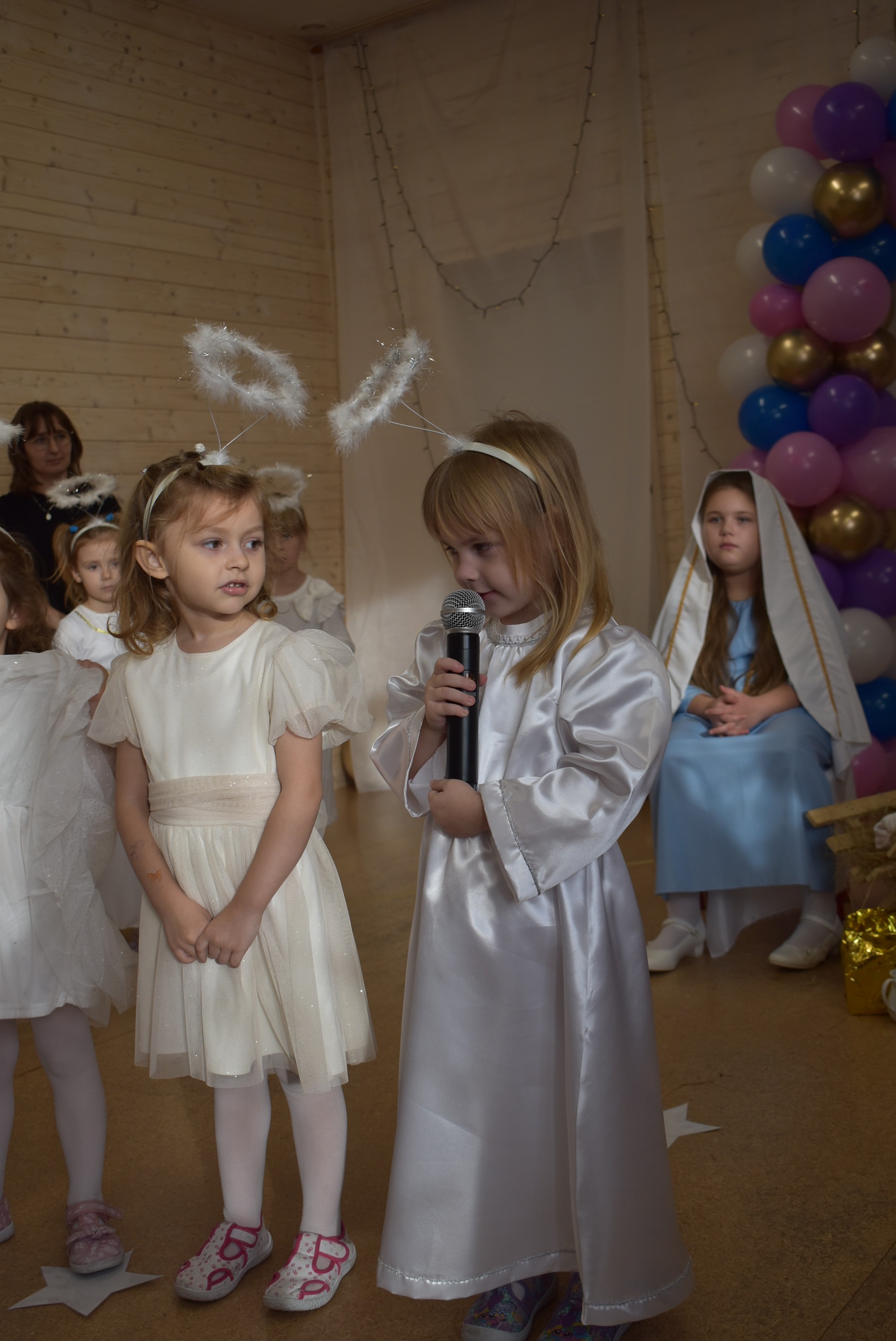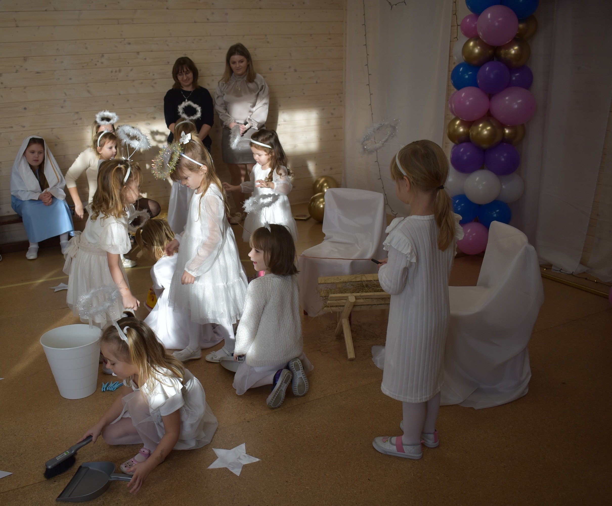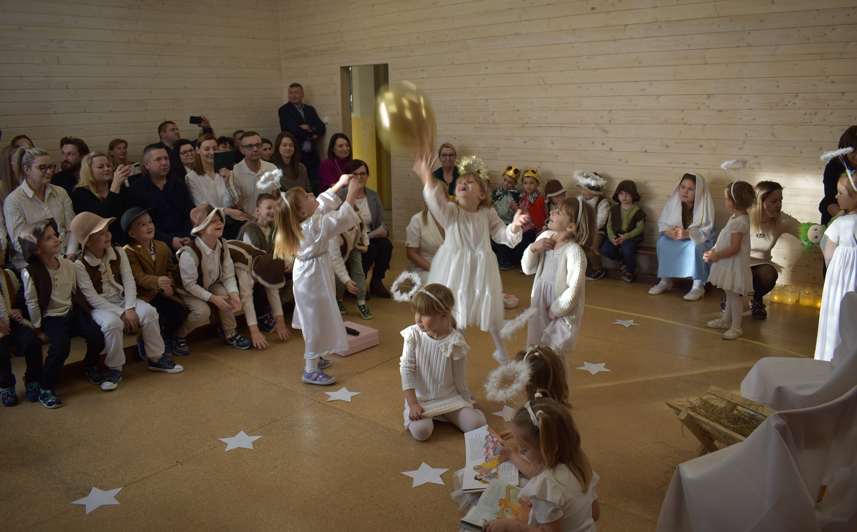 Dzieci zaprezentowały piękny program artystyczny o tematyce bożonarodzeniowej. Wystąpiły przebrane za aniołki, pasterzy, Maryję, Józefa oraz Trzech Króli. Mali artyści z dużym zaangażowaniem recytowali wierszyki, śpiewali kolędy i pastorałki. Szczególne wzruszenie wzbudził taniec aniołków do piosenki „Światełko”, podczas którego dzieci prezentowały świecące gwiazdeczki trzymane na dłoniach, a także taniec z lampionami do piosenki "Noel", wprowadzając zgromadzonych w radosny, świąteczny nastrój.