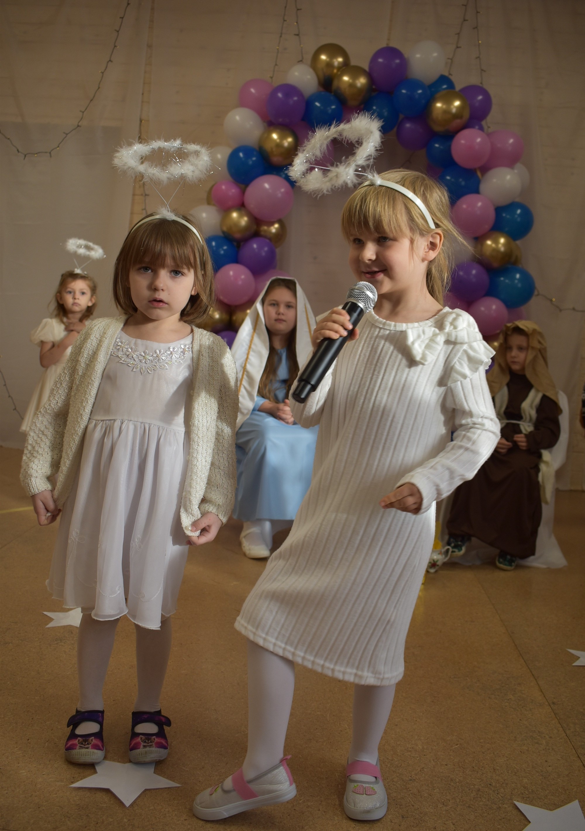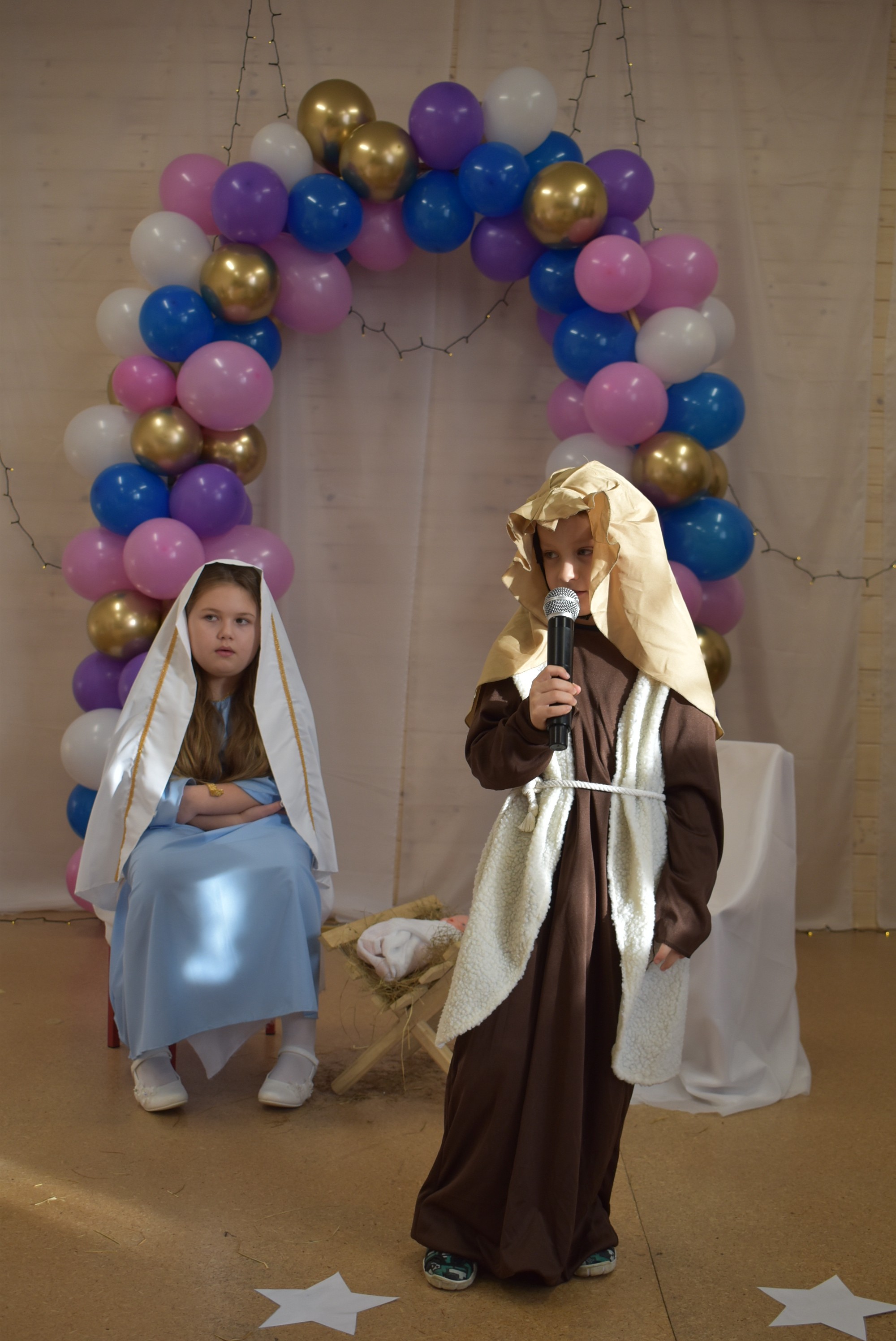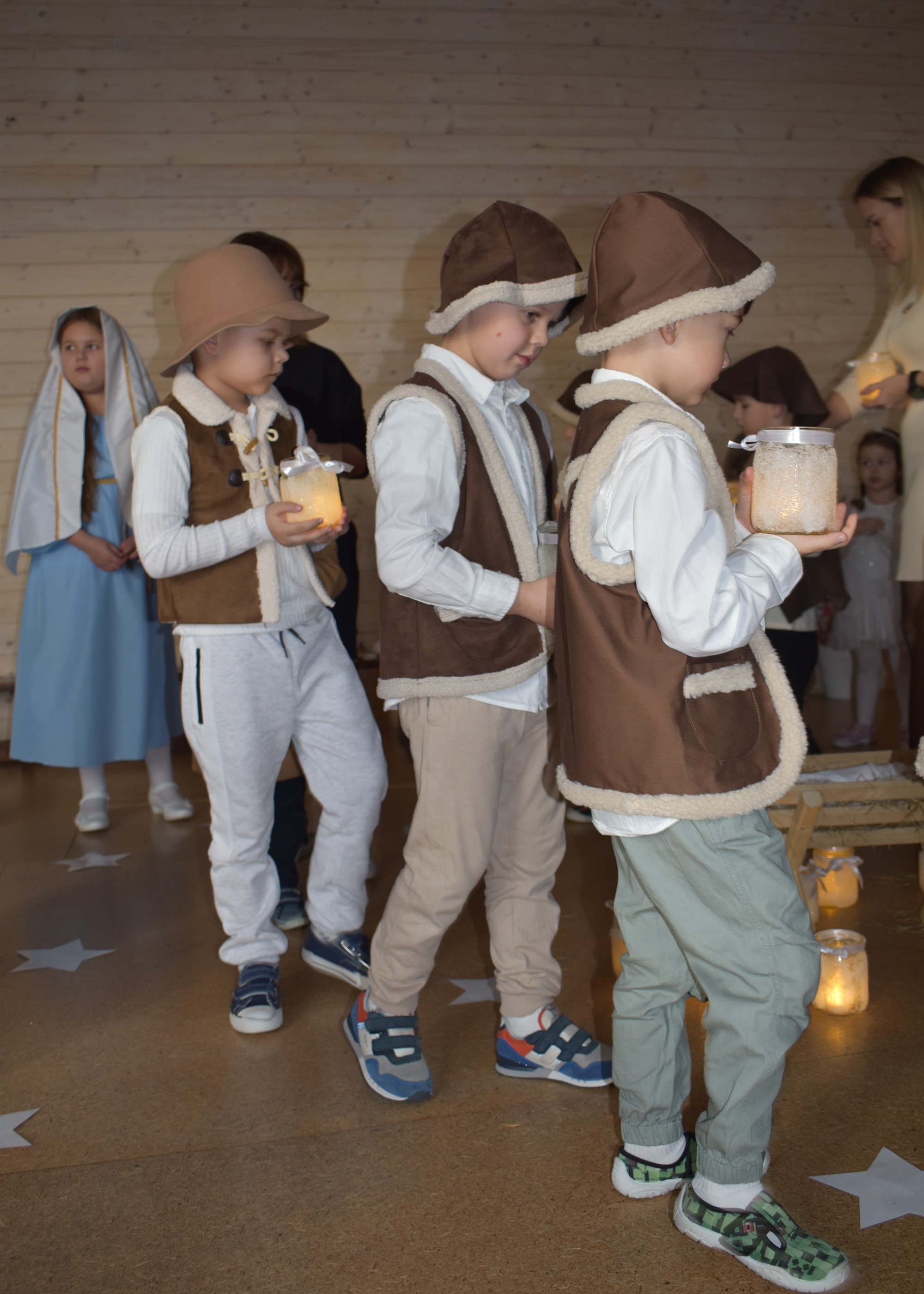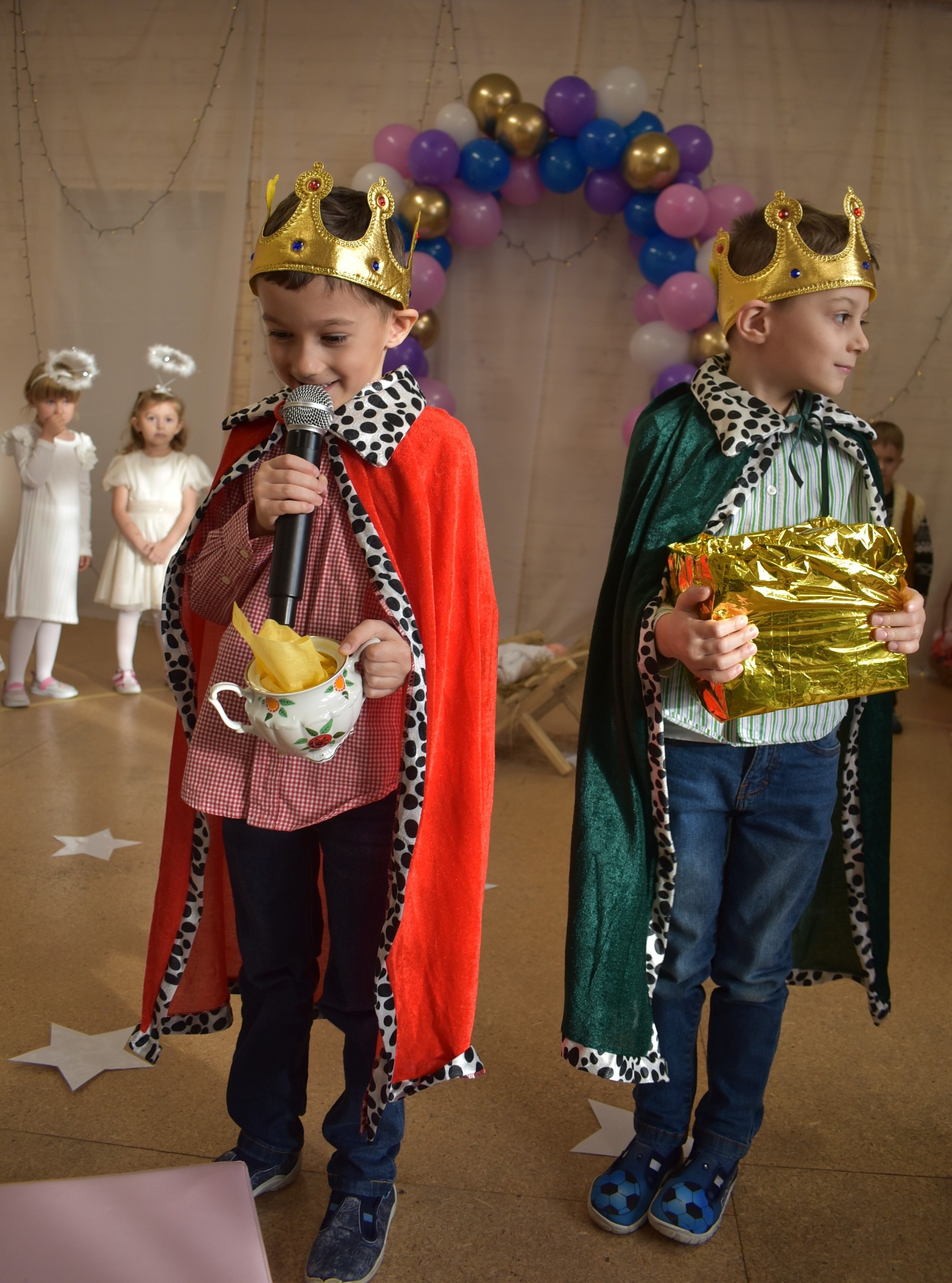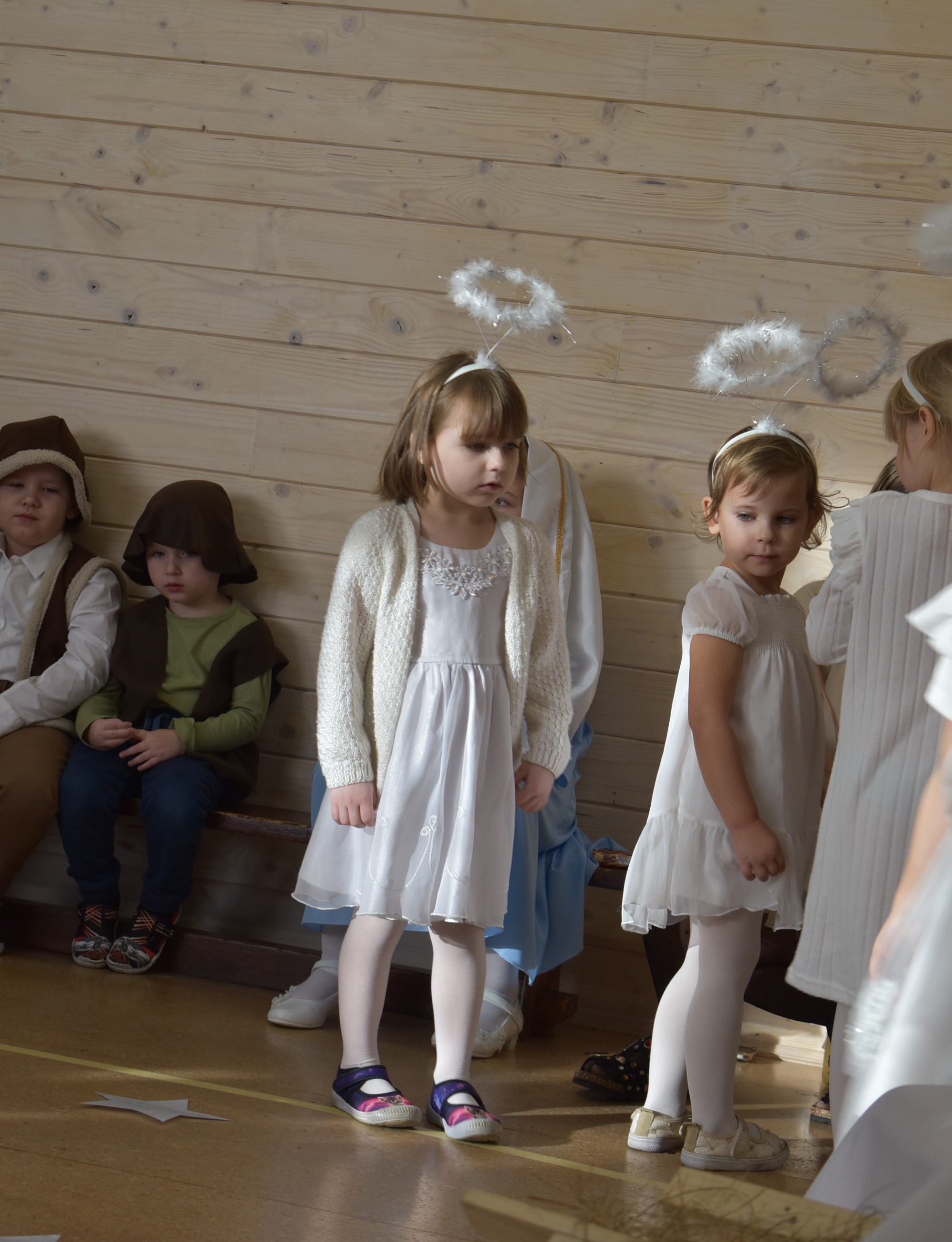 Dzieci zaprezentowały piękny program artystyczny o tematyce bożonarodzeniowej. Wystąpiły przebrane za aniołki, pasterzy, Maryję, Józefa oraz Trzech Króli. Mali artyści z dużym zaangażowaniem recytowali wierszyki, śpiewali kolędy i pastorałki. Szczególne wzruszenie wzbudził taniec aniołków do piosenki „Światełko”, podczas którego dzieci prezentowały świecące gwiazdeczki trzymane na dłoniach, a także taniec z lampionami do piosenki "Noel", wprowadzając zgromadzonych w radosny, świąteczny nastrój.