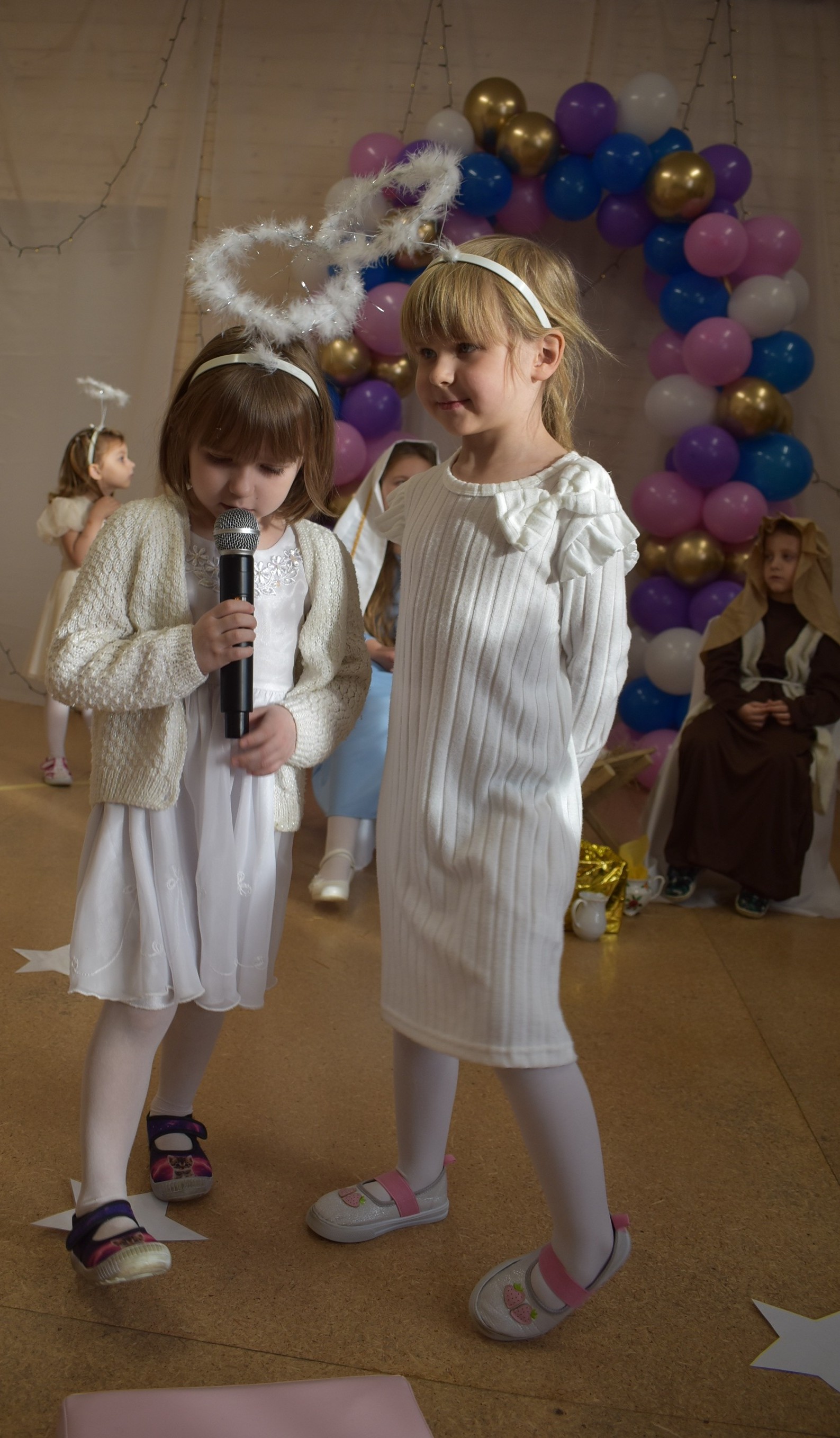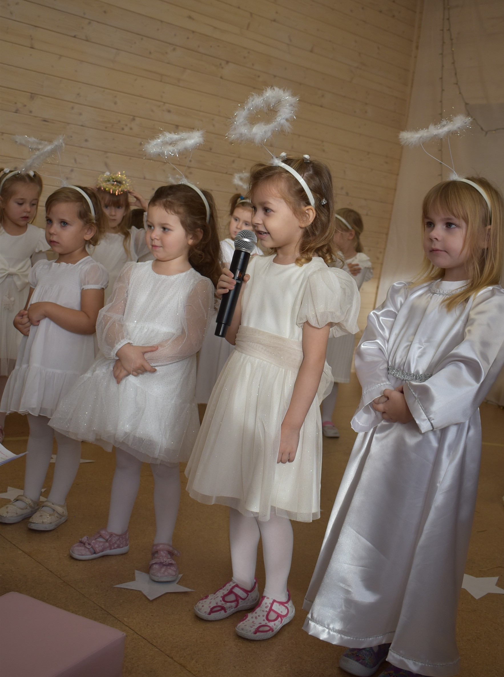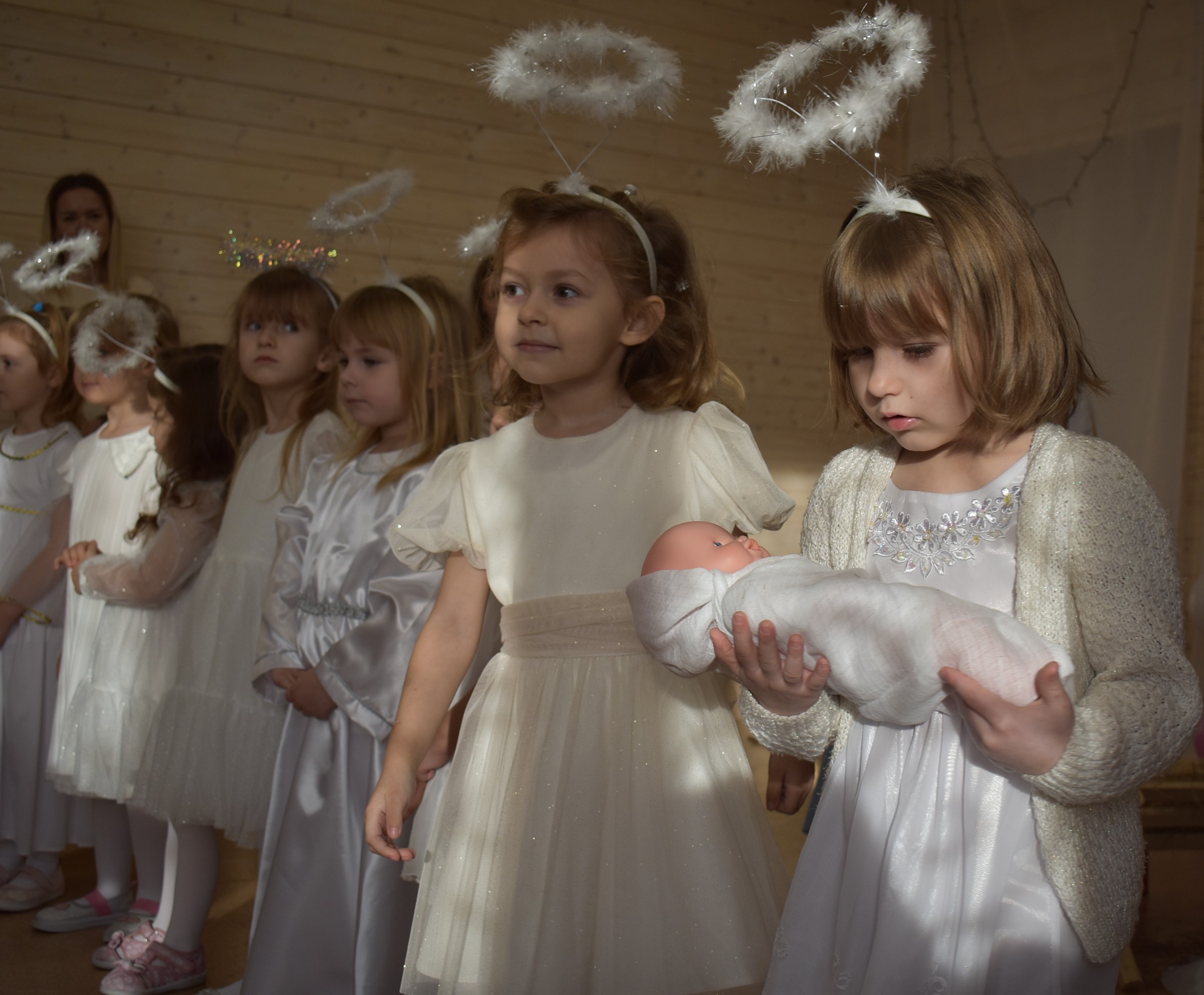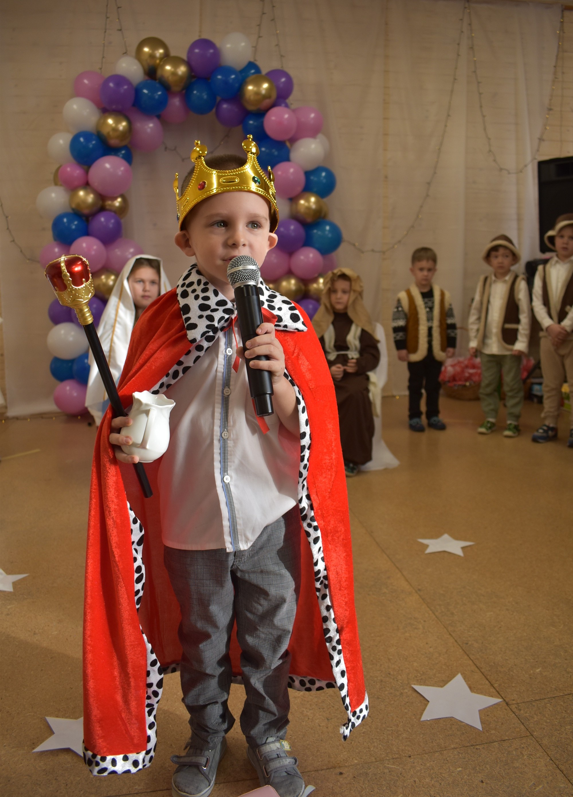 Dzieci zaprezentowały piękny program artystyczny o tematyce bożonarodzeniowej. Wystąpiły przebrane za aniołki, pasterzy, Maryję, Józefa oraz Trzech Króli. Mali artyści z dużym zaangażowaniem recytowali wierszyki, śpiewali kolędy i pastorałki. Szczególne wzruszenie wzbudził taniec aniołków do piosenki „Światełko”, podczas którego dzieci prezentowały świecące gwiazdeczki trzymane na dłoniach, a także taniec z lampionami do piosenki "Noel", wprowadzając zgromadzonych w radosny, świąteczny nastrój.