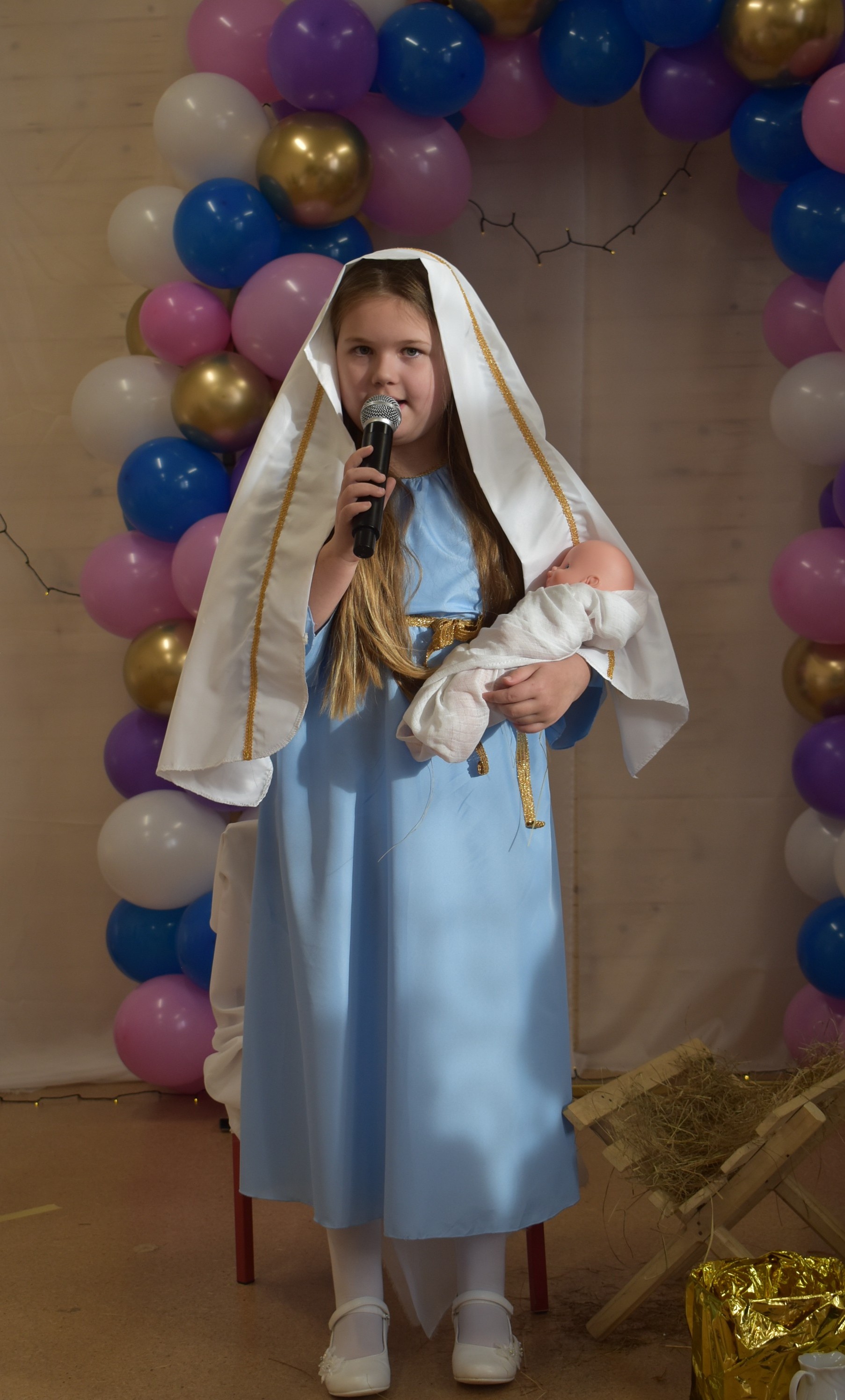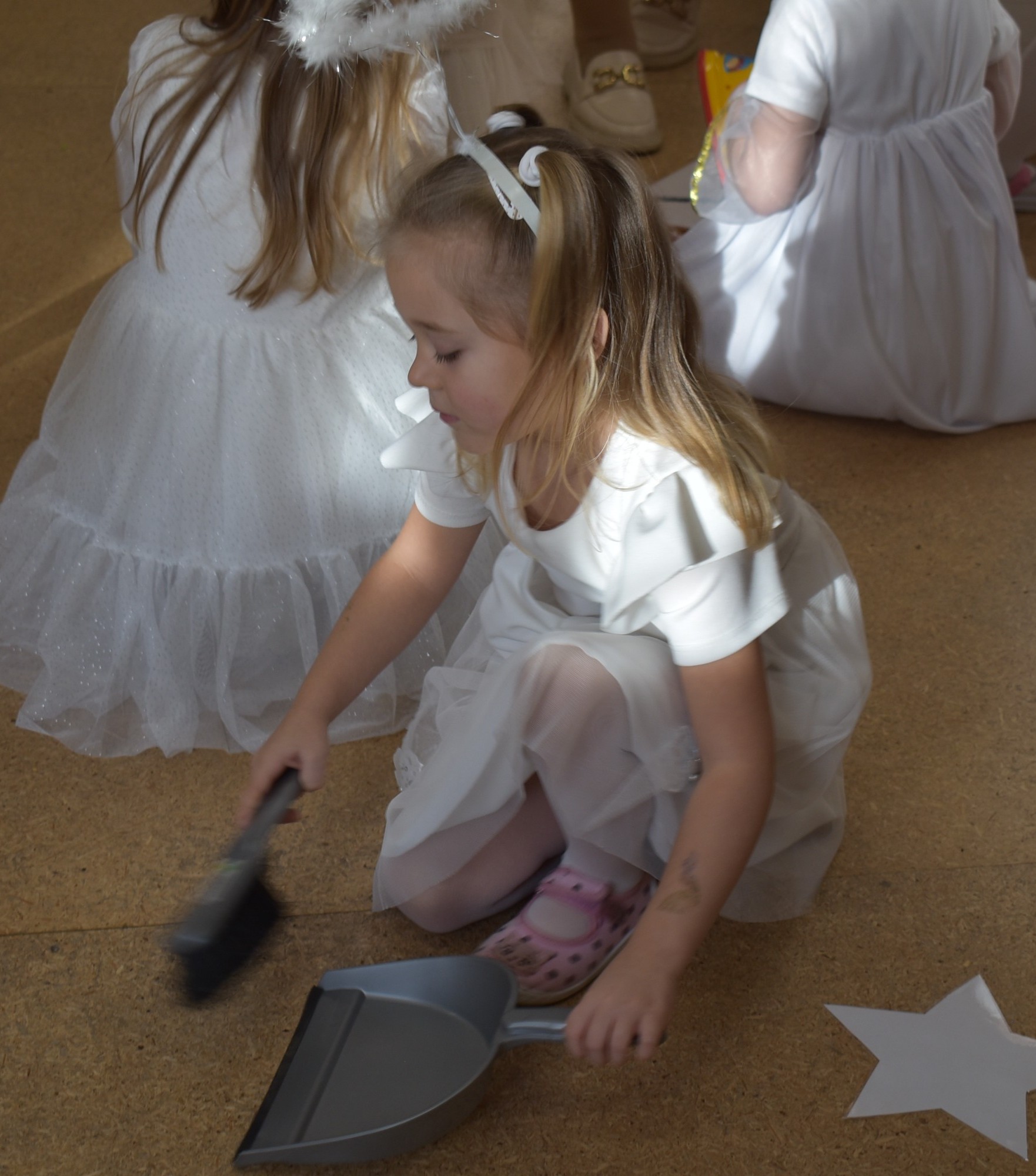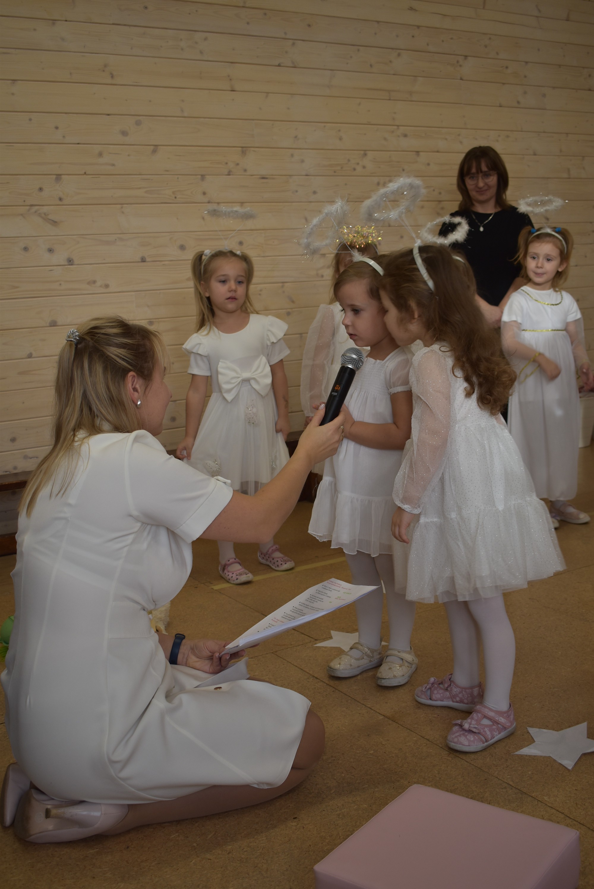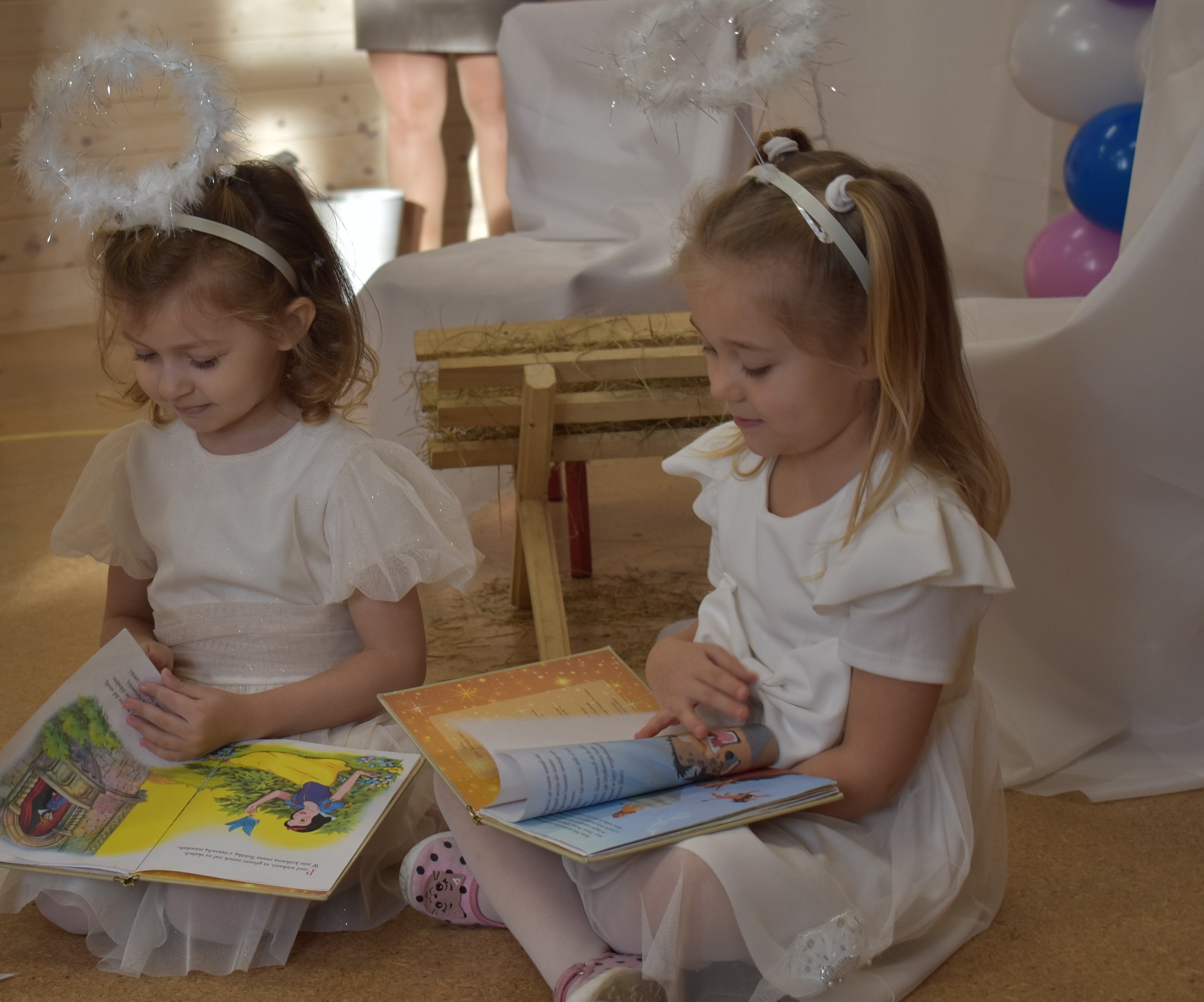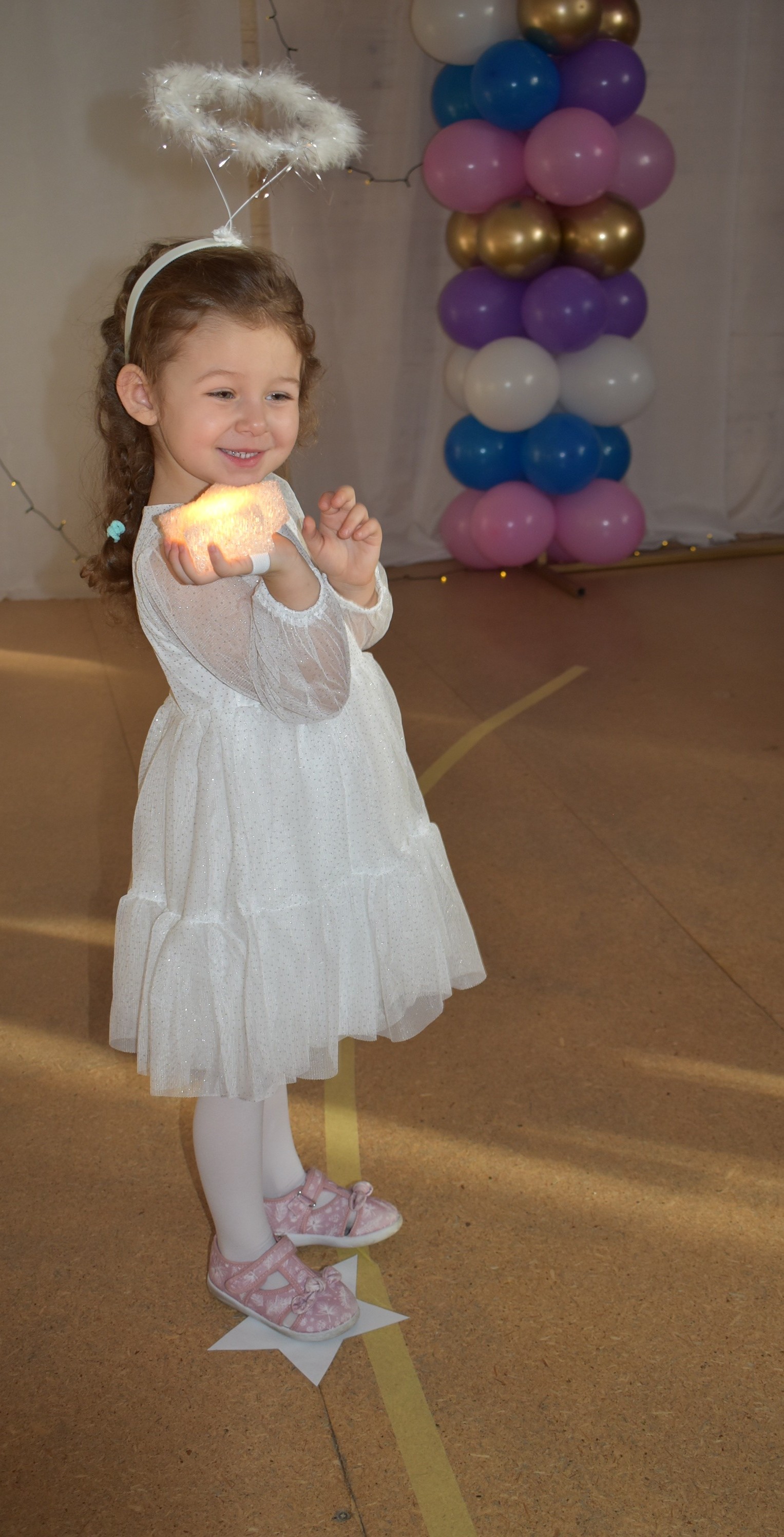 Dzieci zaprezentowały piękny program artystyczny o tematyce bożonarodzeniowej. Wystąpiły przebrane za aniołki, pasterzy, Maryję, Józefa oraz Trzech Króli. Mali artyści z dużym zaangażowaniem recytowali wierszyki, śpiewali kolędy i pastorałki. Szczególne wzruszenie wzbudził taniec aniołków do piosenki „Światełko”, podczas którego dzieci prezentowały świecące gwiazdeczki trzymane na dłoniach, a także taniec z lampionami do piosenki "Noel", wprowadzając zgromadzonych w radosny, świąteczny nastrój.