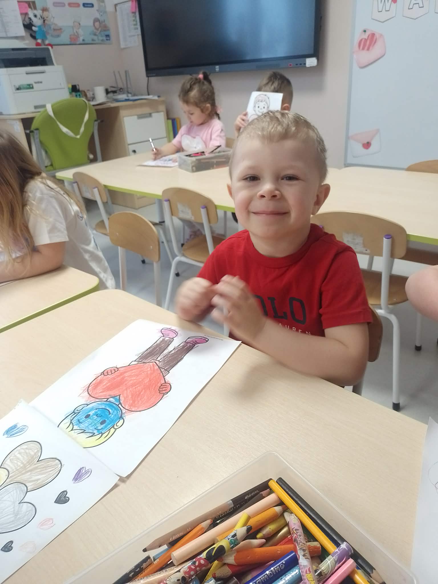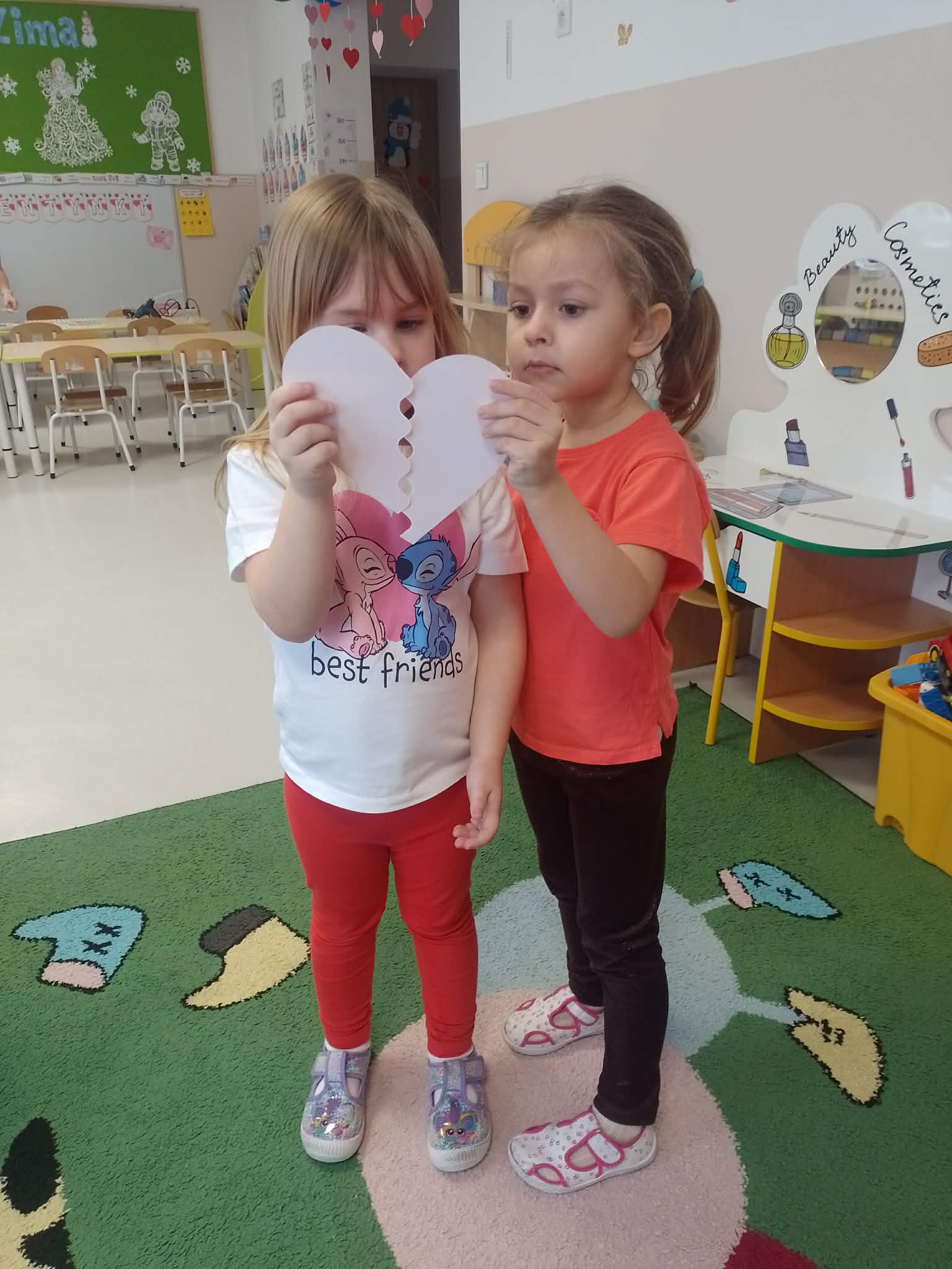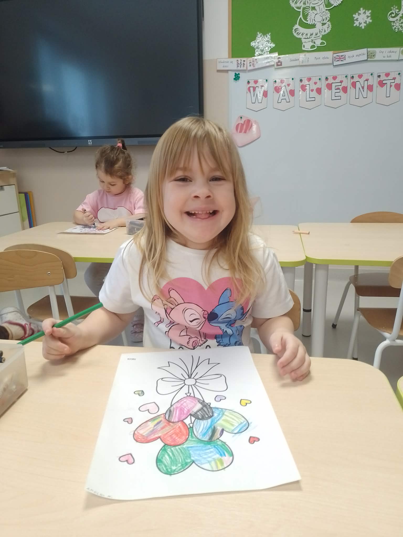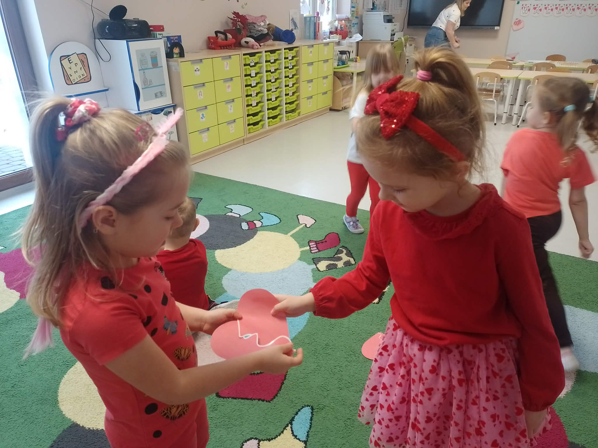 Dnia 13 lutego 2026 w oddziale przedszkolnym odbyły się Walentynki. Na początku dnia dzieci zapoznały się z historią świętego Walentego oraz dowiedziały się dlaczego akurat 14 lutego świętują zakochani. Rozmawiały o tym, czym jest miłość i przyjaźń oraz jak można okazywać sobie życzliwość, troskę i uczucie. Następnie rozwiązywały zadania walentynkowe, rozwijając swoje umiejętności językowe, logiczne myślenie i spostrzegawczość. Nie zabrakło również wesołych zabaw, które dostarczyły dzieciom wiele radości i uśmiechu. Na zakończenie zajęć w ramach pracy plastycznej przedszkolaki wykonały piękne brokatowe serca, które mogły podarować tym, których najbardziej kochają - swoim rodzicom oraz rodzeństwu. Zajęcia upłynęły w miłej, serdecznej atmosferze, pełnej ciepła i przyjaźni.