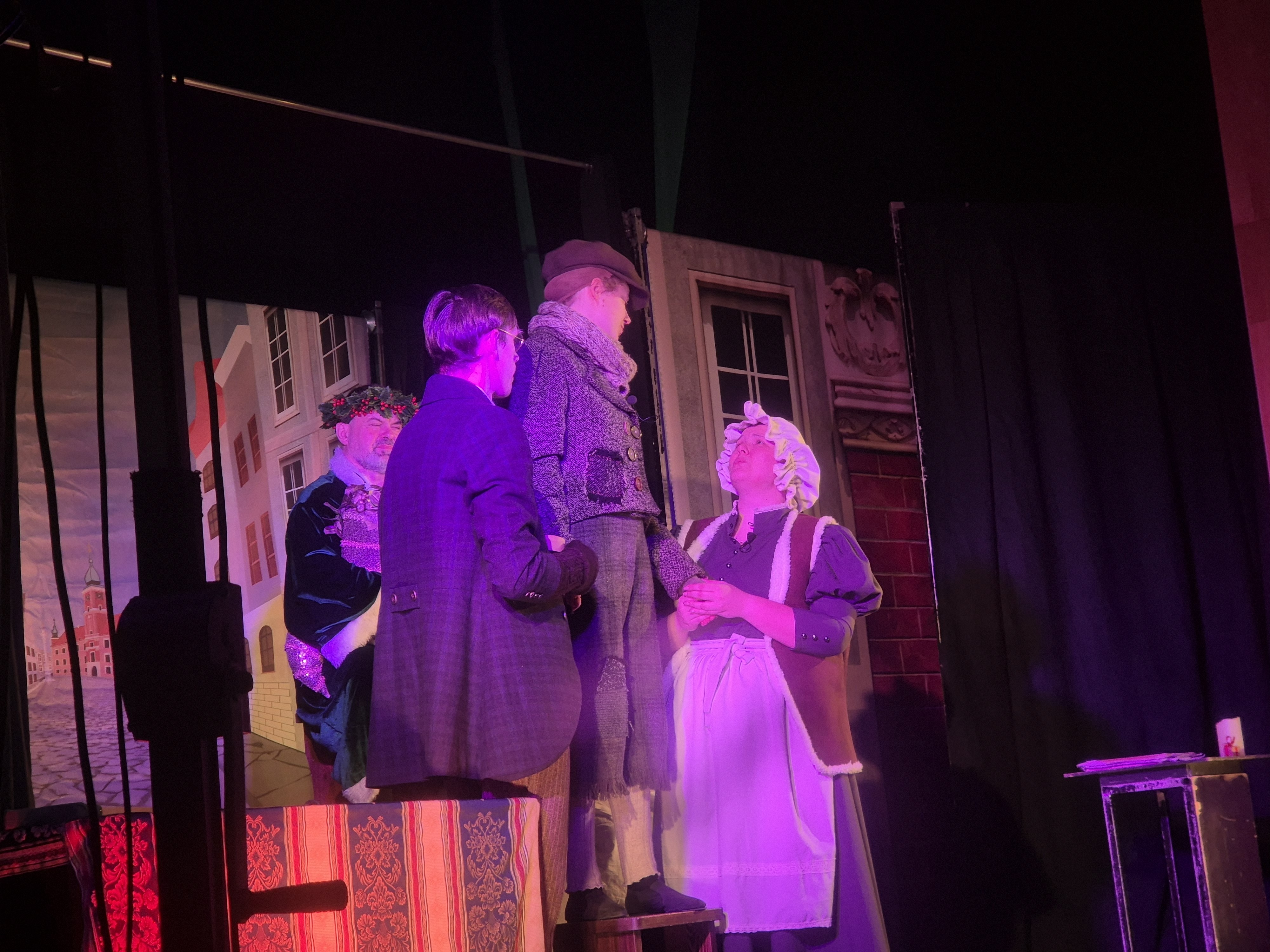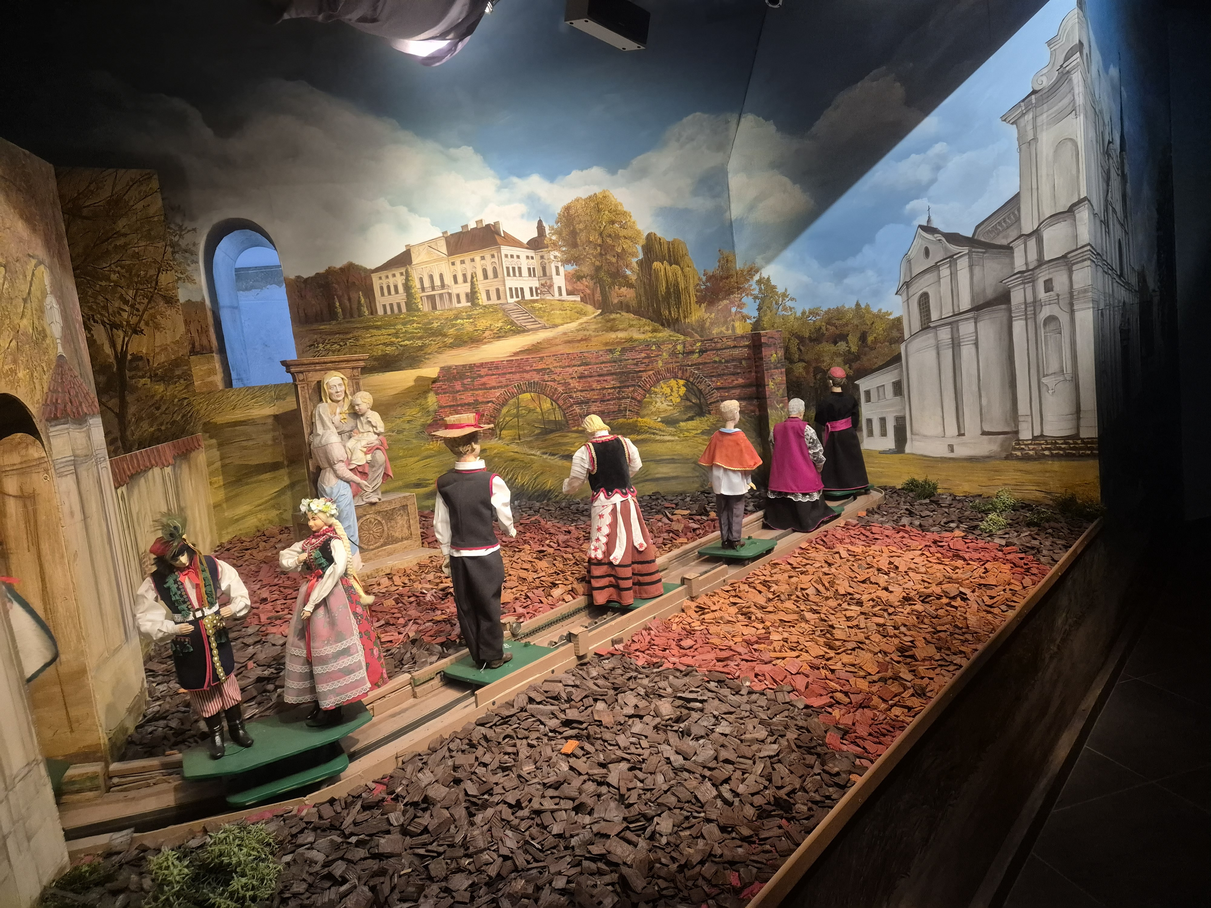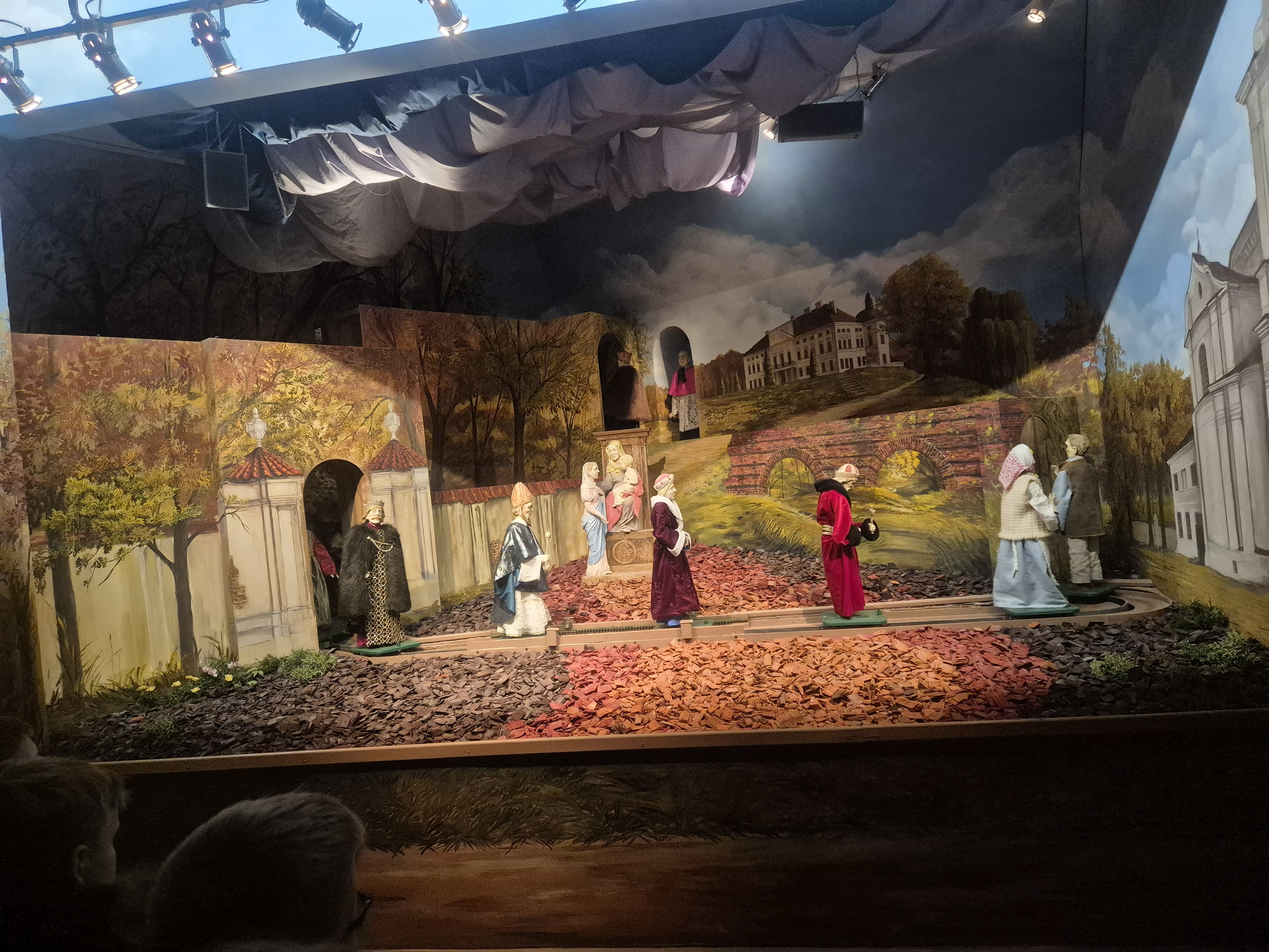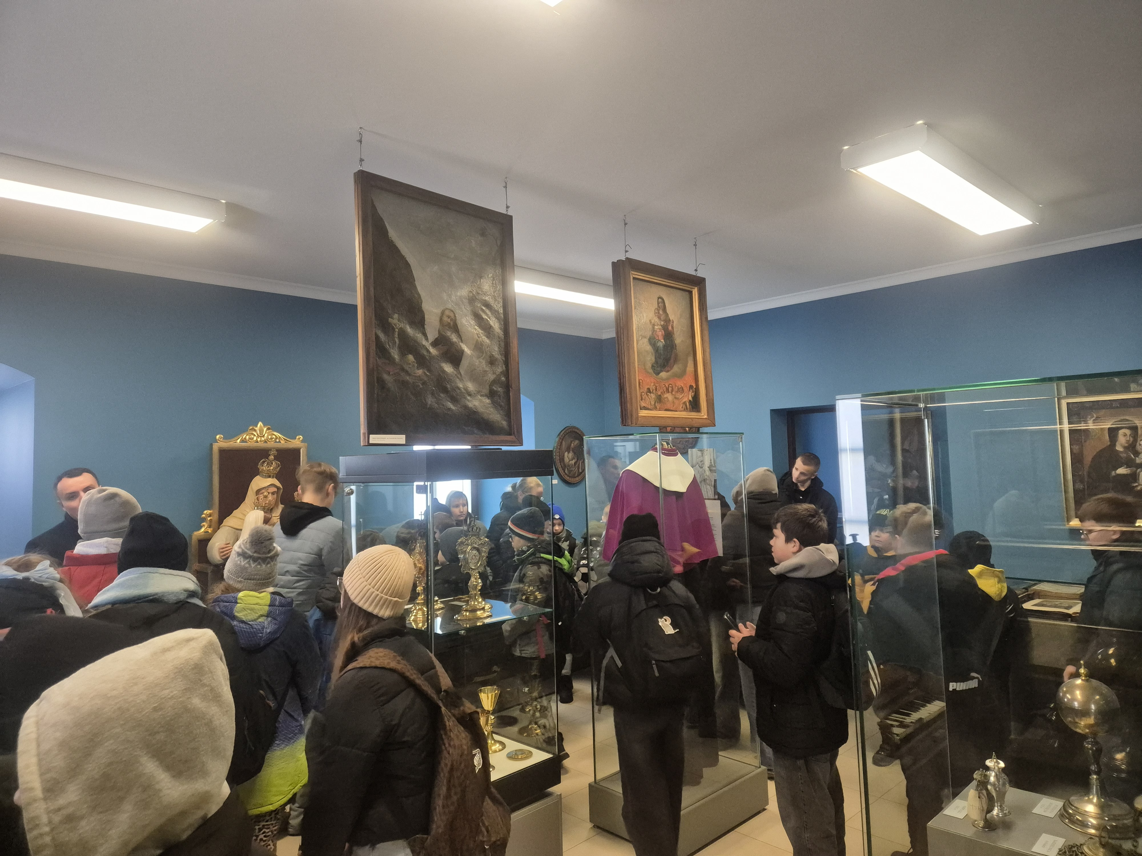Pierwszym punktem programu było zwiedzanie Bazyliki św. Anny w Lubartowie, jednego z najważniejszych zabytków sakralnych regionu. Uczniowie mieli okazję poznać historię świątyni, jej architekturę oraz znaczenie dla lokalnej społeczności. Następnie grupa udała się do Muzeum Parafialnego, gdzie obejrzała cenne eksponaty związane z dziejami parafii i miasta. Kolejnym punktem programu było zwiedzanie Panoramy Lubartowskiej, czyli niezwykłej szopki z ruchomymi postaciami przedstawiającymi bohaterów z historii Polski, regionu oraz samego Lubartowa. Figurki przesuwają się na tle makiety miasta i symbolicznie kłaniają się figurze św. Anny, tworząc widowiskową i pełną lokalnych odniesień prezentację.Po tej części uczestnicy wycieczki udali się do Spółdzielni Mieszkaniowej w Lubartowie, gdzie obejrzeli spektakl „Opowieść wigilijna” w wykonaniu aktorów Narodowego Teatru Edukacji im. Adama Mickiewicza. Przedstawienie, oparte na klasycznym dziele Charlesa Dickensa, dostarczyło uczniom wielu wzruszeń i skłoniło do refleksji nad wartościami takimi jak dobroć, empatia i umiejętność dostrzegania potrzeb innych.