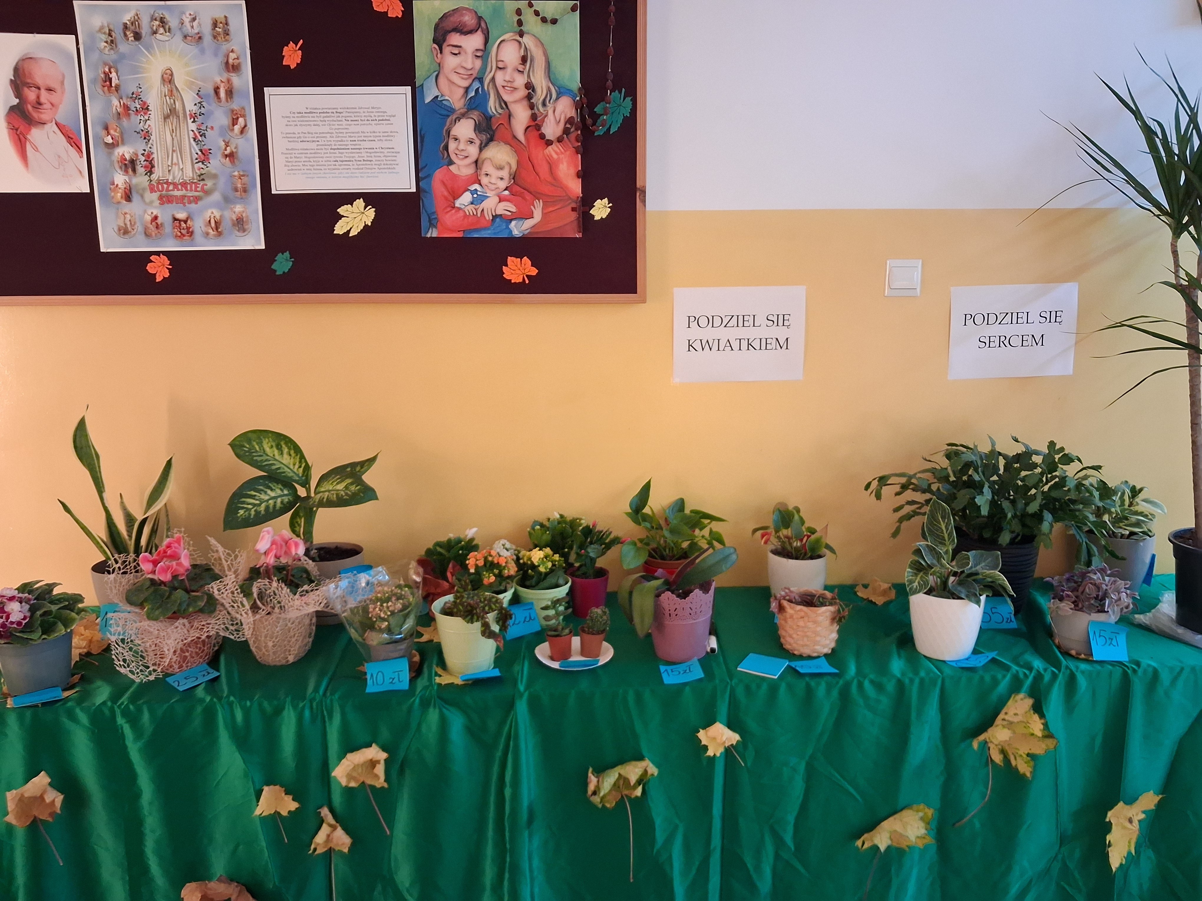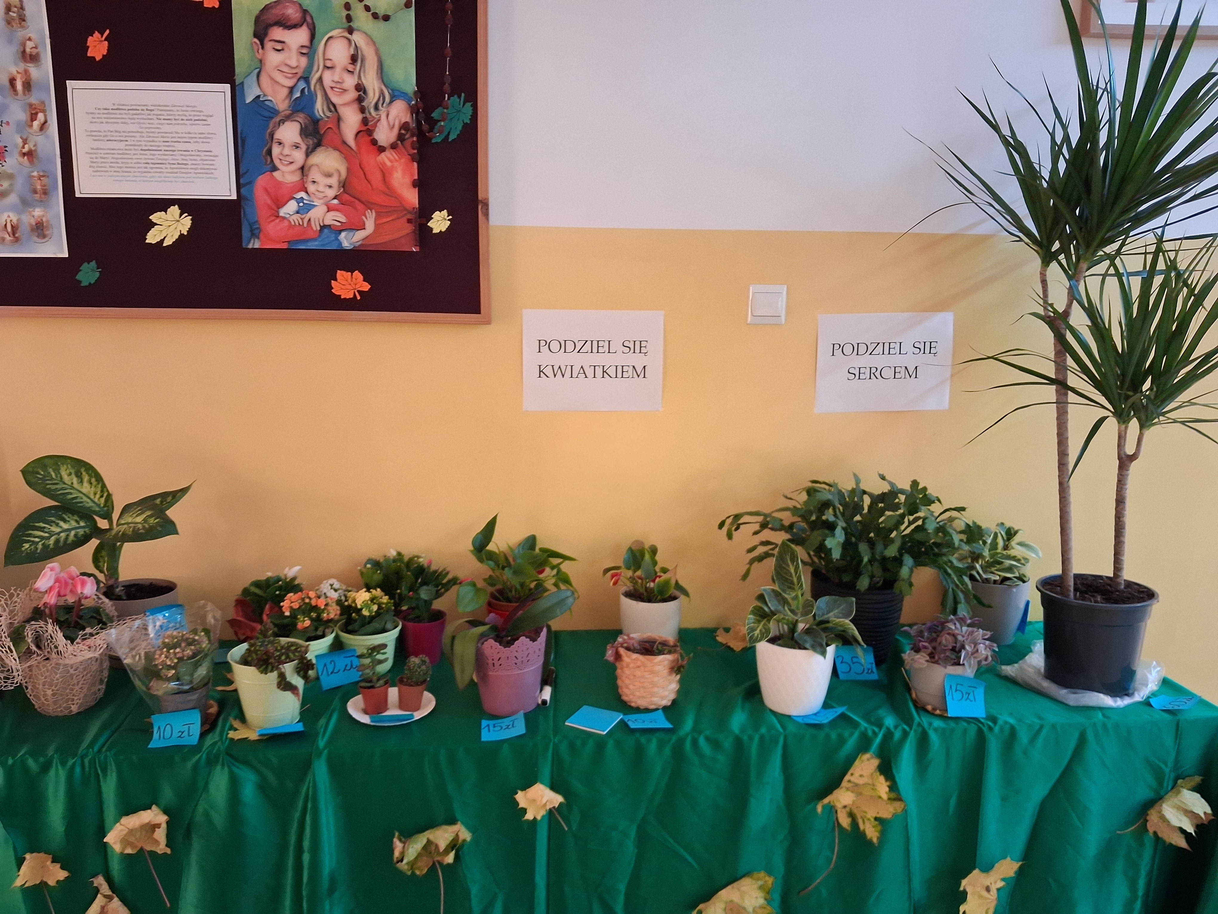 Integralną częścią obchodów był kiermasz kwiatów doniczkowych, zorganizowany tego dnia przez uczniów i nauczycieli. Zebrane w ten sposób środki zostały przekazane na rzecz Fundacji „Dzieło Nowego Tysiąclecia”, wspierającej uzdolnioną młodzież z rodzin o trudnej sytuacji materialnej. W ten sposób nasza szkoła od lat włącza się w szlachetną misję niesienia pomocy i wspierania młodych talentów, zgodnie z ideami głoszonymi przez Papieża.